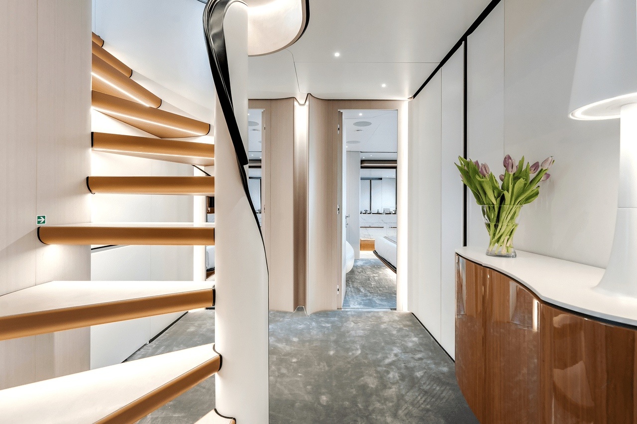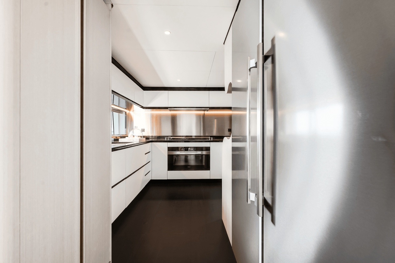 Luxury accommodation for 10 guests in 5 cabins, including 3 master suites and 2 convertible twin cabins, all with en-suite bathrooms. The main deck master suite provides exceptional privacy and easy access to the yacht’s main social areas.