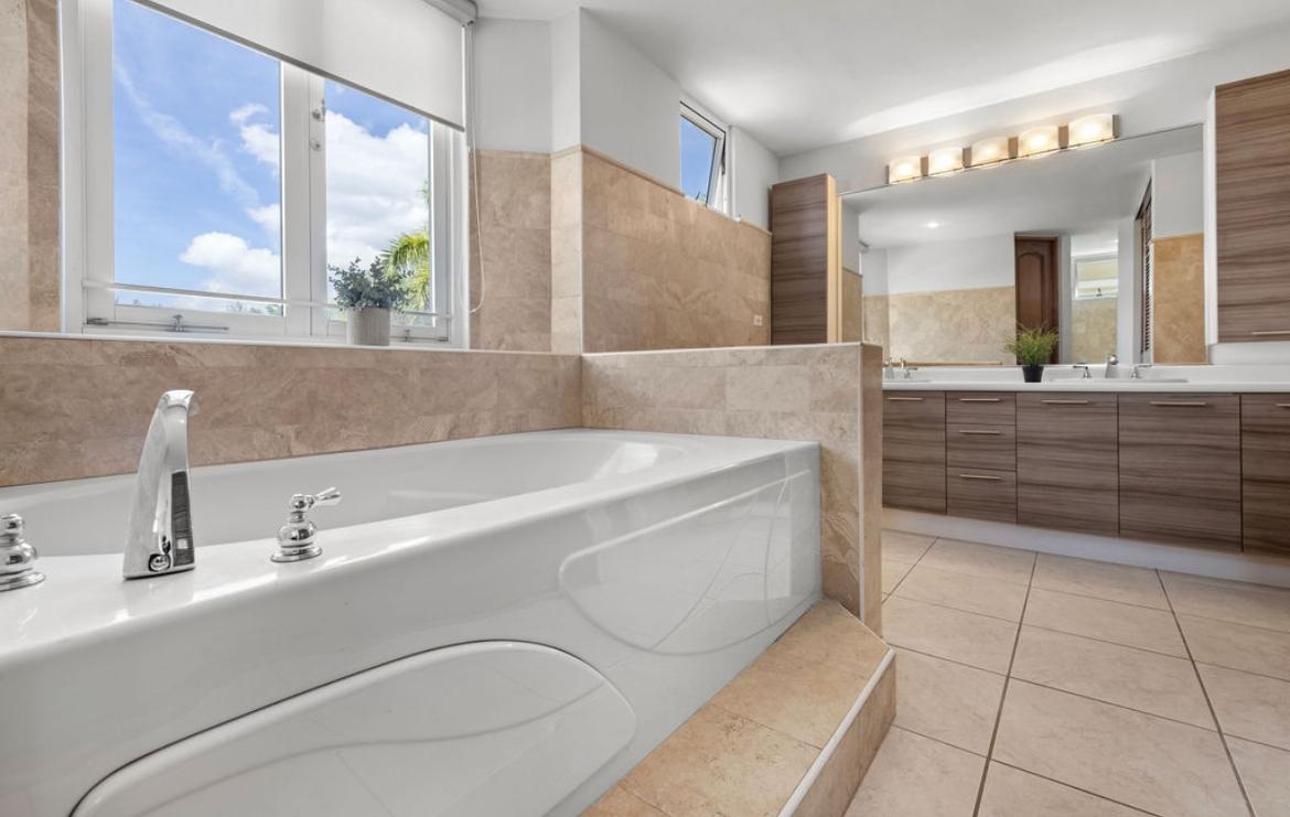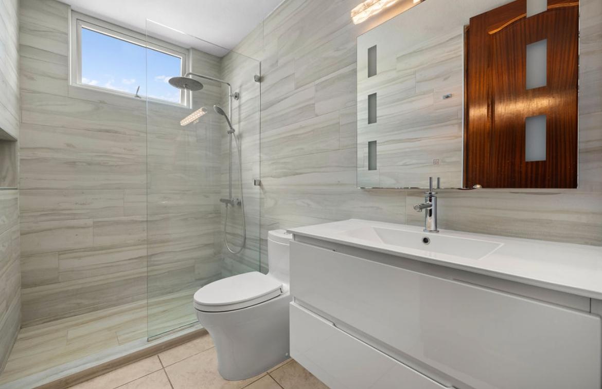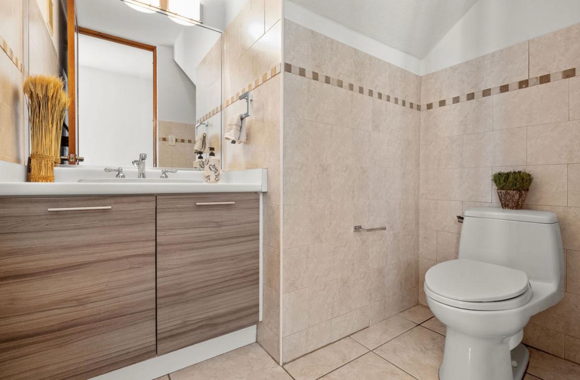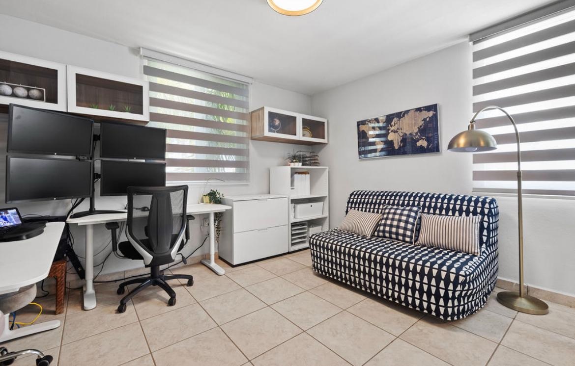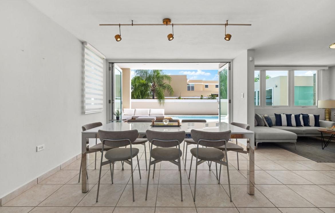 The property was updated with modern finishes while maintaining a functional two-story layout that allows for natural light, cross-ventilation, and seamless connection to the outdoor areas. The main living spaces open toward the terrace, pool, and jacuzzi, creating a setting well suited for gatherings or relaxed indoor-outdoor living.