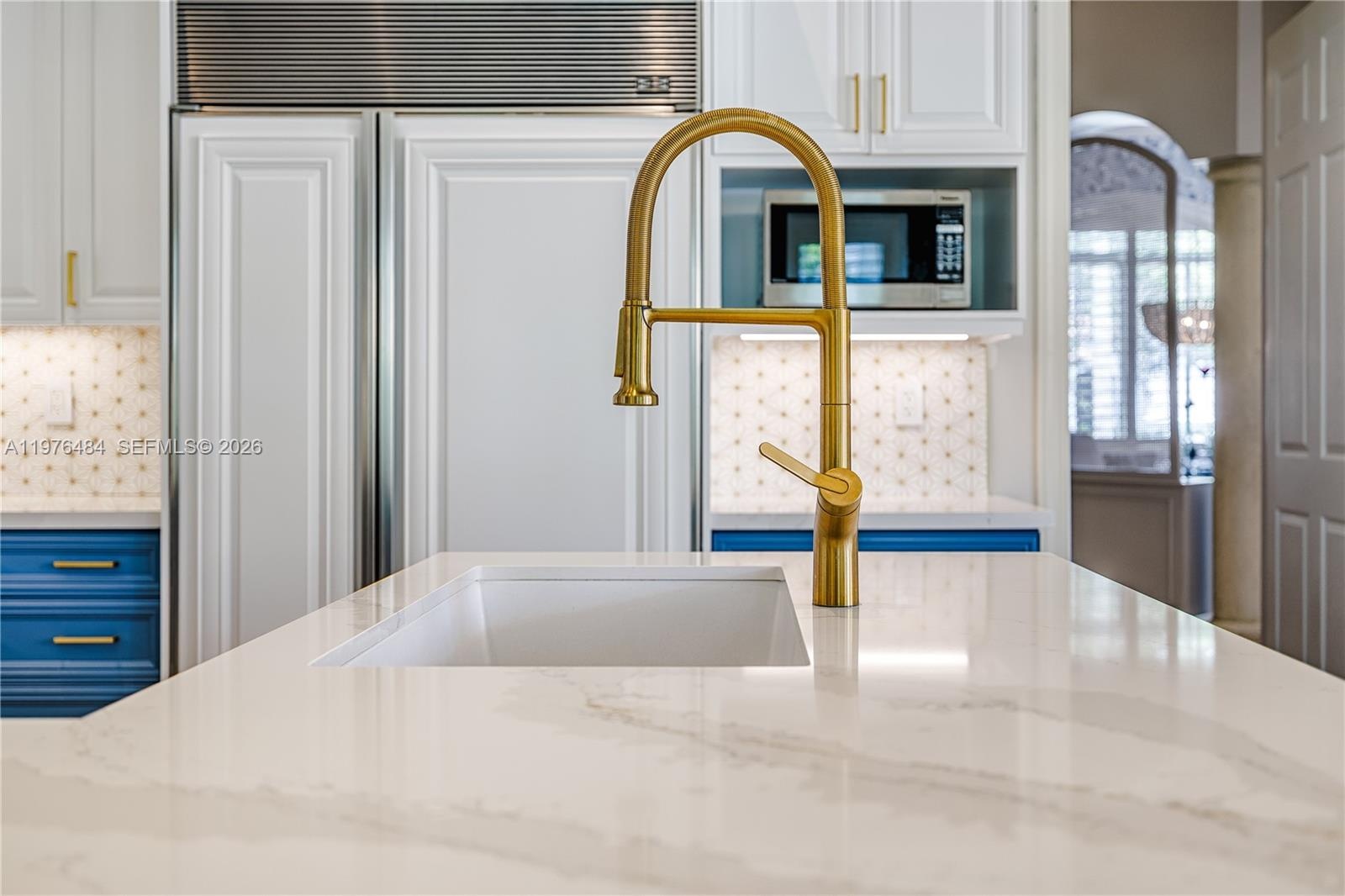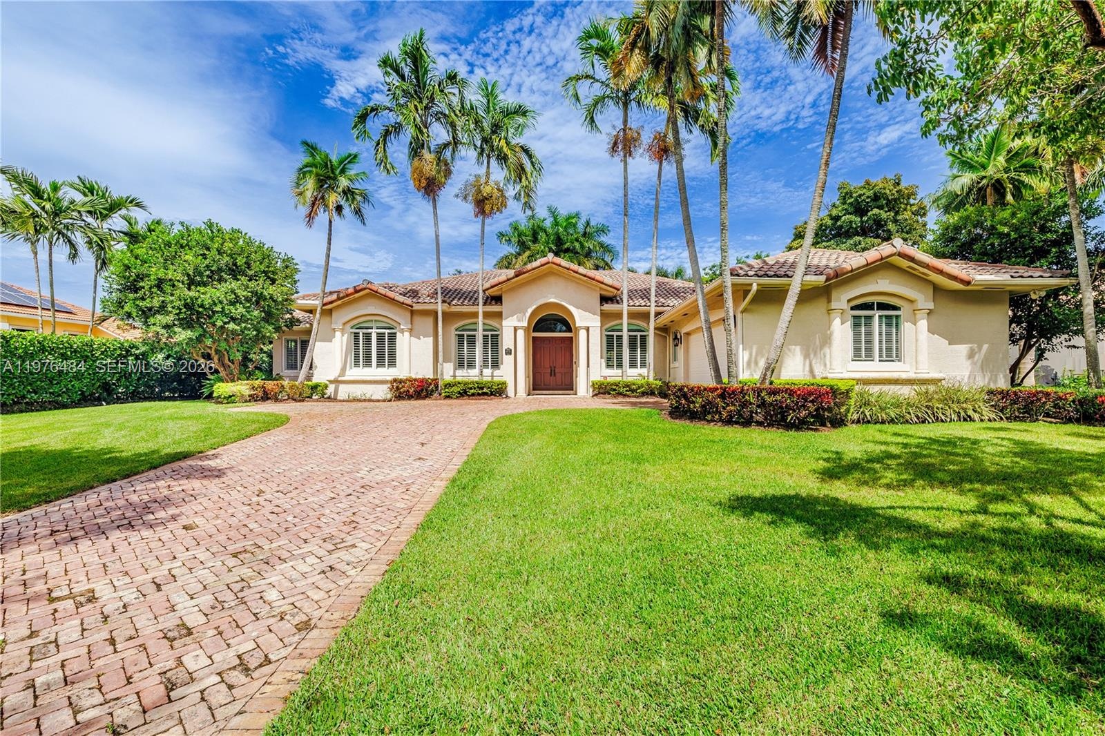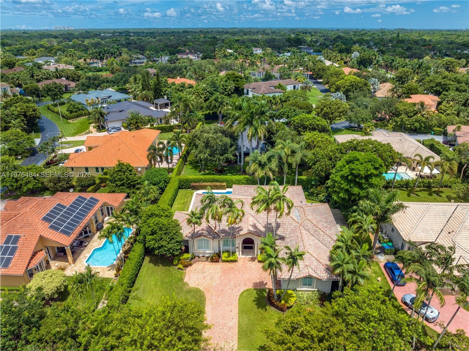 Beautifully updated 4BD/3BA + office residence in the gated Flamingo Gardens community in Palmetto Bay. This open split floor plan home features volume ceilings, impact glass, marble floors, and spacious formal and casual living areas. The renovated kitchen offers an eat-in layout, pantry, and premium Sub-Zero and Garland appliances. French doors lead to a resort-style backyard with pool, expansive covered patio ideal for entertaining, and lush fenced landscaping. The primary suite features a dual-entry walk-in closet and a spa-style bath with dual sinks, separate tub and shower. Additional highlights include whole-house audio with speakers throughout, 3 A/C units, alarm system, epoxy-finished 2-car garage, gated side yard with room for boat storage, and lush 15,180 SF lot. Located in a coveted 44-home community close to top schools, parks, and major destinations, offering the perfect balance of privacy and convenience.