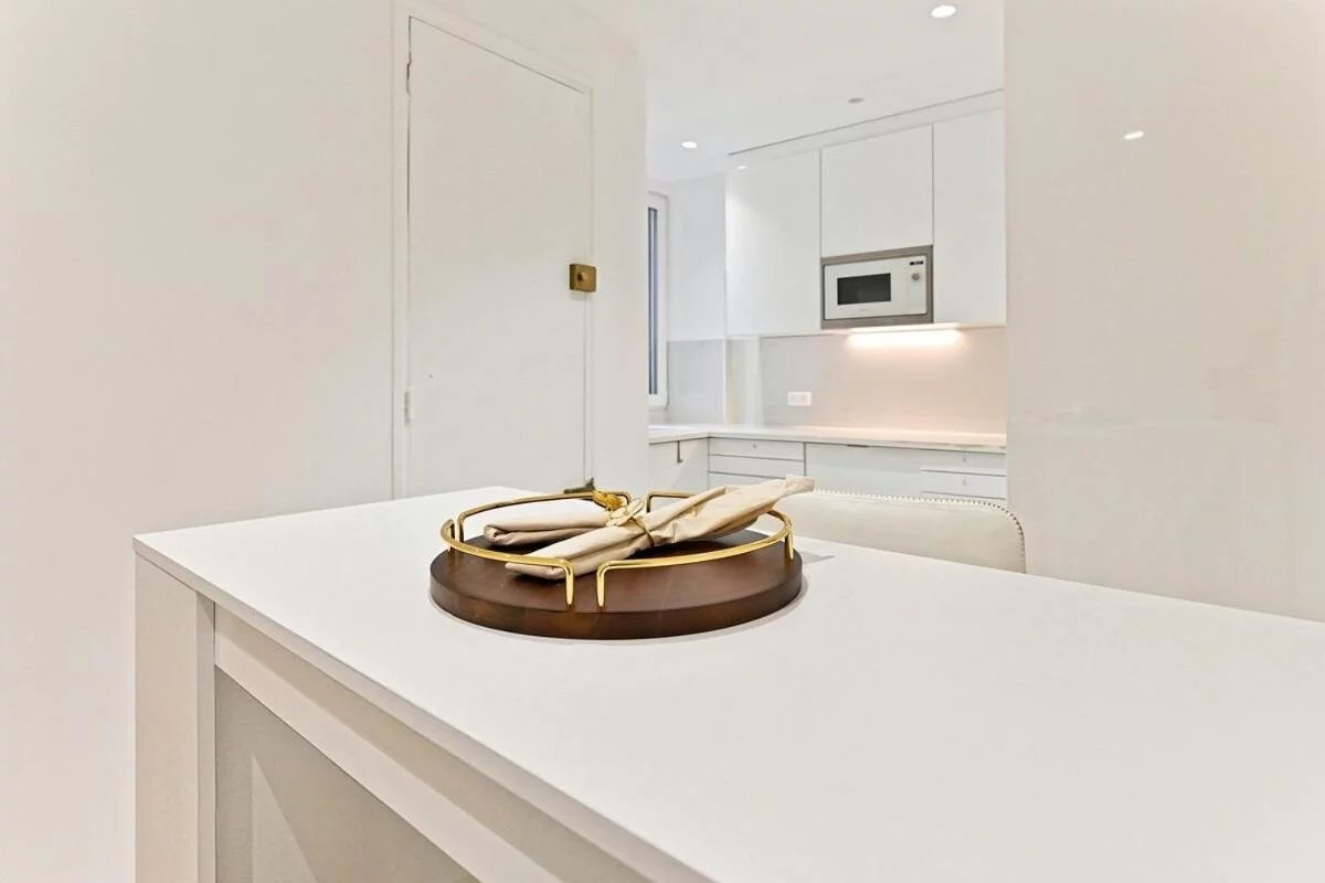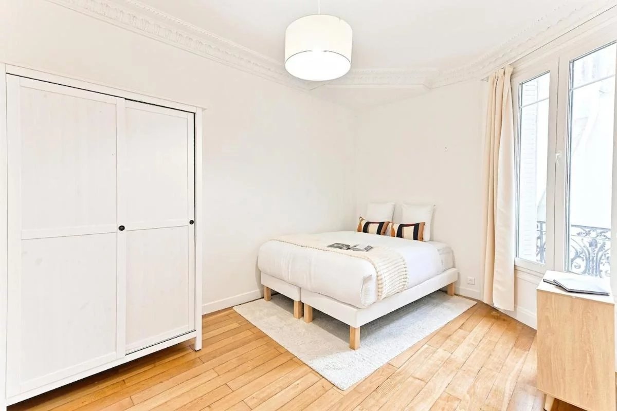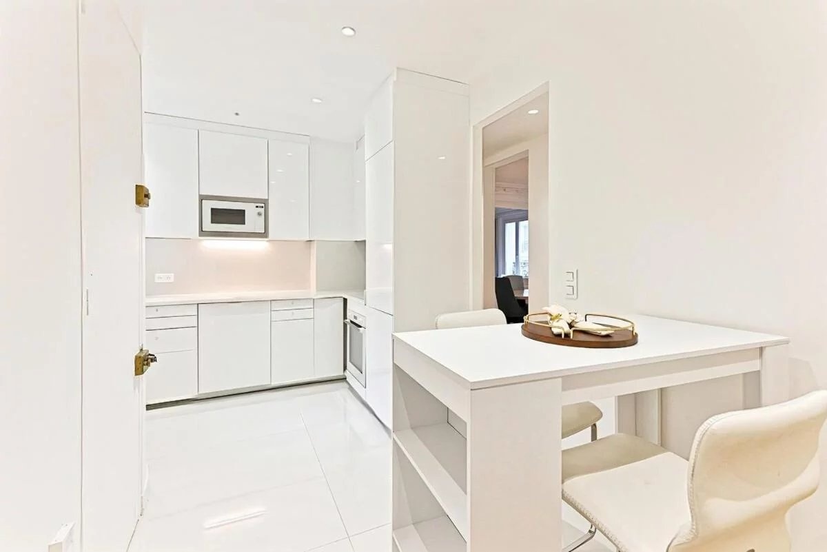 Arc de Triomphe - Rue des Acacias: Located on the 5th floor with elevator in a very high standard Haussmannian building, this 5-room apartment of 106.5 m2 consists of an entrance, a double living room, a fully equipped and fitted kitchen, three bedrooms including a master suite with a shower room, a bathroom, and a second WC. In addition to this property, a cellar is included and the possibility to acquire a maid's room on the top floor for an extra cost.
