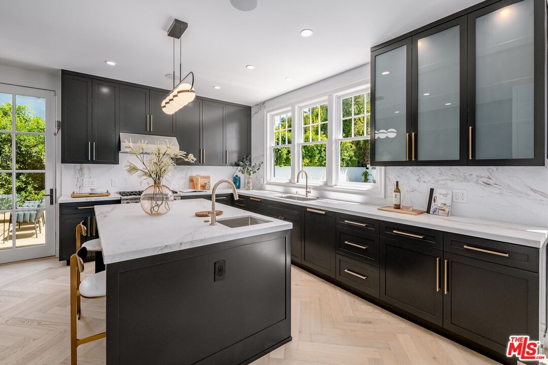 Restored, extensively renovated, walled and gated 1920's Colonial in Sunset Square with 4 bedrooms, 5 baths, and large pool. The property features a formal entry, light oak herringbone floors, custom marble fireplace, large dining room, chef's kitchen with extensive island, premium appliances, double sinks, double dishwashers, and the finest fixtures. A separate breakfast room opens to custom family/media room. A wine chamber is downstairs. Upstairs a dramatic glass and steel atrium leads to 3 bedroom suites including primary suite which expands across the entire south side of the house with private terrace, large custom closet, freestanding and double vanities The outdoor areas are distinctly landscaped, with over-sized pool, outdoor kitchen/BBQ, formal dining area, and spacious play area. And finally a one-bedroom, one bath guest house with fully-equipped designer kitchen. Perfect for a work-from-home office, music studio or creative space.