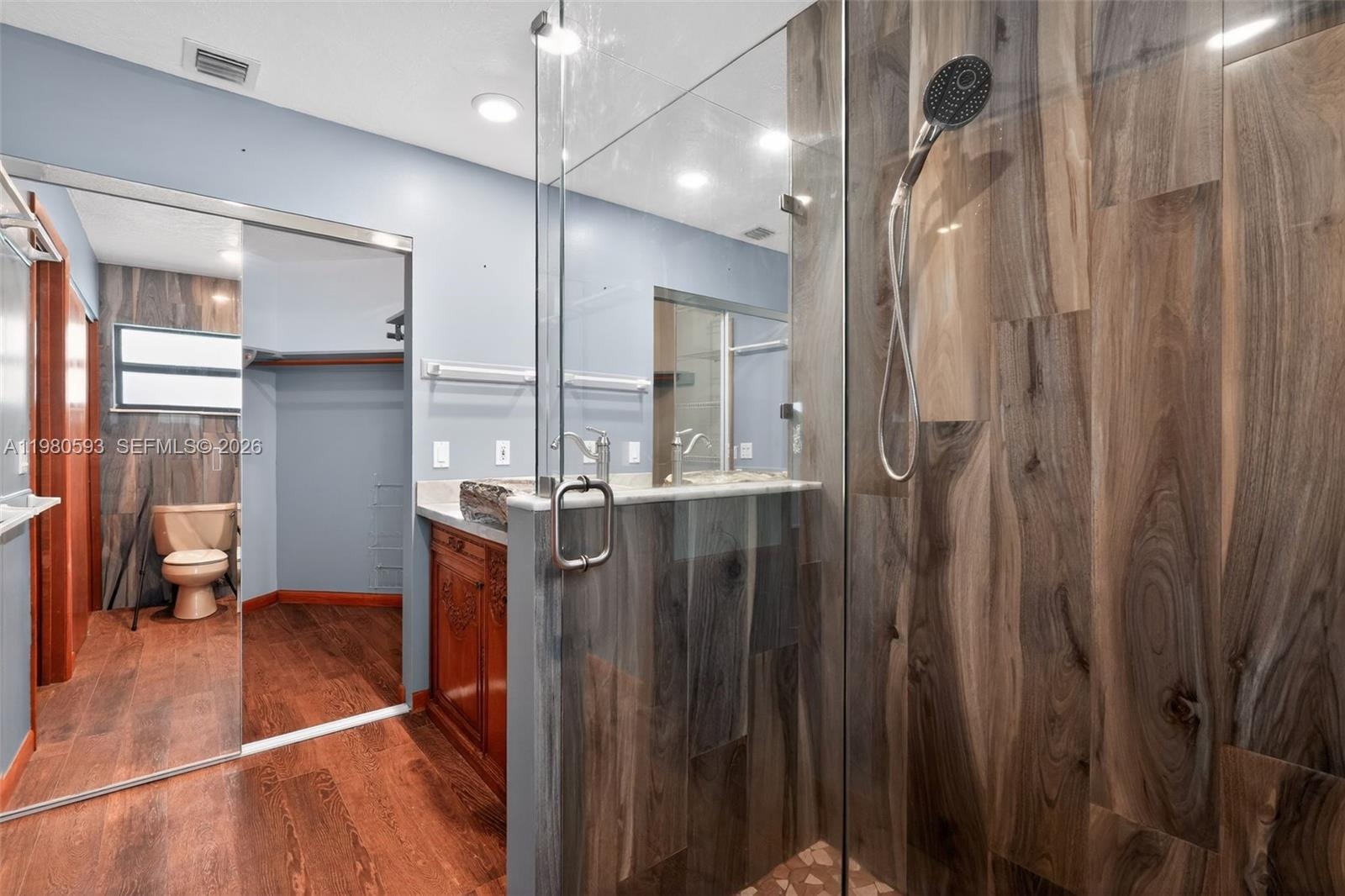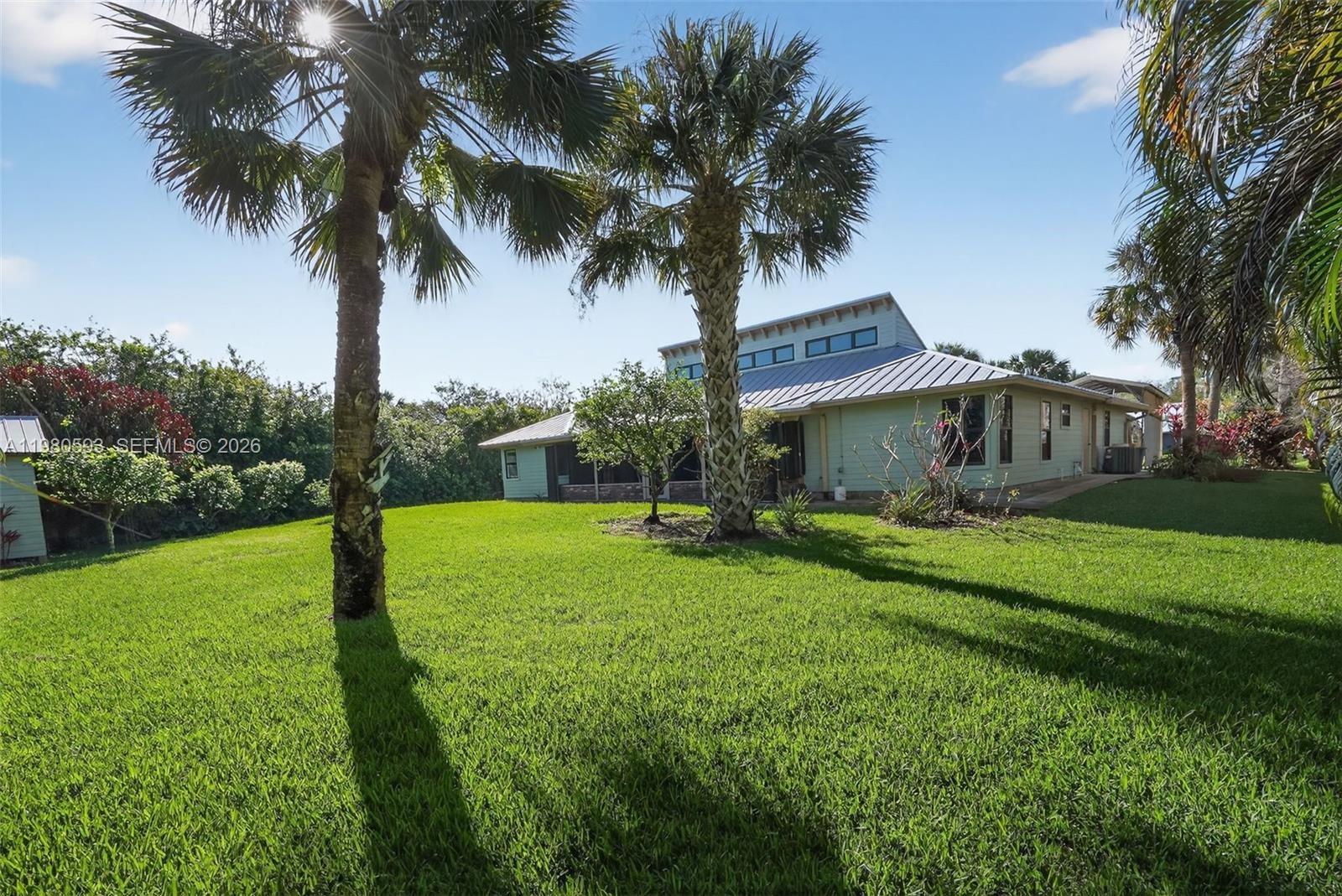CWelcome to 8535 SE May Terrace, a beautifully maintained 4-bedroom, 2-bath single-family home that combines comfort, privacy, and convenience in one of Hobe Sound's most desirable neighborhoods. Situated on a 1/2-acre lot at the end of a peaceful dead-end street, this 3,000 sq. ft. residence blends timeless Florida character with modern updates and serene surroundings. Step inside to discover vaulted ceilings lined with cedar tongue-and-groove and accented by cypress beams, creating a warm, cabin-like feel throughout the living spaces. Natural light fills the home through upgraded hurricane-impact windows. The generous kitchen features granite countertops, stainless-steel appliances, and hardwood oak cabinetry with special hidden features. Key Property Highlights: Eco-Friendly & Efficient: Outfitted with solar panels that keep electric bills between $30–$35 per month. Features a 50-amp EV charger in the garage and a 30-amp RV hookup out front. Recent Mechanical Upgrades: Brand new AC system (unit, air handler, and compressor) installed within the last 12 months, featuring a Remy Halo air purification system. The flat roof section has also been completely redone. Master Suite Sanctuary: A custom-designed retreat featuring a one-piece solid stone sink, brushed nickel fixtures, and a seamless glass shower with dual rain shower heads, custom tile, and River Rock flooring.