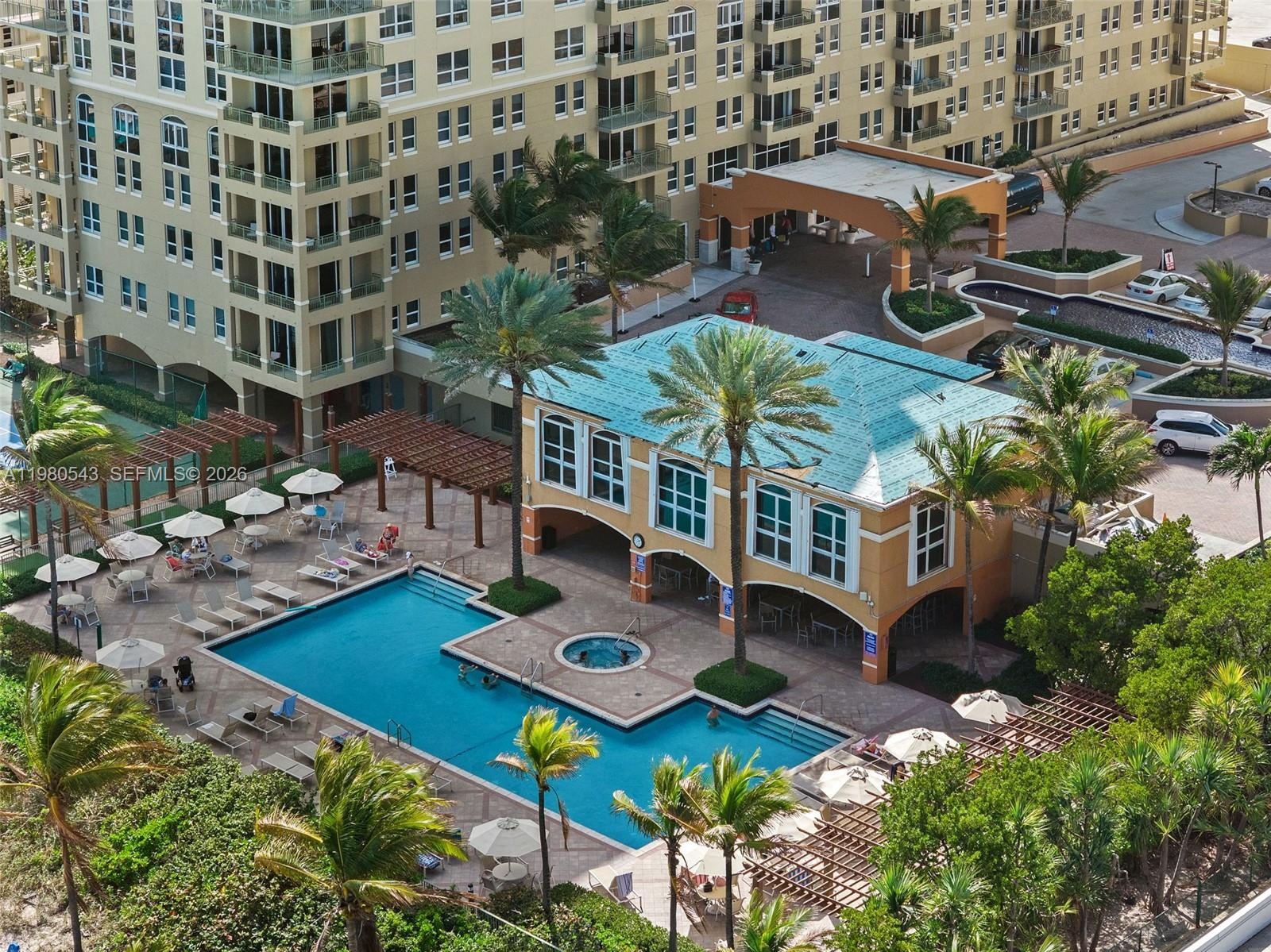 Residents enjoy direct beach access with chair and umbrella service and resort-style amenities including a heated pool, jacuzzi, upgraded fitness center overlooking the ocean, tennis court, sauna, BBQ area, and 24-hour attended lobby. Maintenance fees include cable and internet.