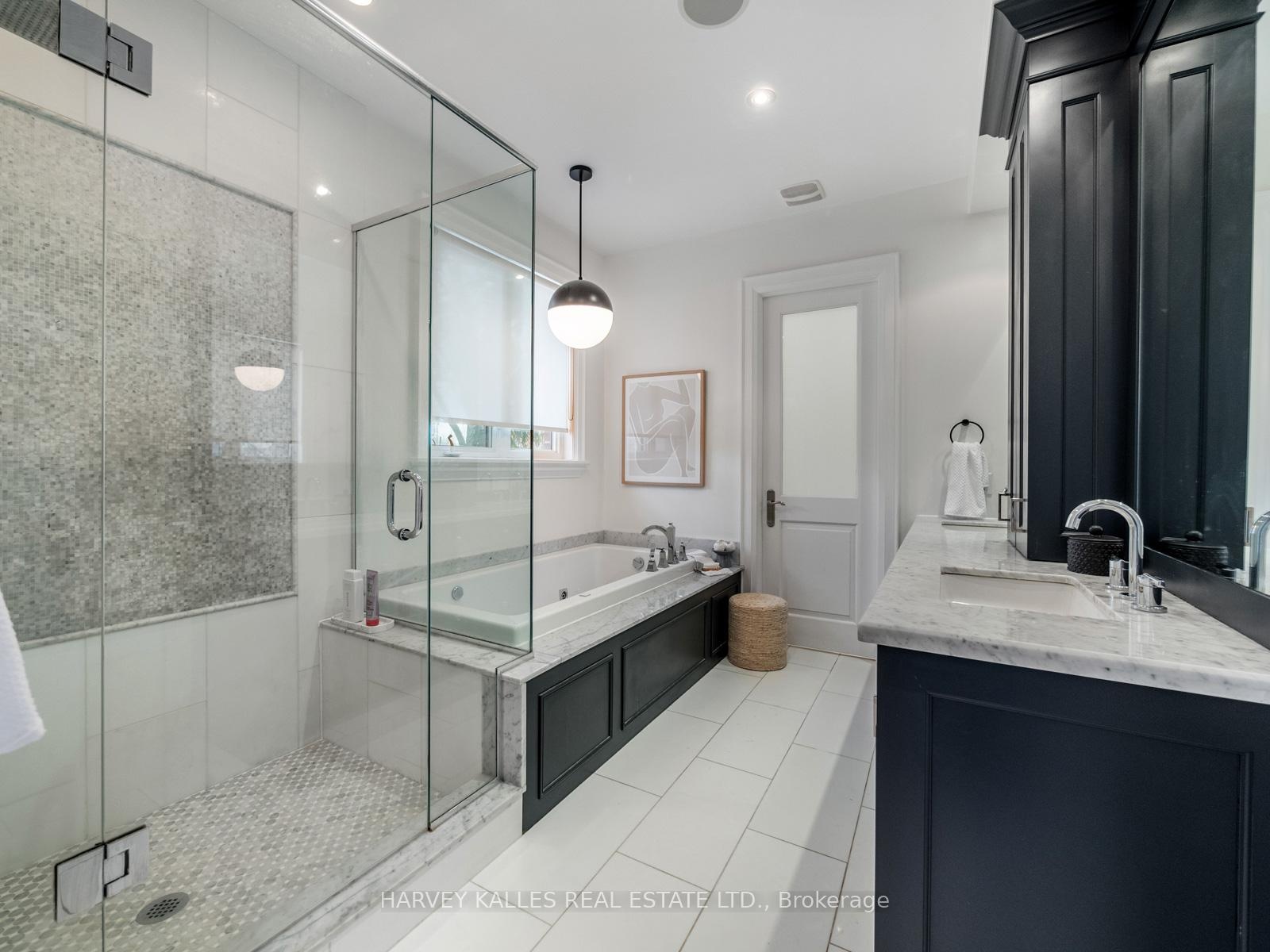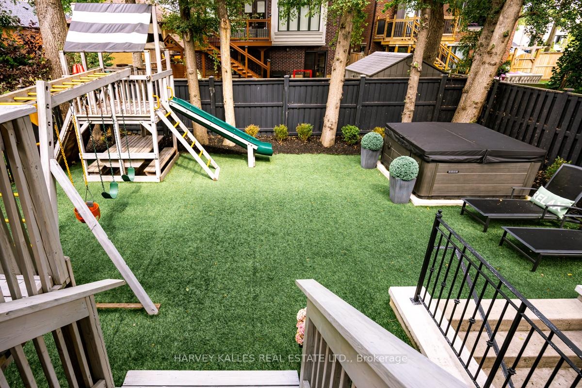 Welcome to this beautiful custom-built home on a highly sought-after street in Bedford Park. Showcasing 5 Bedrooms on the second level, exceptional craftsmanship and refined finishes throughout. Upon entry, a stunning foyer greets you, leading to a private study with custom built-ins, providing a peaceful setting for studying or working from home. The main floor features living and dining areas, highlighted by large windows, hardwood floors, wainscotting and high ceilings. The gourmet kitchen chef-inspired kitchen is a dream featuring a walk-in butler's pantry, top of the line appliances, marble countertops and a bright breakfast area. Expansive wall to wall windows overlooks the beautifully landscaped backyard. The kitchen flows seamlessly into a comfortable family room complete with built-in shelving and gas fireplace, designed for effortless entertaining. The second level features, luxurious primary suite with a walk-in closet and spa-like 5pc ensuite with heated floors and four additional spacious bedrooms. The lower level is designed for both relaxation and entertaining, featuring a large rec room with a wet bar and walk-up access to the backyard that is complete with a playground, built in hot tub and deck. This level also includes a nanny suite, 3pc bathroom, cold storage, garage access and space for a mudroom. Ideally located just minutes from top-rated schools, parks, shops, restaurants and recreational facilities, this exceptional home offers the perfect blend of luxury, comfort, and convenience for family living.