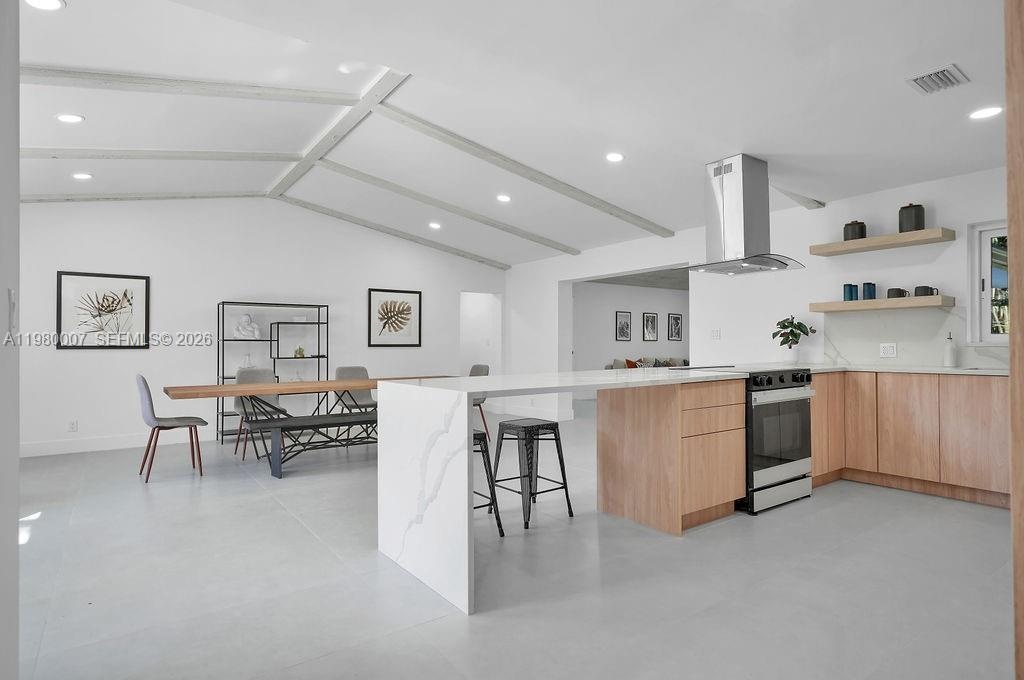 Unmatched value just four blocks from Wilton Drive. Don’t miss this fully renovated, turnkey modern 4-bedroom, 3-bath home located on a quiet, private street just moments from the heart of Wilton Manors. Larger than the tax roll, this brand-new, move-in-ready contemporary residence features soaring vaulted ceilings, abundant natural light, and open living spaces designed for effortless indoor-outdoor living. The sleek European-style kitchen showcases custom cabinetry, waterfall quartz countertops, and all new appliances. Every major component of the home has been completely updated with permits, including a new roof, impact windows and doors, electrical, PVC plumbing, new AC, new water heater and brand new whole house water filtration system. The home also features brand-new kitchens, bathrooms, and flooring throughout. Step outside to your private tropical oasis with a brand-new heated pool surrounded by lush landscaping on an oversized lot, creating a peaceful and secluded retreat. A versatile left wing of the home offers the perfect opportunity for a private guest suite, second primary bedroom, rental, or Airbnb. A rare opportunity to own a fully renovated modern home offering luxury, flexibility, and exceptional value in one of Wilton Manors’ most desirable locations just minutes from beaches, dining, nightlife, and shopping. The home can also be sold fully furnished for a true turnkey experience.