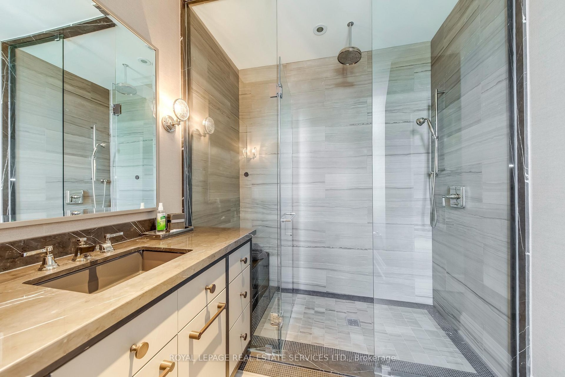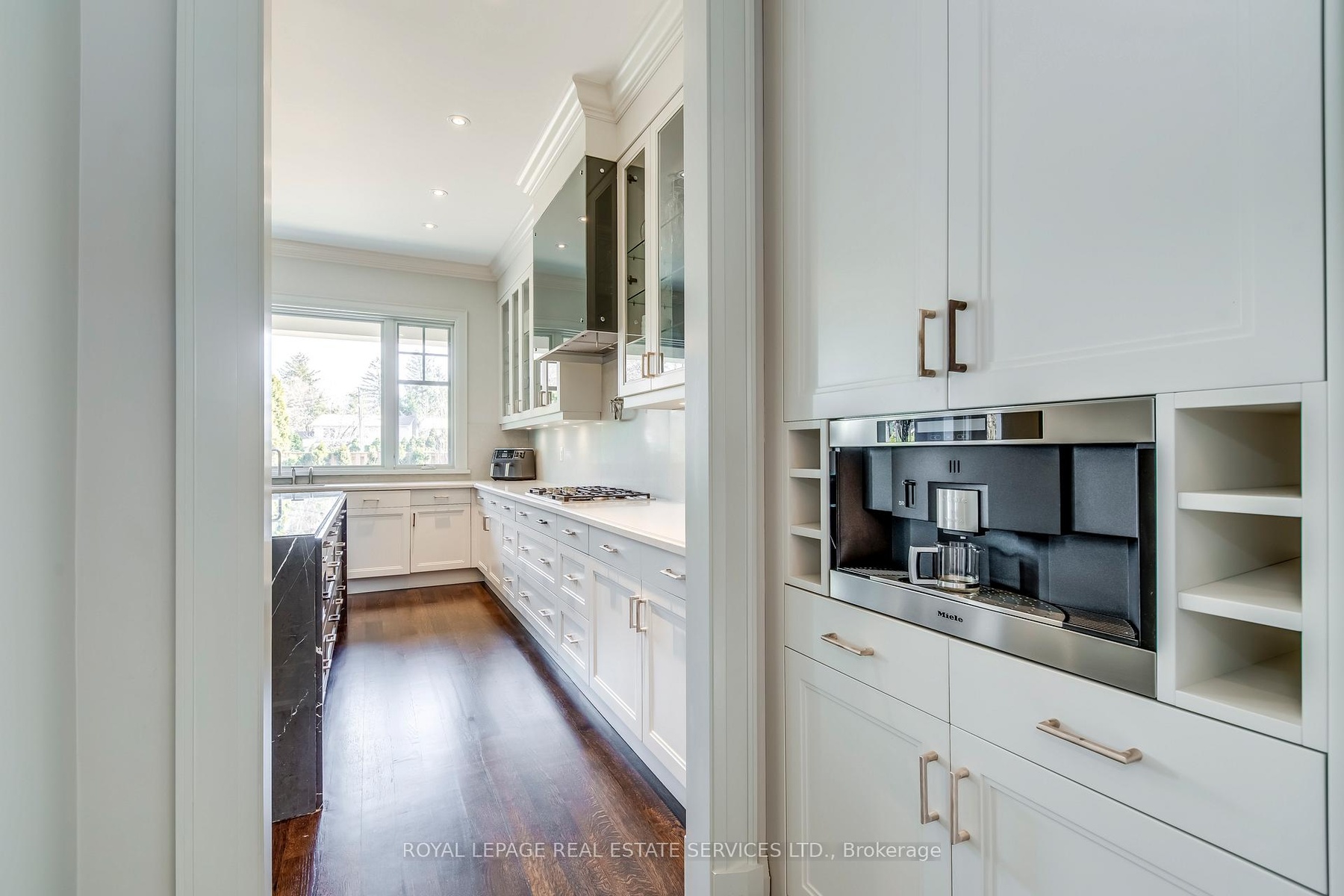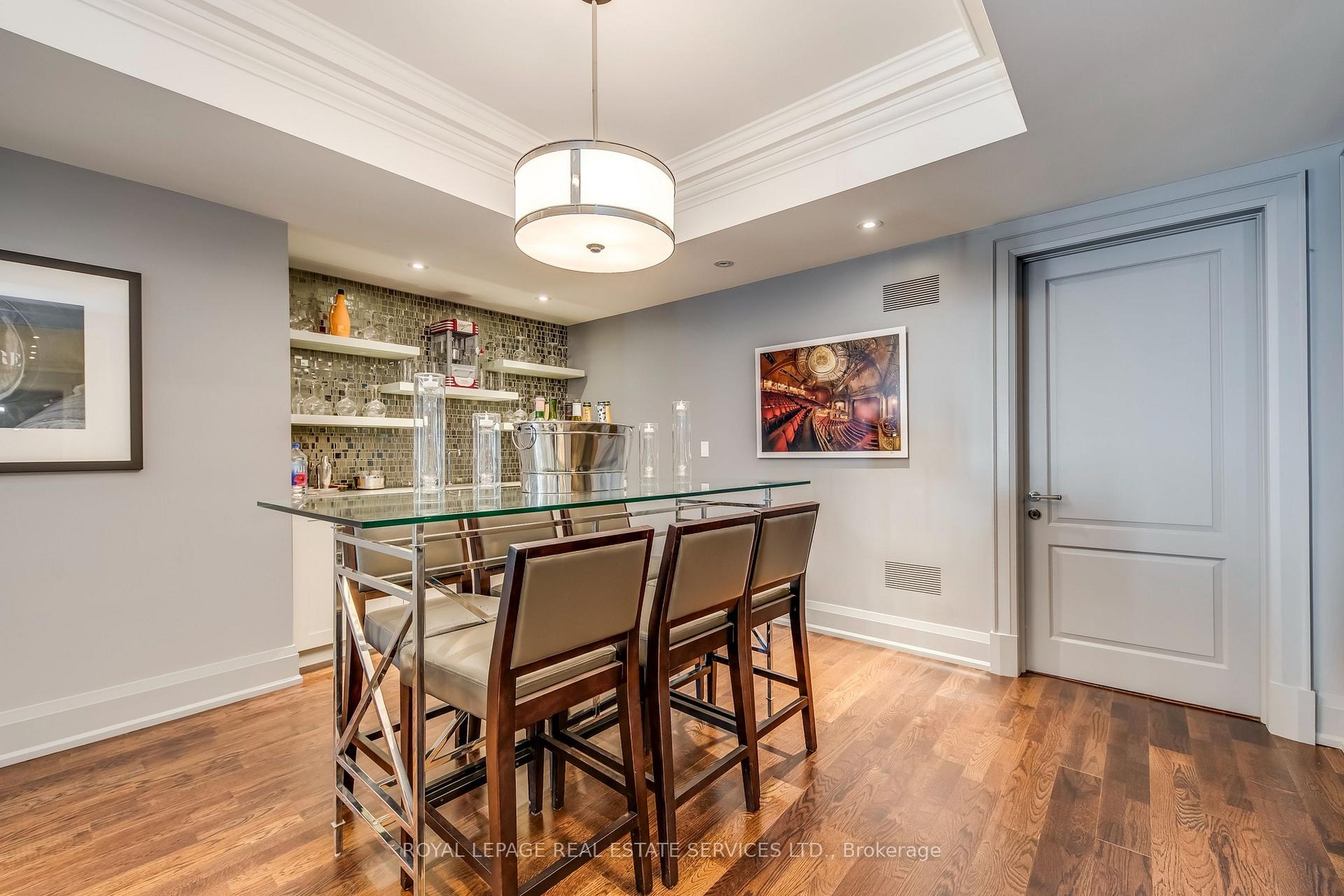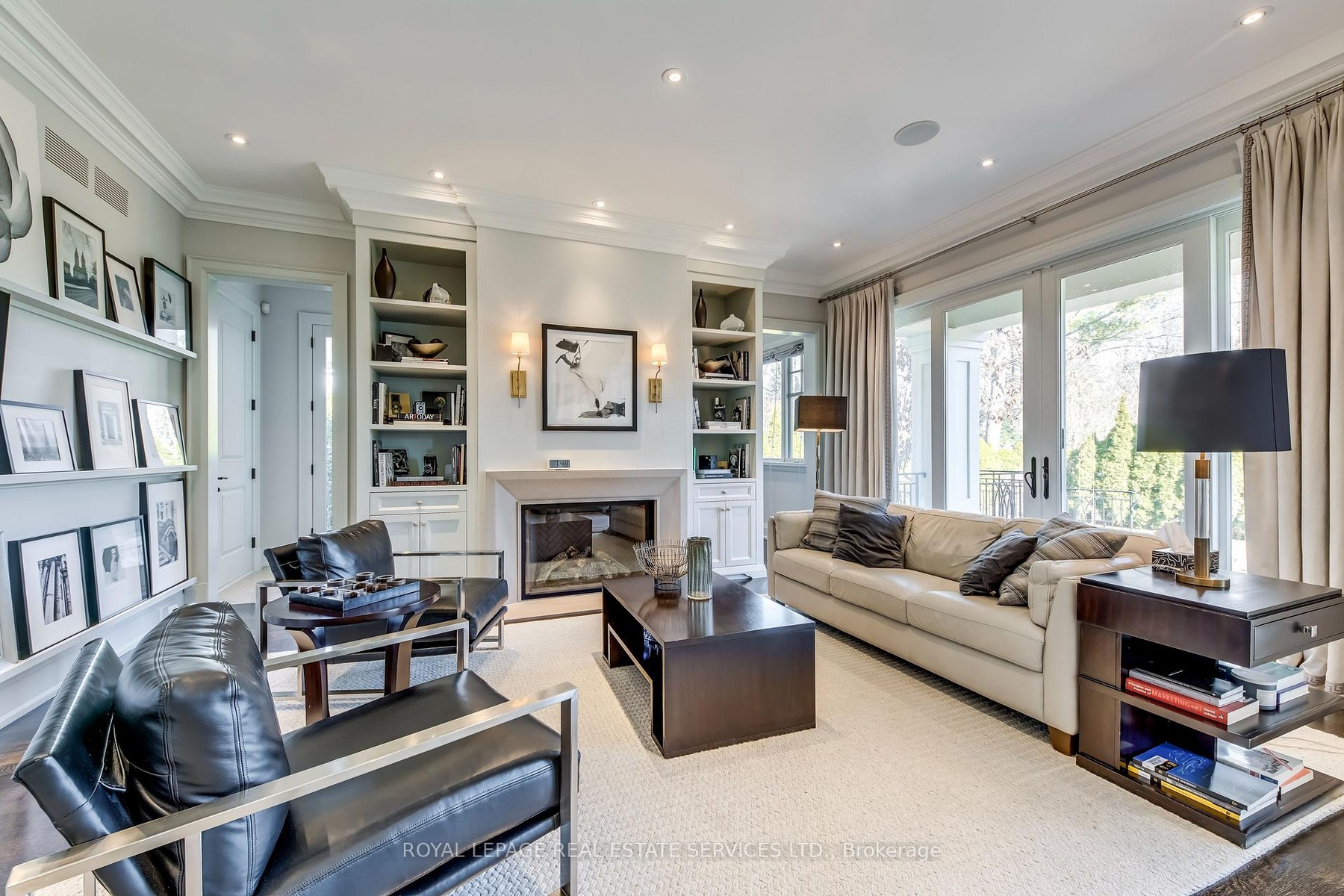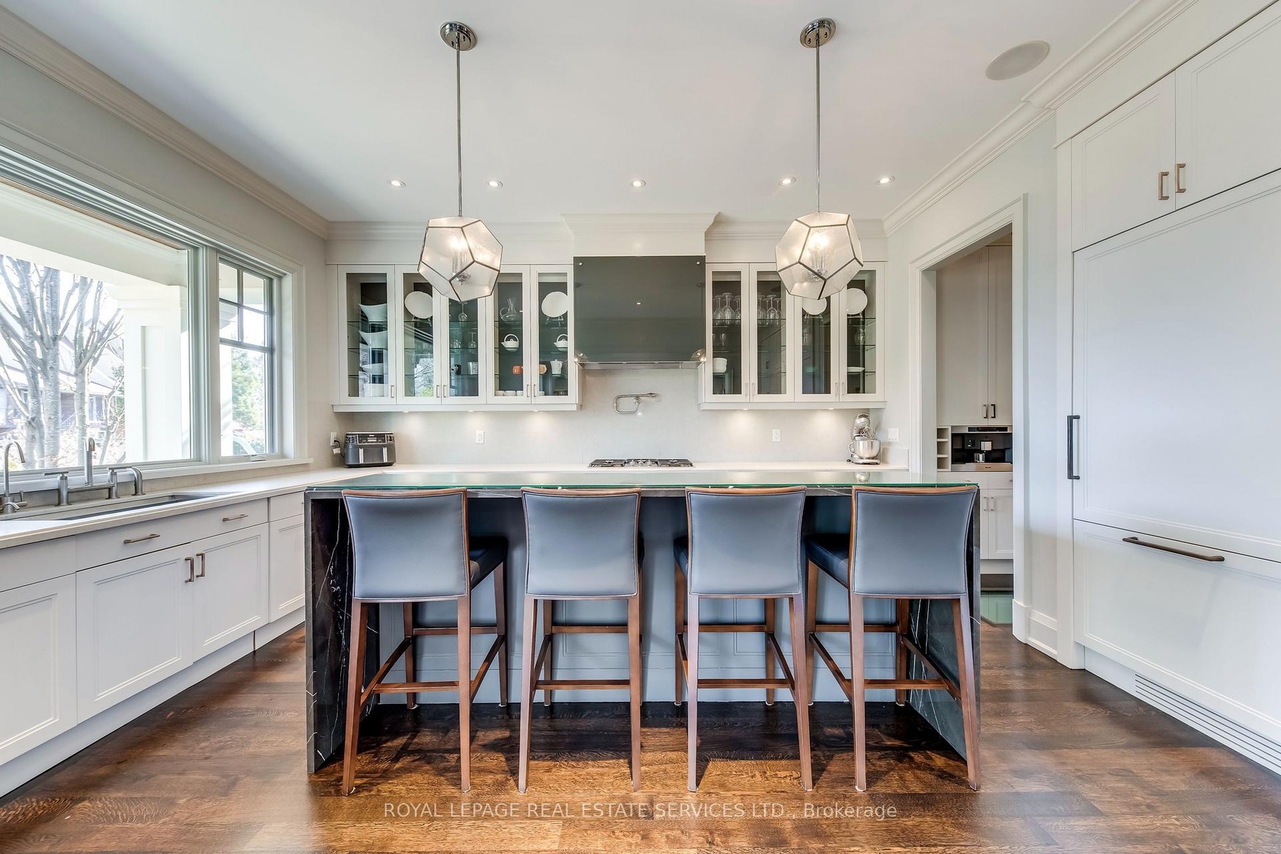 Elegant Custom Estate in Prestigious Southeast Oakville. Experience refined living in this stunning custom residence offering over 4,800 sq ft above grade and more than 7,300 sq ft of total living space. Thoughtfully designed by Michael Pettes and expertly built by PCM, this home showcases timeless architecture and exceptional craftsmanship throughout. The main level exudes European sophistication, featuring plaster crown mouldings, custom drapery, designer wall sconces, and intricate architectural detailing. A dramatic main floor library impresses with soaring ceilings, a gas fireplace, and a striking wrought-iron catwalk above. The grand formal dining room comfortably accommodates large gatherings, perfect for elegant entertaining. At the heart of the home is a Downsview chef's kitchen complete with a large centre island, servery, and seamless flow into the breakfast area and spacious family room. The upper level offers an outstanding layout highlighted by a wide skylit hallway-ideal for displaying art or family memories. All four generously sized bedrooms feature private ensuites and ample closets. The luxurious primary retreat boasts a cathedral ceiling, dressing room, and spa-inspired ensuite with a built-in bookshelf beside the soaker tub. The fully finished lower level is designed for both relaxation and entertaining, featuring a fifth bedroom, full bath, expansive recreation room with wet bar, and a stone-accent wine cellar. A large laundry room with extensive counter space and a wide winding walk-up to the backyard adds convenience. Additional highlights include a main floor den, upper-level study, heated interlock driveway, oversized garage with car lift capability, covered rear porch, and dual furnaces and A/C units. Ideally located within walking distance to top-rated schools and just minutes to shopping, amenities, and major highways, this exceptional home offers luxury, functionality, and an unbeatable Southeast Oakville lifestyle.