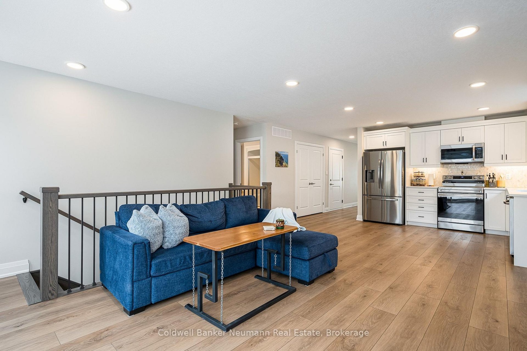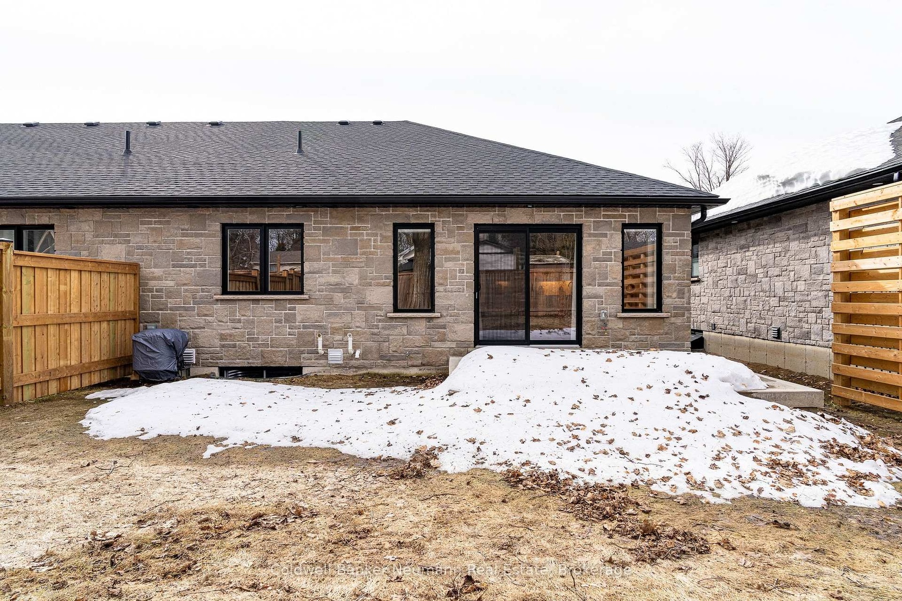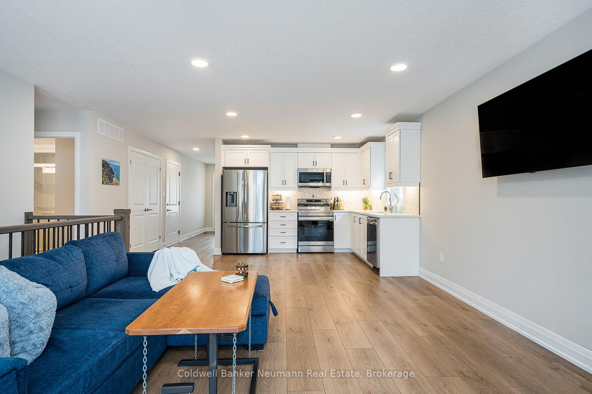 A fabulous, nearly new, stone end unit bungalow in the quaint town of Durham! Built with generous room sizes, appealing finishes, and bright and open spaces, this one is sure to meet your checklist. The main floor features everything you need on a daily basis, with vinyl plank flooring throughout, modern flush-mount lighting and neutral colours. The main living area is airy, with an open concept eat-in kitchen area, featuring white cabinetry, dark hardware, custom backsplash, quartz countertops, stainless appliances, all overlooking the living room at the rear. The living space is sizeable, and features sliding doors to the partially-fenced rear yard and concrete patio area. There is a spacious main floor bedroom as you enter, with the larger, primary bedroom at the rear. A generous sized 3pc main bathroom, and a separate, handy main floor laundry closet with room for storage complete the main level. The basement is finished, with large rec room, large third bedroom and 4pc bath, all in neutral tones, with tons of supplementary storage space in both the utility area and a separate front room. Single car attached garage (with EV charging station), and parking for two cars in the driveway. Completely carpet free, ready to move into, with all newer mechanicals. Ideal for couples and young families, downsizers or empty nesters! If quiet, small-town living has been calling your name, but you'd like to be near some basic amenities, 150 Durham Road West may be what you've been looking for!