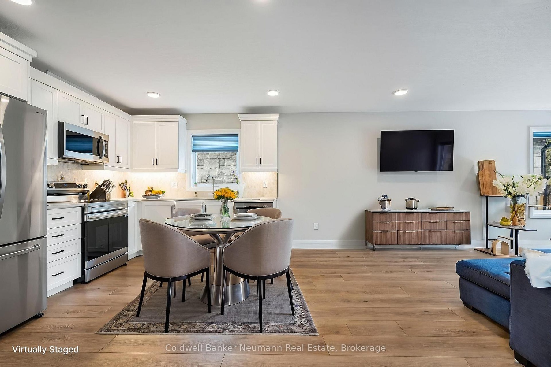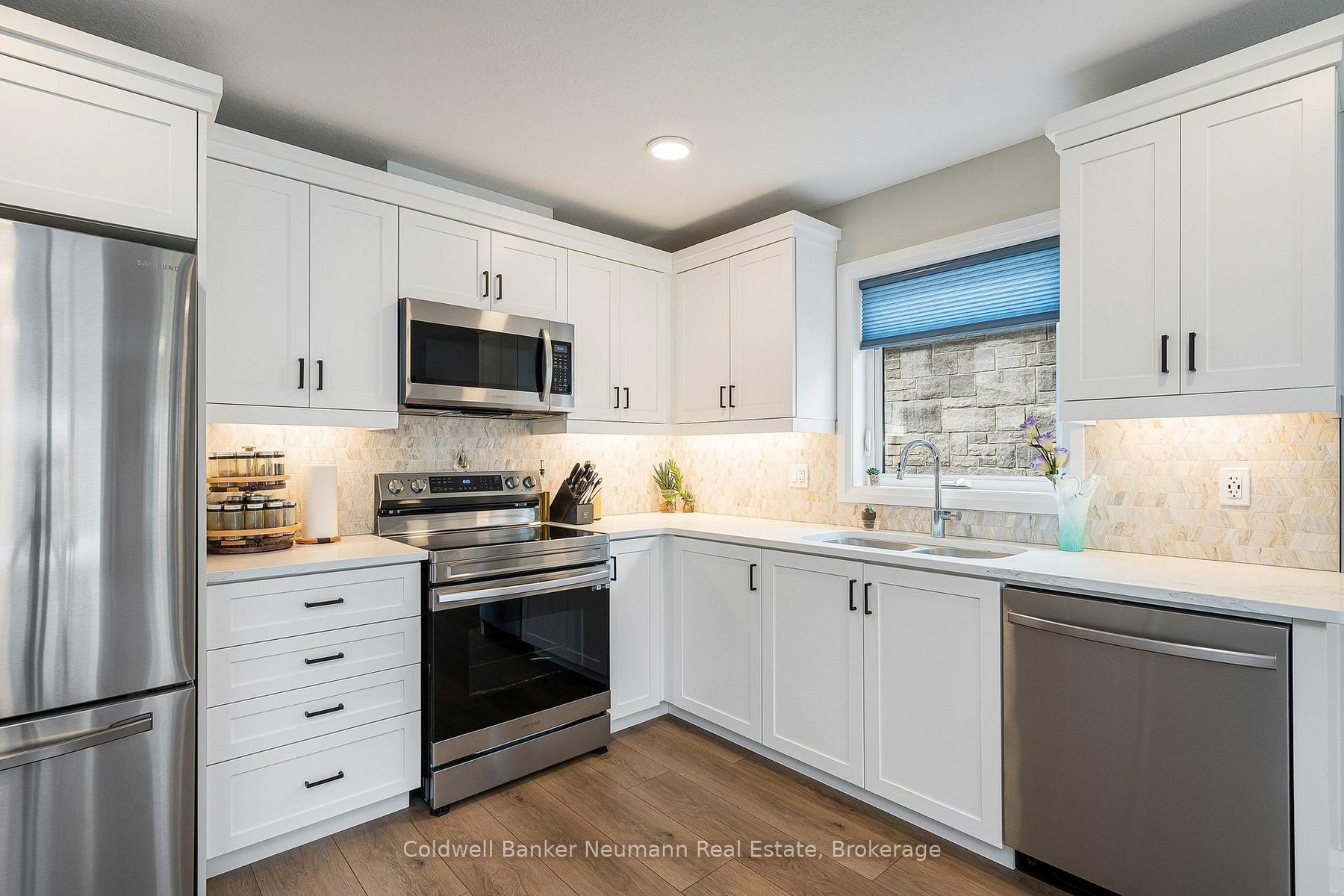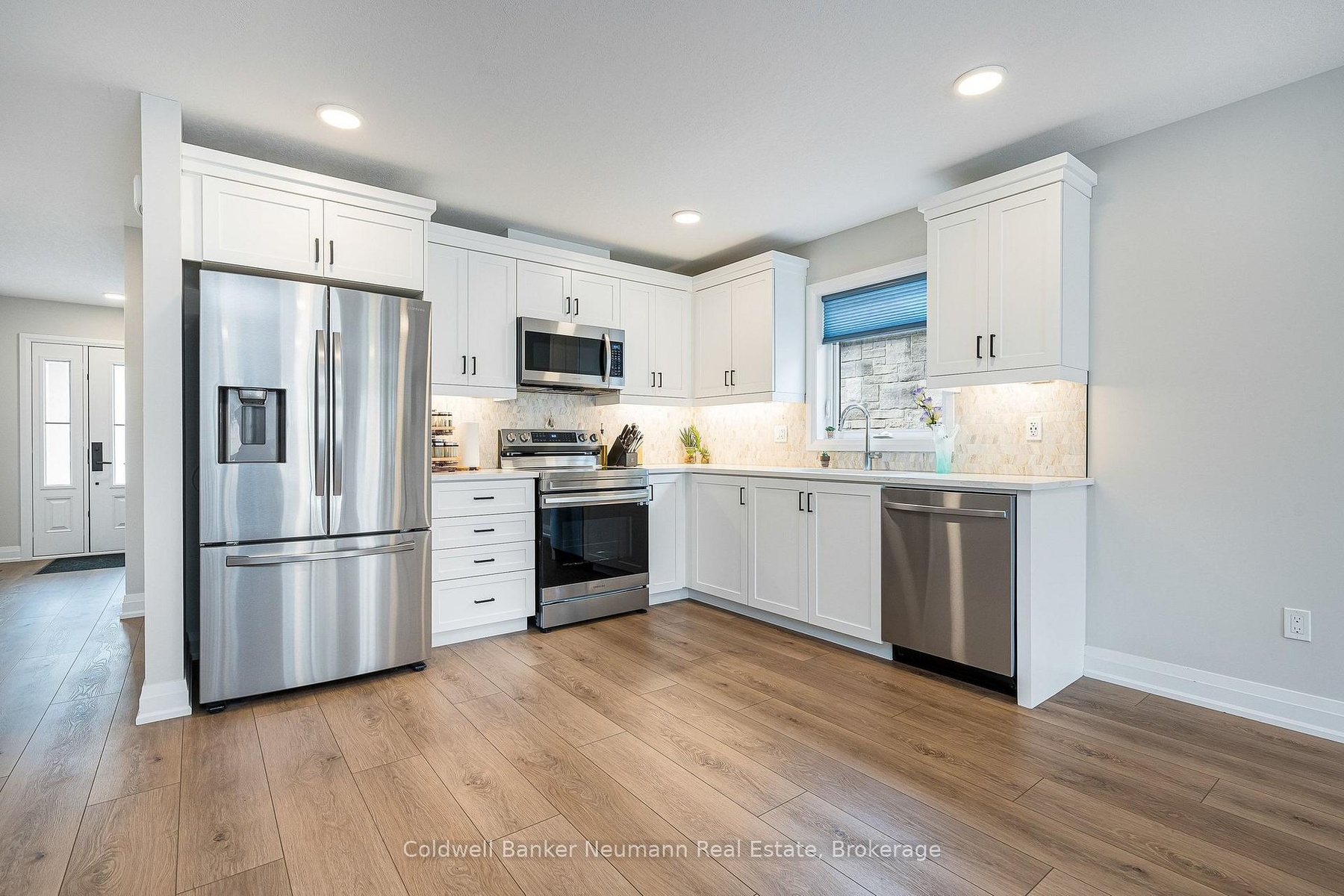 A fabulous, nearly new, stone end unit bungalow in the quaint town of Durham! Built with generous room sizes, appealing finishes, and bright and open spaces, this one is sure to meet your checklist. The main floor features everything you need on a daily basis, with vinyl plank flooring throughout, modern flush-mount lighting and neutral colours. The main living area is airy, with an open concept eat-in kitchen area, featuring white cabinetry, dark hardware, custom backsplash, quartz countertops, stainless appliances, all overlooking the living room at the rear. The living space is sizeable, and features sliding doors to the partially-fenced rear yard and concrete patio area. There is a spacious main floor bedroom as you enter, with the larger, primary bedroom at the rear. A generous sized 3pc main bathroom, and a separate, handy main floor laundry closet with room for storage complete the main level. The basement is finished, with large rec room, large third bedroom and 4pc bath, all in neutral tones, with tons of supplementary storage space in both the utility area and a separate front room. Single car attached garage (with EV charging station), and parking for two cars in the driveway. Completely carpet free, ready to move into, with all newer mechanicals. Ideal for couples and young families, downsizers or empty nesters! If quiet, small-town living has been calling your name, but you'd like to be near some basic amenities, 150 Durham Road West may be what you've been looking for!
