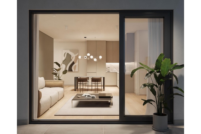 The apartment features a thoughtfully designed open-plan layout maximizing space, natural light, and functionality. High-quality finishes, large glass openings, and a private veranda create a seamless indoor-outdoor living experience, perfectly suited to the Mediterranean climate. The smart home infrastructure allows residents to control lighting, temperature, and energy consumption, contributing to a more efficient and sustainable lifestyle.