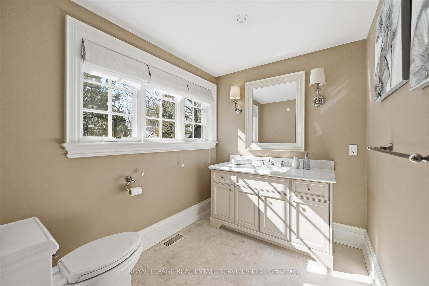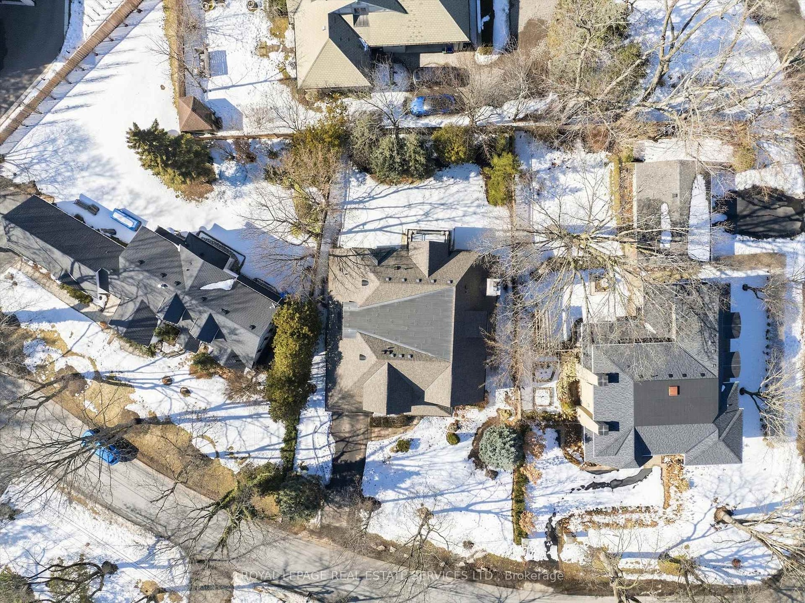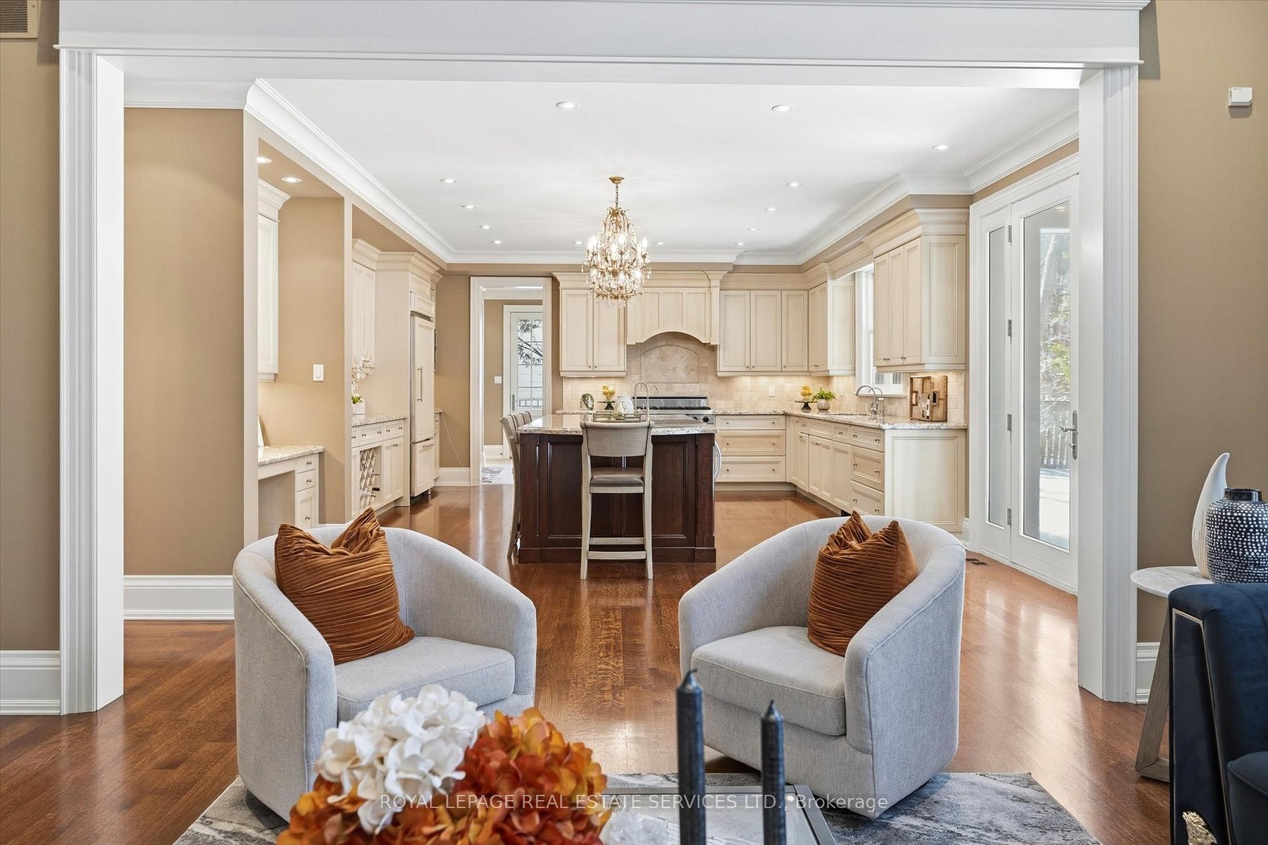 Designed by noted architect Gren Weis and built by Hallmark Homes, this distinguished Morrison residence reflects a level of architectural integrity and craftsmanship rarely replicated in today's custom market. Set on a beautiful 0.216 acre lot, the home offers appx. 5,500 SF of quality finished living space across three thoughtfully designed levels. The main floor showcases quarter-sawn cross-cut oak flooring, solid core doors, deep trim work and 9" baseboards, complemented by 9' ceilings and refined architectural detailing. A dramatic 13.5' coffered family room anchored by a traditional woodburning fireplace and cherry built-ins creates a warm focal point, framed by high-end architectural Kolbe windows that fill the space with natural light. The kitchen is designed for both everyday living and entertaining, featuring custom Andrew Moseley cabinetry, multi-tone granite surfaces, tumbled marble backsplash, premium appliances including a Viking six-burner gas range, and a generous 9' island with prep sink. Adjacent pantry and mudroom spaces provide everyday functionality with built-ins and direct garage access. Upstairs, the primary suite offers a private retreat with walk-out sun deck, walk-in closet, and a limestone ensuite with heated floor, Bain Ultra air tub and oversized rain shower. Two additional bedrooms each enjoy ensuite access. The fully finished lower level, with 9' ceilings and hydronic radiant heated floors, extends the living space with a large recreation area, custom bar, gym with resilient marmoleum flooring, and guest bedroom. Exterior highlights include premium cedar shake siding, copper architectural accents, Kolbe windows with UV protection, irrigation system and heated tandem garage. Located in one of Oakville's most established Morrison neighbourhoods, surrounded by mature streetscapes and prestigious custom homes. A rare combination of architectural pedigree, enduring craftsmanship and refined living space. (certain images digitally enhanced)