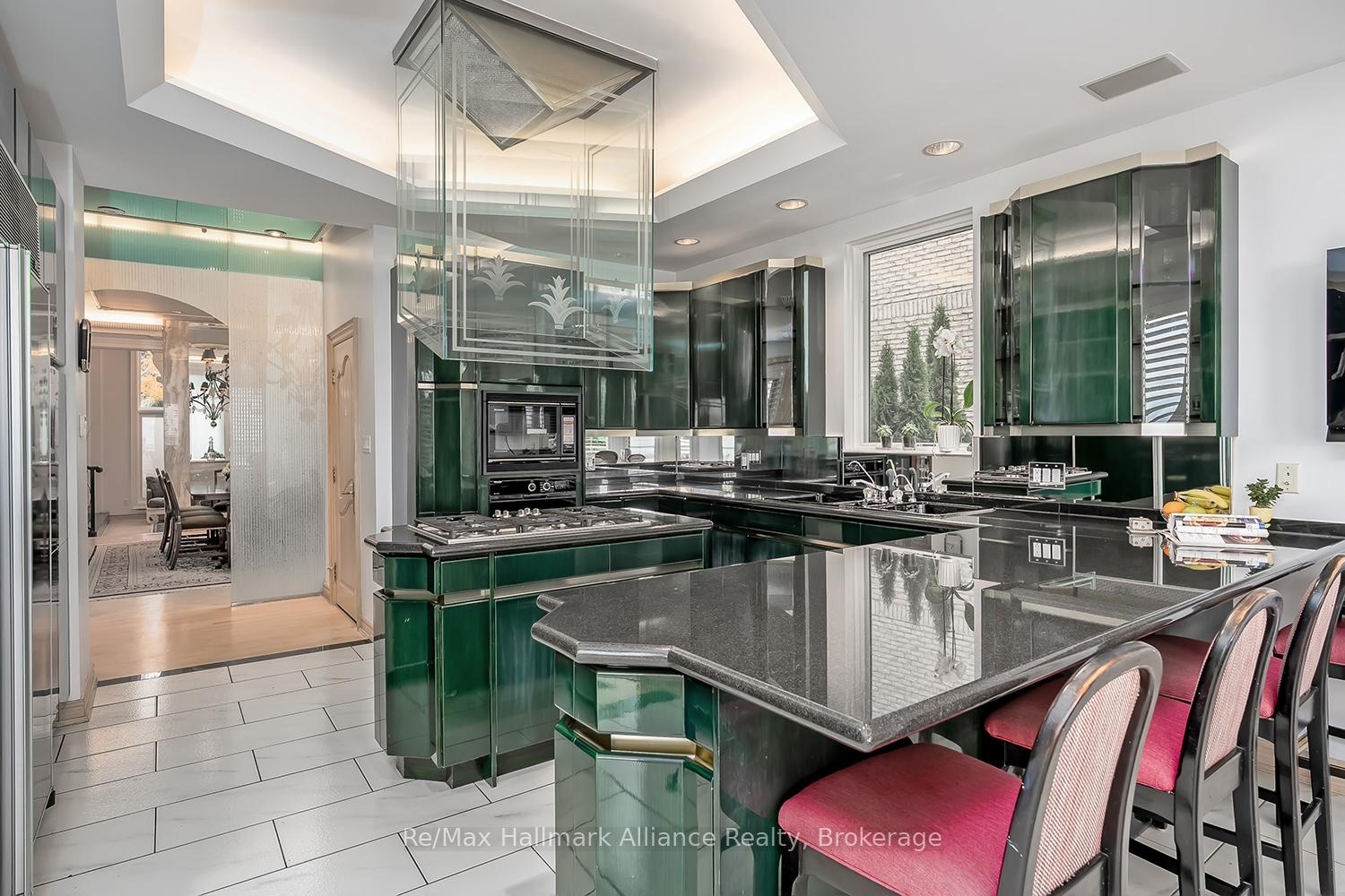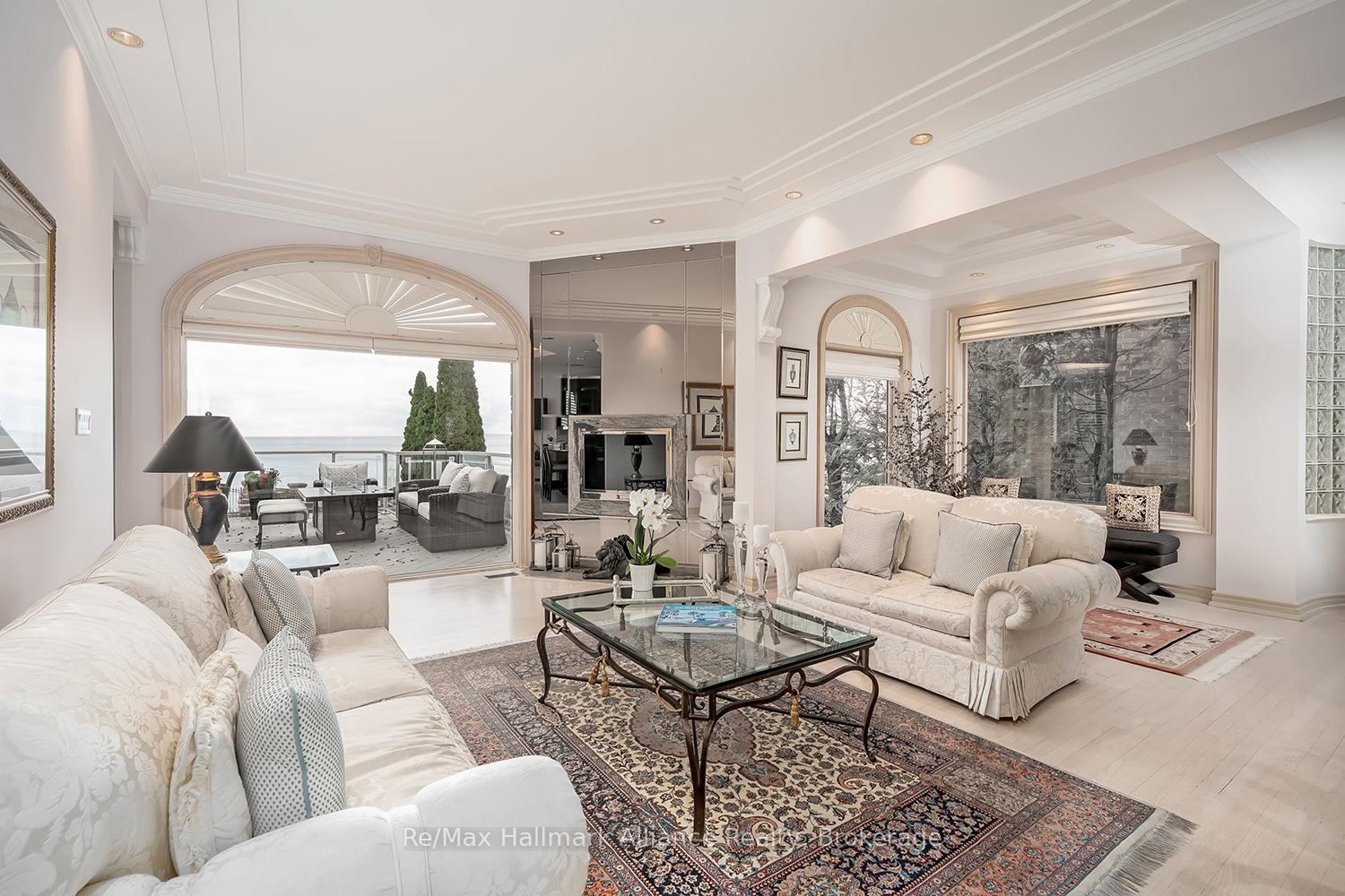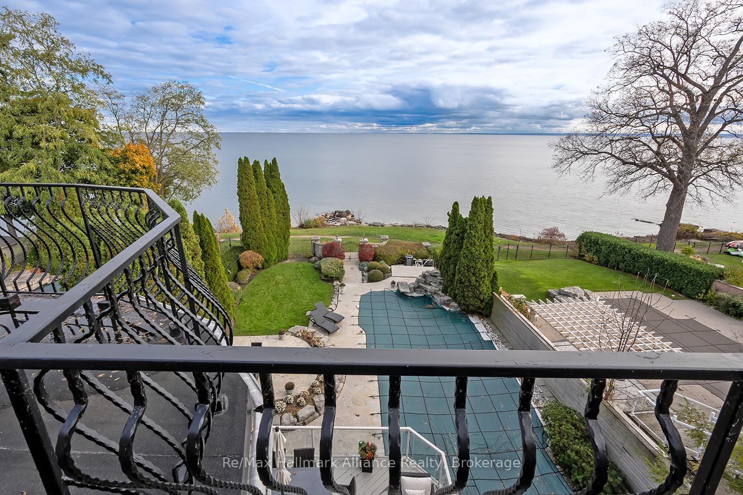 Crafted as the personal residence of a renowned designer, this 5+1 bedroom, 10,000+ sq.ft. waterfront estate is a rare offering in one of Bronte's most coveted settings. While neighbouring homes were also designed by him, none compare to the scale, craftsmanship, and artistry dedicated to this residence-his own masterpiece. Expansive windows and soaring ceilings flood the home with natural light, framing breathtaking lake views on every level. Multiple balconies and terraces offer front-row views of sunrises, sunsets, and moonlit water-creating a seamless connection to nature from morning to night. Thoughtfully designed for both family living and elegant entertaining, the main level features grand principal rooms, multiple gas fireplaces, formal and informal living spaces, and a gourmet kitchen with walkout to the lakeside terrace. Each level offers outdoor retreats - private balconies off bedrooms, and expansive terraces perfect for gatherings. The upper level includes generously sized bedrooms, including a luxurious primary suite with private balcony, spa-like ensuite, and unobstructed views of the lake. A full lower level adds an additional bedroom, recreation spaces, gym, and walkout access. Set on a quiet street with a strong sense of community, this home offers a rare blend of privacy and connection. The saltwater pool, manicured grounds, and lakeside setting make every day feel like a peaceful escape. Minutes to Bronte Harbour, boutique shops, trails, parks, and top-rated schools-this residence is more than a home; it is a lifestyle on the water.