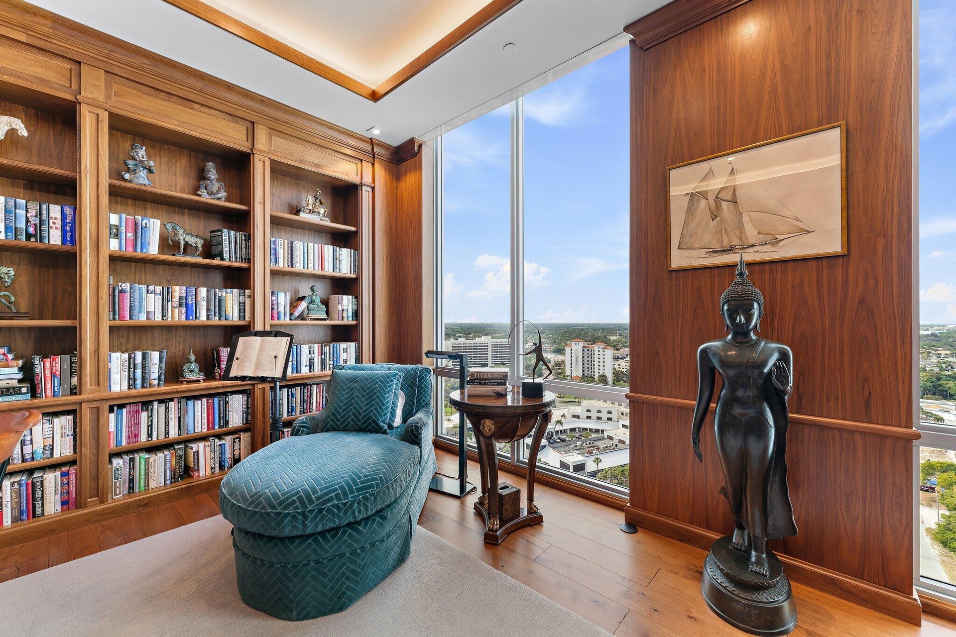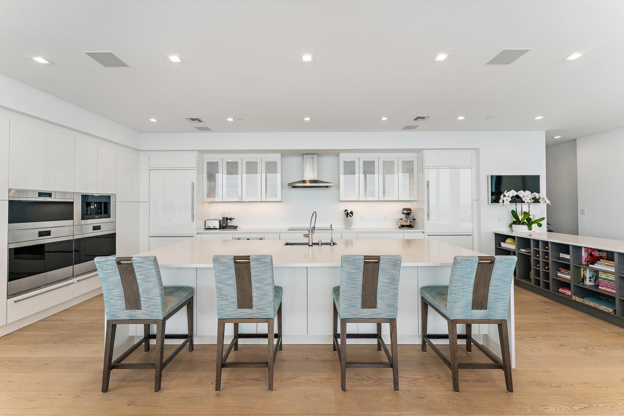 This amazing penthouse suite occupies the entire top floor of Building # 3 at Water Club in North Palm Beach. Enjoy breathtaking views from the Great Room where the East wall is a 42-foot-long by 11-foot-tall wall of glass overlooking the Atlantic Ocean and Lost Tree Village like a postcard. Designed by the owner with the developer prior to construction, this signature property is 1 of 1 with 360-degree views and next level finishes not seen at Water Club. Reading more like an ultra-luxury home in the sky than a condominium, this suite has a great room/kitchen area that would rival the finest area single-family homes. The wood paneled library is a dream workspace with room for a conference table, desk area, reading area, and expansive bookshelves, plus a full private bath. A private gym with half bath, den, guest suite, her office with walk-in closet and bath, powder room, laundry, and two elevator foyers round out the space. Best of all, this penthouse has four assigned parking spaces under the building. Water Club has world class amenities like 24/7 manned and gated security, private elevator lobbies, underground parking, two private clubhouses with bar and billiards table, resort style pools, day dock, lap pool, two fitness centers, with yoga/pilates studio, spa, fire pits, pickleball court, guest suites, and more.