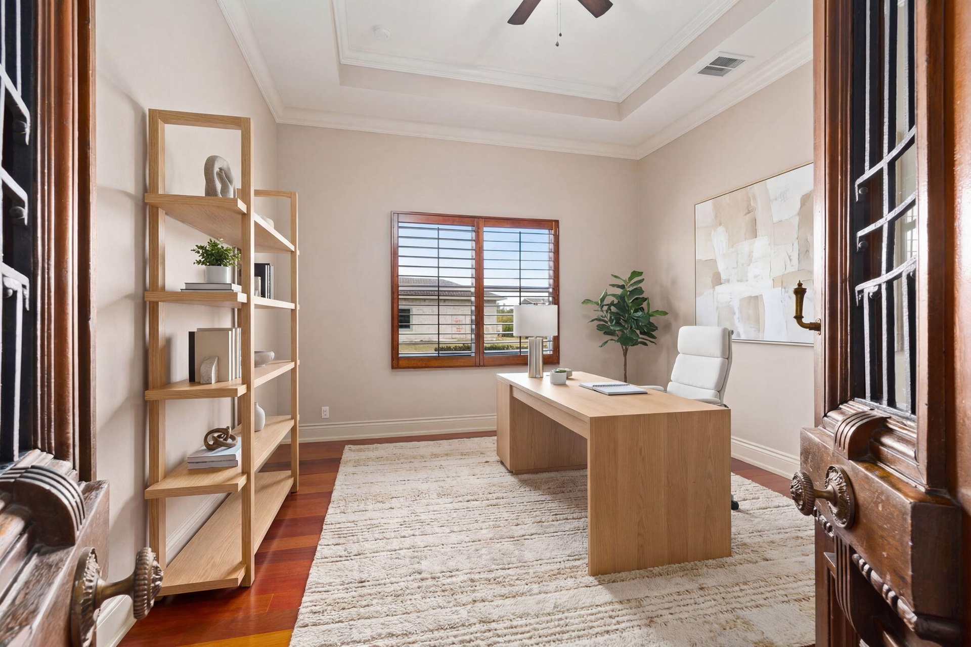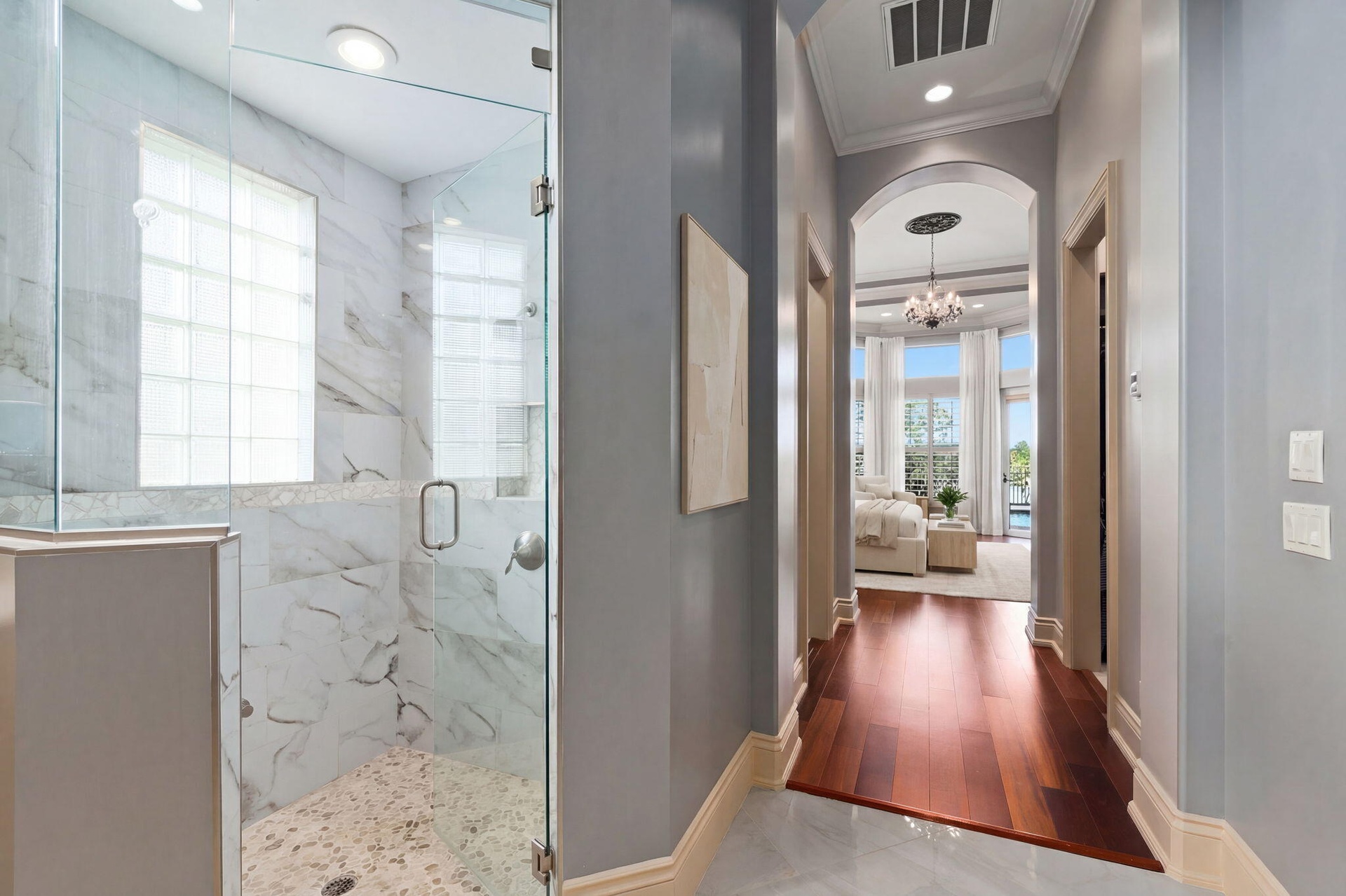 As you ascend the staircase to the upper level, you'll discover an expansive loft space perfect for a Living Room, Office, Playroom or in Home Gym. Step out onto the sprawling balcony and behold stunning sunrises & views of the Arnold Palmer Course's 3rd hole, a vista that will leave you breathless with its beauty.