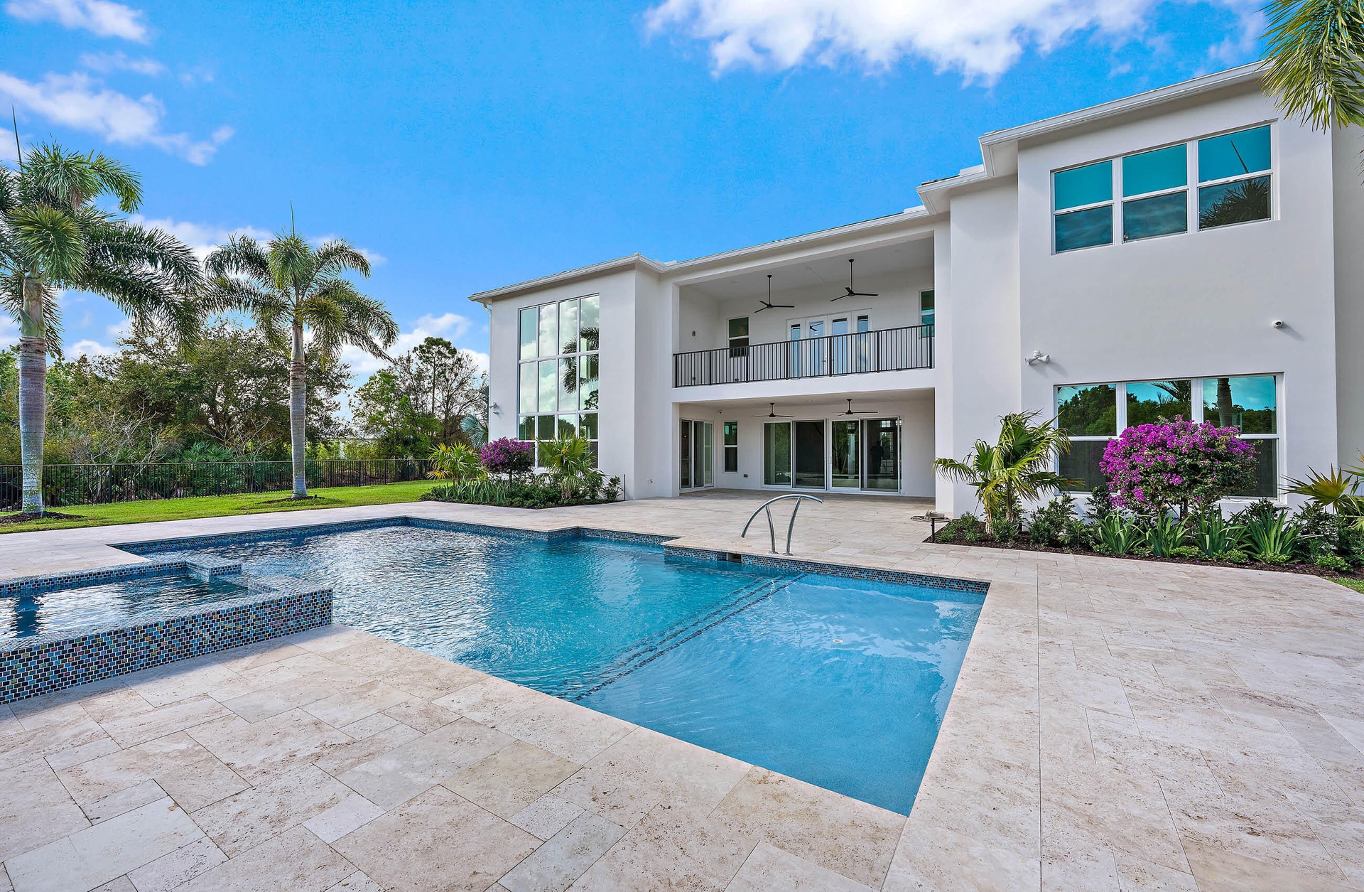 This is a rare opportunity to own what may be the finest home in one of Jupiter's most beloved communities. Completely renovated with no expense spared and never lived in since completion, this exceptional Wentworth model in Prado offers 6,254 square feet under air and features the highly desirable coastal elevation. Perfectly positioned on arguably one of the best lots in the neighborhood, the one-acre property enjoys eastern exposure and backs up to a peaceful preserve with tranquil, expansive views, creating a private setting with only one neighboring home. The open floor plan showcases extraordinary craftsmanship and design, offering five bedrooms, six full baths, and two half baths, along with a formal dining room, private office, a spectacular two-story family room filled with natural light, and a bonus room that could serve as either a club room or a kids' playroom. The brand-new chef 's kitchen features custom cabinetry, Sub-Zero and Wolf appliances, and a herringbone zellige backsplash, thoughtfully designed for both functionality and style. Throughout the home are wide-plank European oak floors, all-new 9-foot solid wood interior doors with high-end hardware, and eight fully renovated bathrooms—each with its own character while maintaining a cohesive aesthetic. High-end wallpaper and extensive custom woodwork add warmth and architectural detail throughout. Upstairs, the expanded owner's suite offers a luxurious retreat with dual walk-in closets and a spa-inspired bath featuring a soaking tub, glass shower, and dual vanities. Three additional bedrooms include en-suite baths and built-in closets, while an upstairs loft and balcony overlook the family room and capture beautiful pool and preserve views. Outdoor living is equally impressive, with an expanded covered lanai, travertine decking, and a saltwater heated pool with sun shelf and spa, surrounded by all-new professional landscaping for ultimate privacy. Exterior pavers and patios have been profes sionally sealed to enhance both durability and appearance. Located in the family-friendly gated community of Prado, this estate offers luxury living on over an acre while remaining just minutes from Jupiter's beaches, dining, shopping, and everyday conveniences.