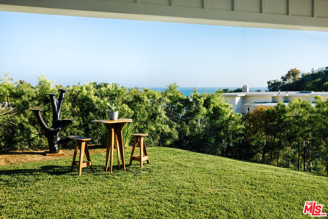Tucked away at the end of a quiet cul-de-sac within the coveted Sea Reef enclave of Pacific Palisades, this reimagined coastal residence offers privacy, scale, and sweeping ocean views extending across Santa Monica Bay toward Catalina Island. Set on an expansive 17,227 square foot lot, the property delivers rare usable outdoor space in a hillside setting, creating an exceptional opportunity for both immediate enjoyment and future enhancement. Spanning approximately 2,799 square feet, the four-bedroom, four-bathroom home is thoughtfully designed around open, light-filled living spaces. Vaulted ceilings and skylights introduce natural light throughout, while wide plank flooring and refined contemporary finishes create a clean, cohesive aesthetic. The main living and dining areas flow seamlessly into the chef's kitchen, where custom cabinetry, stone surfaces, stainless appliances, and a generous center island anchor the heart of the home. Expansive sliding glass doors open to the flat grassy yard, encouraging effortless indoor-outdoor living and entertaining.The primary suite serves as a tranquil retreat with direct access to the grounds and a spa-inspired bath featuring a freestanding soaking tub, glass-enclosed shower, and dual vanities. Secondary bedrooms are well-proportioned and flexible, suitable for guests, office, or fitness use. An elevated deck captures serene ocean vistas framed by mature greenery, offering a private setting for sunset views and outdoor gatherings. The depth and width of the lot provide space for recreation, lounging, or potential future amenities, including pool expansion subject to buyer verification. Additional features include a two-car garage and generous driveway parking, a rare advantage within this desirable coastal pocket. Located moments from Palisades Village, beaches, scenic hiking trails, and highly regarded public and private schools, this property presents a compelling opportunity to secure a turnkey coastal residence on a substantial parcel in one of the Westside's most sought-after neighborhoods.