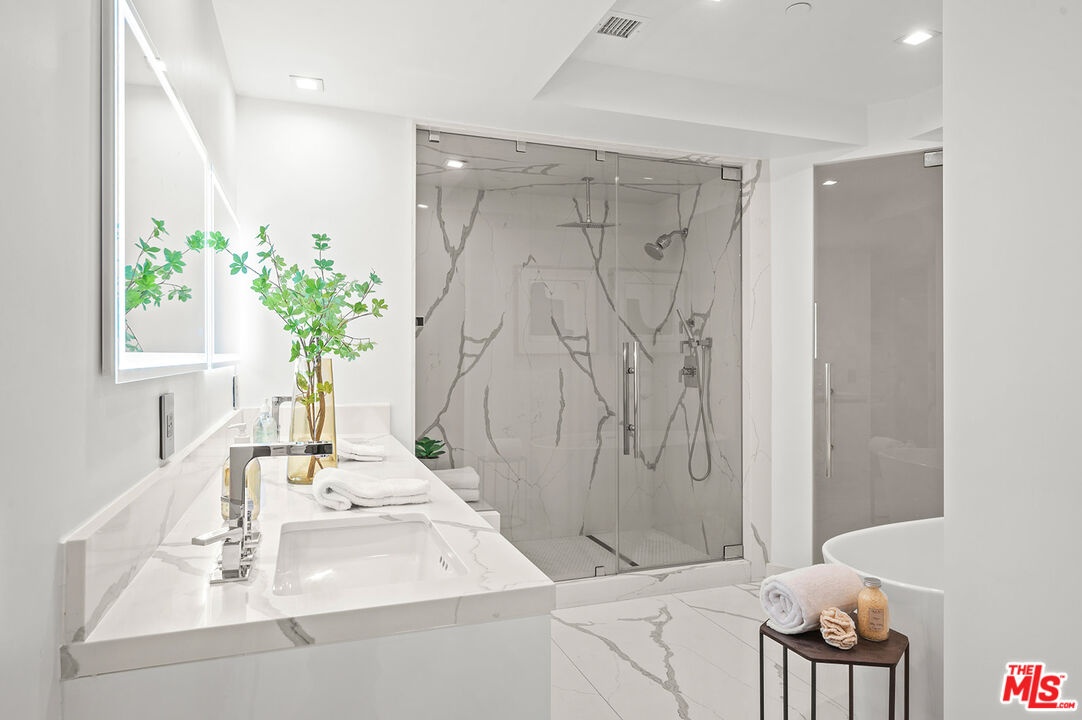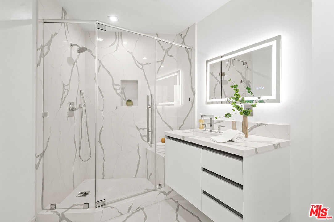 The Ultimate 3-Bed. Residence in Iconic Wilshire House! Live amongst the Elite in this newer gutted & rebuilt stylish condo with spectacular breathtaking views of the city, ocean and mountain in the prestigious Wilshire House, LA's premier full service building with 24-Hrs security & Valet. Grand entry hallway leads to spacious living & dining room, open custom-built gourmet kitchen with ORNARE cabinetry & superb Center Island, State of the art appliances, great primary suite with luxurious bath and two custom-built walk-in closets by ORNARE , two additional bedroom en-suites and a separate powder room. This ultimate residence also offers generous custom-built closet space, white oak designer floors, recessed lighting, designer fireplace, electronic shades and smart home features. Floor-to-ceiling windows and wrap-around balconies through-out. Absolute turn-key unit!