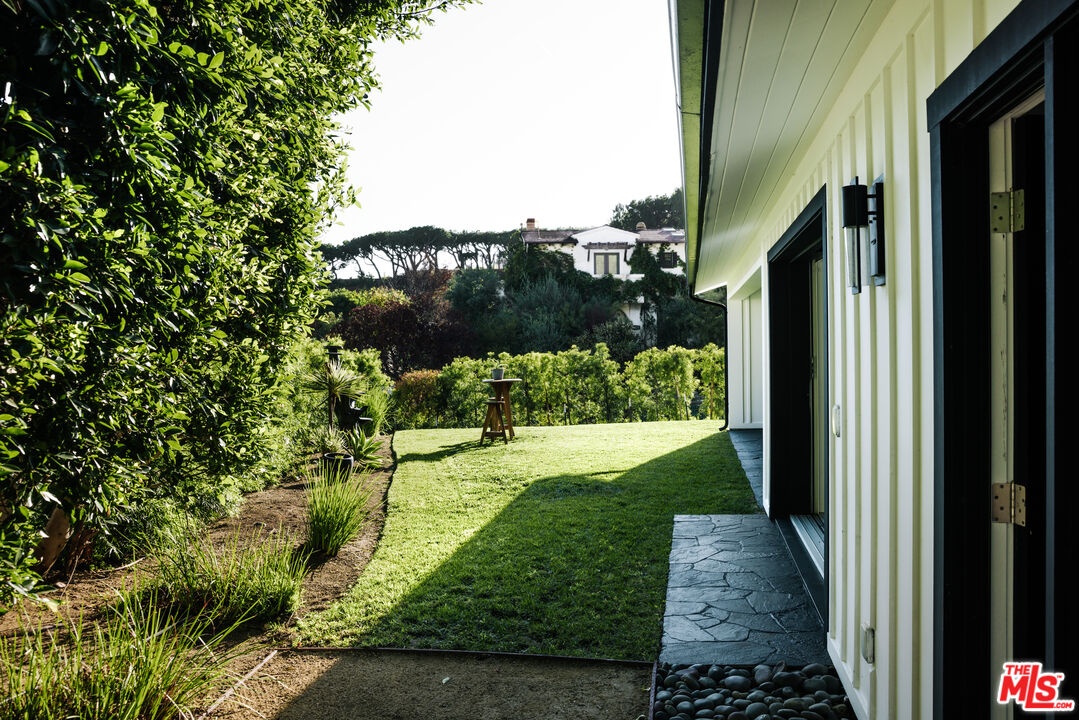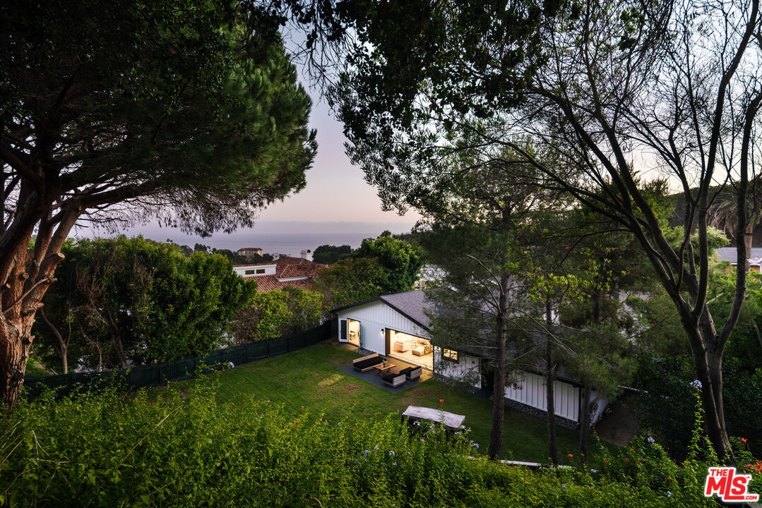 Tucked away at the end of a quiet cul-de-sac within the coveted Sea Reef enclave of Pacific Palisades, this reimagined coastal residence offers privacy, scale, and sweeping ocean views extending across Santa Monica Bay toward Catalina Island. Set on an expansive 17,227 square foot lot, the property delivers rare usable outdoor space in a hillside setting, creating an exceptional opportunity for both immediate enjoyment and future enhancement. Spanning approximately 2,799 square feet, the four-bedroom, four-bathroom home is thoughtfully designed around open, light-filled living spaces. Vaulted ceilings and skylights introduce natural light throughout, while wide plank flooring and refined contemporary finishes create a clean, cohesive aesthetic. The main living and dining areas flow seamlessly into the chef's kitchen, where custom cabinetry, stone surfaces, stainless appliances, and a generous center island anchor the heart of the home. Expansive sliding glass doors open to the flat grassy yard, encouraging effortless indoor-outdoor living and entertaining.The primary suite serves as a tranquil retreat with direct access to the grounds and a spa-inspired bath featuring a freestanding soaking tub, glass-enclosed shower, and dual vanities. Secondary bedrooms are well-proportioned and flexible, suitable for guests, office, or fitness use. An elevated deck captures serene ocean vistas framed by mature greenery, offering a private setting for sunset views and outdoor gatherings. The depth and width of the lot provide space for recreation, lounging, or potential future amenities, including pool expansion subject to buyer verification. Additional features include a two-car garage and generous driveway parking, a rare advantage within this desirable coastal pocket. Located moments from Palisades Village, beaches, scenic hiking trails, and highly regarded public and private schools, this property presents a compelling opportunity to secure a turnkey coastal residence on a substantial parcel in one of the Westside's most sought-after neighborhoods.