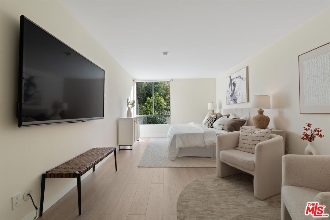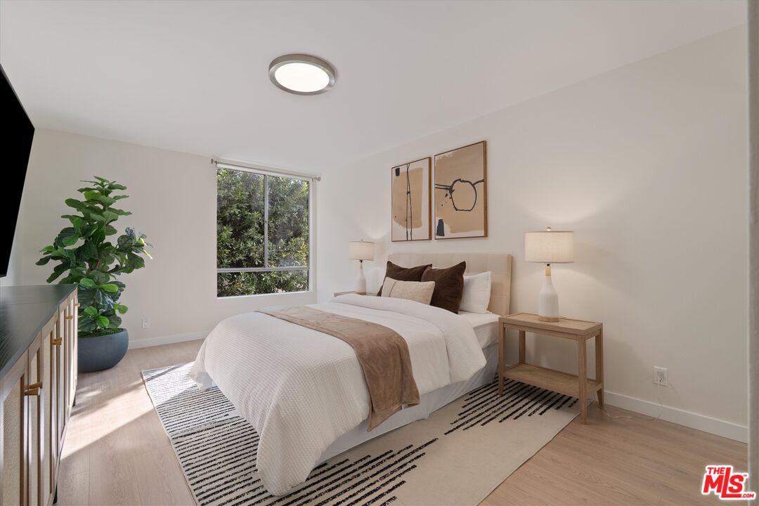 Spacious second floor condo for lease in Park Oakhurst, a boutique 15 unit building on one of Beverly Hills' most desirable tree lined streets just north of Beverly Blvd. The well designed layout offers generous living room and dining space with a decorative fireplace and access to a private balcony perfect for relaxing or entertaining. Light engineered hardwood floors throughout, large windows with peaceful tree lined outlooks, and a custom Italian kitchen with granite countertops, sleek cabinetry, and pantry storage create a homey living environment for you and guests. The oversized primary suite features a walk in closet and private bath while the second bedroom offers excellent space and storage. Additional highlights include in unit washer and dryer, central air and heat, and two tandem parking spaces in a secure underground garage with additional storage. The controlled access building includes an updated lobby and elevator and is ideally located moments from Rodeo Drive, West Hollywood, Cedars Sinai, and the best dining and shopping Beverly Hills has to offer. Welcome Home!
