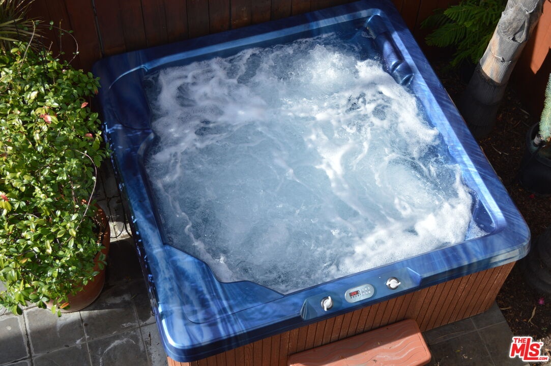 Nestled behind hedges, this original Spanish style home offers privacy, seclusion, and breathtaking views. Highlights include a dramatic landscaped entry, hardwood and tile floors throughout, a wood-burning fireplace, and private patios and balconies off both bedrooms. The serene backyard features a garden patio, hot tub, outdoor shower, and a daybed. Additional conveniences include an in-unit washer and dryer, central heating and AC with a smart Nest thermostat, keyless entry, and a one-car garage with EV charging capabilities. Also included with the rent is bi-weekly housekeeping service and weekly landscaping service. Welcome home!