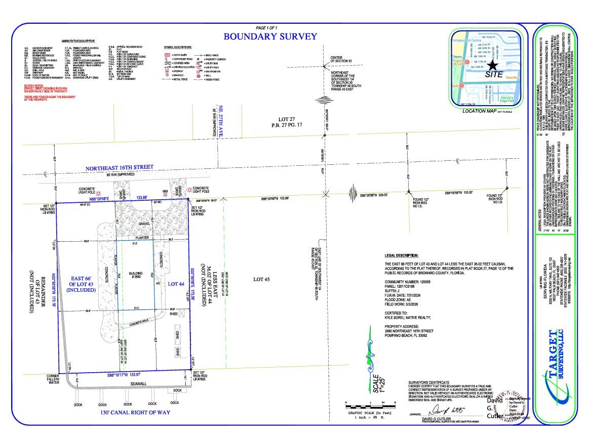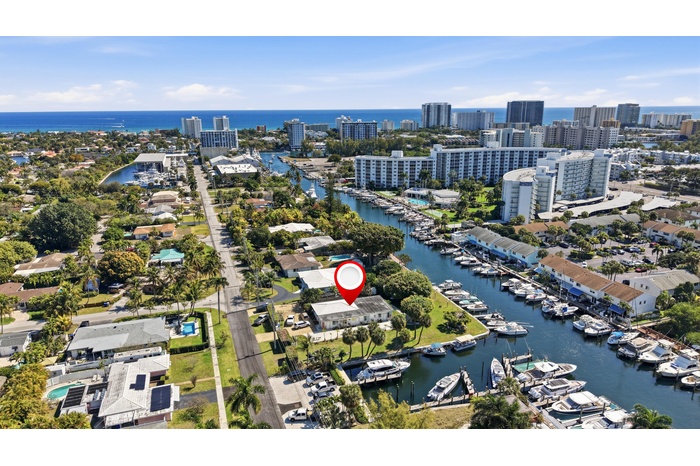 Unique property on 0.53-acre lot with approximately 275 ft of water frontage. Please see the survey for more information regarding water frontage and boat slips. Slips may be rented individually, or dock may accommodate larger vessels/yacht. Buyer to verify dockage specifications and permitted uses. Existing structure offers renovation or redevelopment opportunity. Rare parcel with exceptional potential for custom estate, pool, guest house, or expansion. Prime location near Hillsboro inlet, marinas, dining, and shopping. No HOA Please use ShowingTime or call the listing agent to schedule showings Kristen Sorel - 954-258-3079. 24-hour notice required.