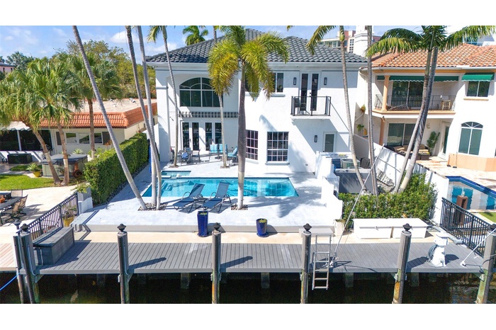 Spectacular fully updated and gated waterfront home, with 50' dock in the heart of Las Olas, only 10 minutes from Port Everglades inlet. Enjoy the cool evenings with your backyard facing east. Take the elevator to the second floor where you will find 2 primary suites with oversized Bathrooms featuring Restoration Hardware cabinetry. The ground floor features an open kitchen/ dining area, walk in pantry, formal dining room, 300 bottle wine cellar and living area. This is a chefs dream with 6 burner gas stove, sub zero and large countertop. The flooring is beautiful California Oak. 3 A/C units, full house generator, new pavers, heated Pool/ Spa and BBQ. This property has been substantially updated and well maintained by the current owners. Please see the 3D video attached. 4th Bedroom option