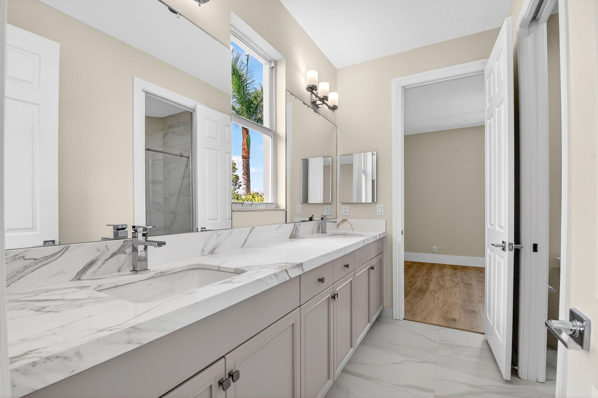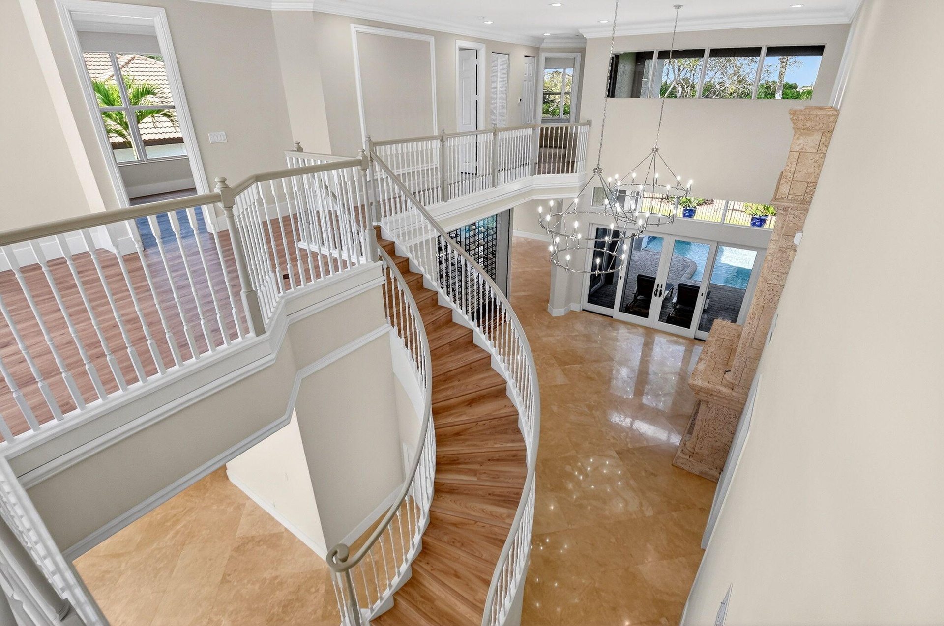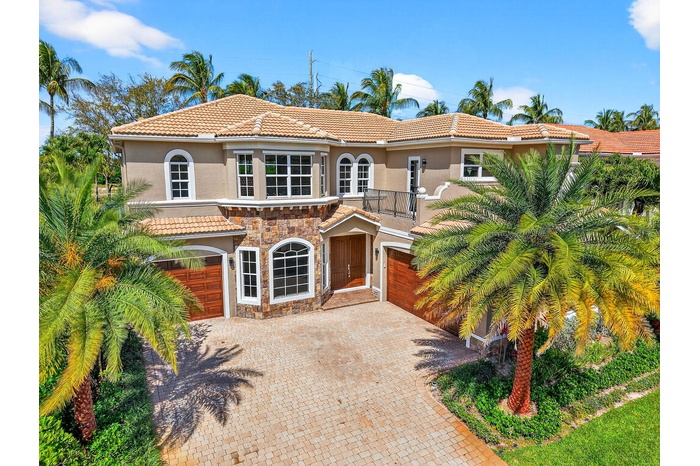 Welcome to an exceptional fully renovated estate residence offering 6 bedrooms, 4.5 bathrooms, approximately 4,223 square feet of living space, and a 3-car garage, all set on an oversized estate lot in one of Boynton Beach's most desirable communities. This home has been thoughtfully and extensively renovated, delivering timeless elegance, modern sophistication, and outstanding value. Step outside to your private resort-style retreat, featuring a heated pool and spa, expansive patio, covered gazebo, lush tropical landscaping, and a fully fenced yard, creating an ideal setting for both grand entertaining and everyday relaxation. At the heart of the home is the designer chef's kitchen, showcasing a brand-new 2026 GE Profile stainless steel appliance package (See More) At the heart of the home is the designer chef's kitchen, showcasing a brand-new 2026 GE Profile stainless steel appliance package (all under warranty), including a refrigerator, double oven, microwave, dishwasher, and 36-inch flat induction cooktop. Quartz countertops with a full-height backsplash, dramatic waterfall-edge center island, and exceptional storage make this space as functional as it is stunning. A statement 96-bottle glass-enclosed wine display, paired with a 46-bottle wine cooler with humidity control and dedicated refrigerator, elevates the kitchen to true entertainer's caliber. The first-floor primary suite serves as a serene private sanctuary, offering two spacious walk-in closets and a spa-inspired bath with porcelain flooring, quartz vanities, a freestanding soaking tub, glass-enclosed walk-in shower, and a separate water closet with bidet. Throughout the home, refined finishes include brand-new interior and exterior paint, new flooring, 7-inch baseboards, and designer light fixture upgrades with LED recessed lighting in the main living areas. Architectural details impress with a grand formal entry and soaring 20+ foot ceilings, an elegant circular staircase, decorative fireplace, marble flooring on the main level, and luxury wood-look plank flooring throughout the upper level. Completing the interior is a well-appointed laundry room featuring butcher block countertops, shaker-style cabinetry, and a new Samsung washer and dryer (2026). Additional features include: • Second-floor balcony • Impact windows on the second floor • Split 3-car garage • Lennox (2019) and Carrier (2018) A/C systems - under warranty This is a rare opportunity to own a fully renovated estate of this size and caliber for a fraction of the cost of new construction—a truly turnkey luxury offering.