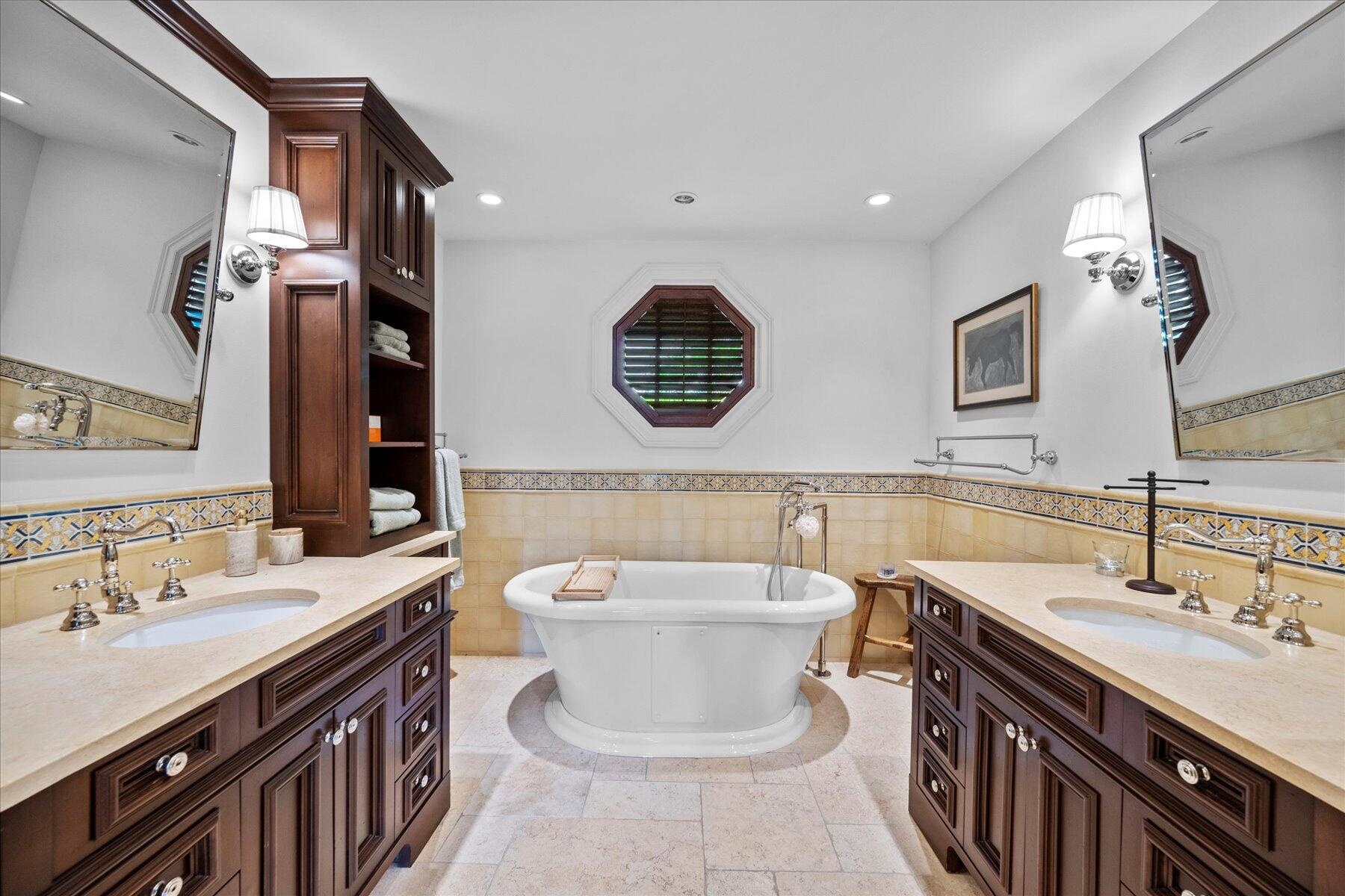 Enter through the secret garden of this sophisticated courtyard bungalow with private heated pool and stunning backyard water views. Marble flooring, vaulted wood-beamed ceilings and hardwood doors throughout. High-end designer finishes make up the dreamy Italian-style kitchen perfect for the most discerning foodies. Natural light brightens every corner of the open space of this immaculately-kept hideaway, which comes complete with impact French doors and windows. Tucked into the exclusive gated enclave of Palm Beach Polo & CC, which offers a host of world-class amenities and is minutes away from WEF, Global, Dressage and International Polo Club.