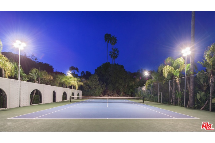 Exclusive Trousdale Estates Tennis & Basketball Court Property! A rare opportunity to lease a full flat acre in the exclusive Trousdale Estates. This fully furnished, contemporary estate offers the ultimate blend of luxury, privacy, and recreation perfect for those seeking both comfort and an active lifestyle. Set behind gates on meticulously landscaped grounds, the home features its own private tennis court and basketball court ---an exceptional amenity rarely found in this prestigious neighborhood. The expansive 2,000 sq. ft. Great Room showcases soaring ceilings and floor-to-ceiling Fleetwood sliding doors that open completely to an entertainer's dream yard. Outside, enjoy a serene resort-like setting with an infinity-edge pool, spa, outdoor fireplace, and elegant dining area, perfect for alfresco gatherings. The spacious primary suite opens directly to the pool, creating a seamless indoor-outdoor flow, and includes dual walk-in closets along with two luxurious spa-style bathrooms.A sleek designer kitchen is fully equipped with top-tier appliances and finishes, ideal for both everyday living and entertaining. The home also features a 3-car attached garage, a secure gated entrance, and a massive motor court with parking for 15 to 20 vehicles. Located just north of Sunset Boulevard, this private estate offers a peaceful retreat moments from the heart of Beverly Hills and the Sunset Strip. Whether relaxing by the pool, playing tennis, shooting hoops, or entertaining in style, this one-of-a-kind lease offers an unparalleled lifestyle in one of Los Angeles' most sought-after neighborhoods.