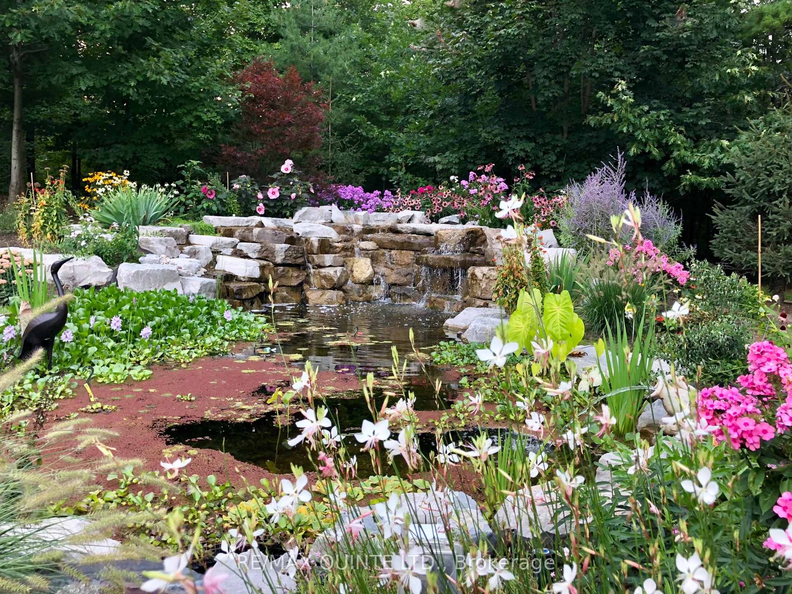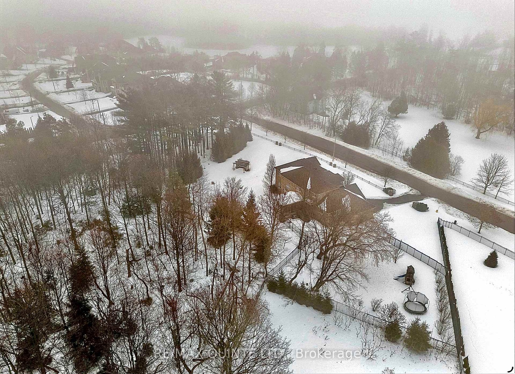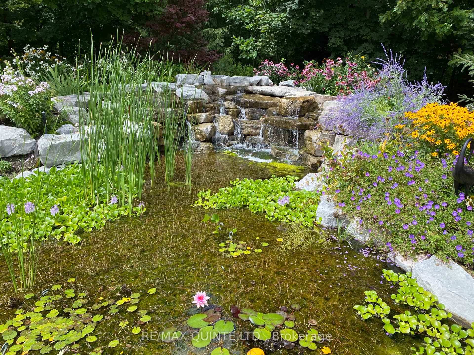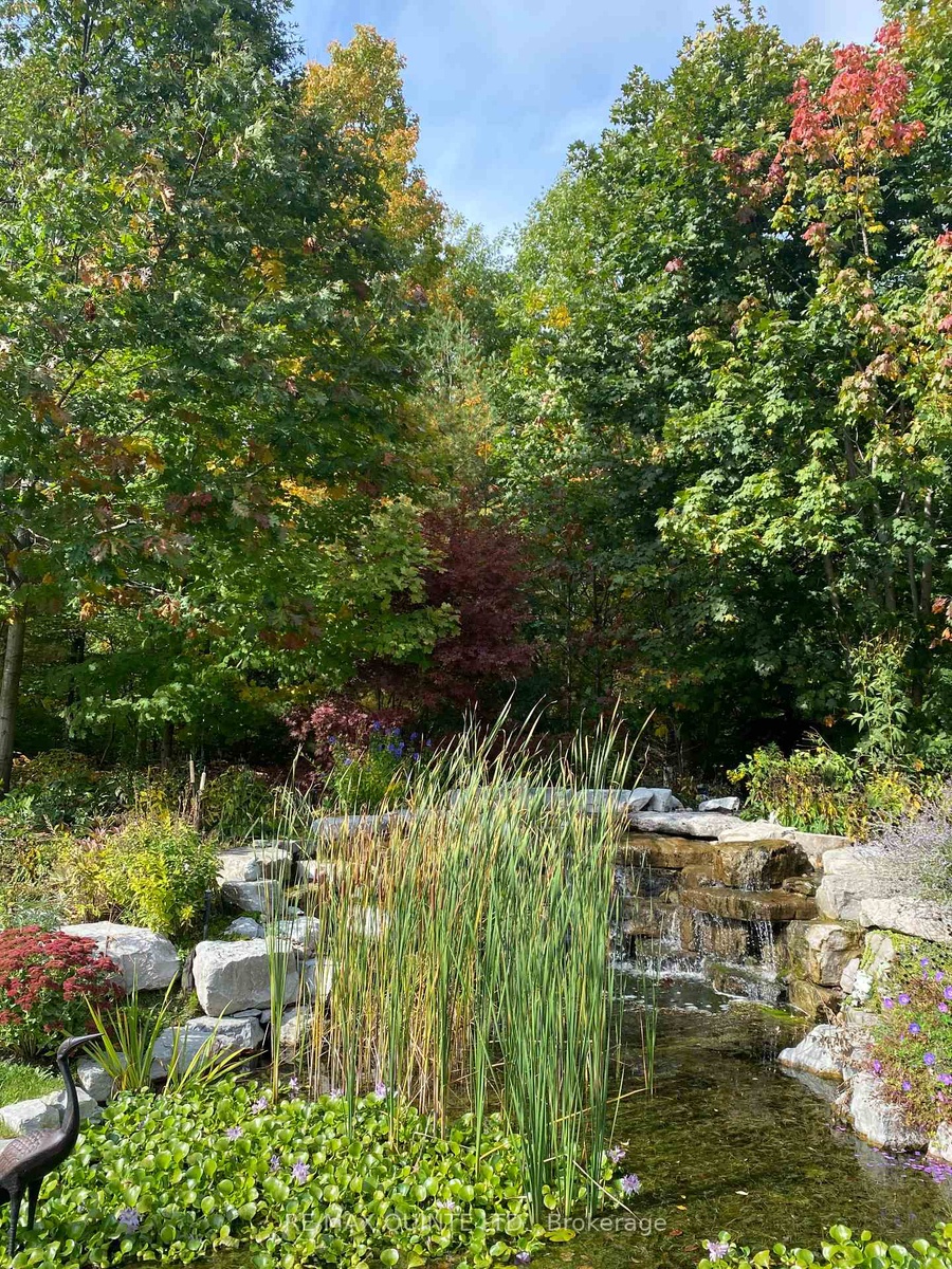 Nestled within the prestigious Ballantrae Woods community, this stunning 3,340 sq. ft. custom-built stone home with 4 bedrooms and 5 bathrooms, commands 1.356 private acres of breathtaking park-like grounds. Two beautifully landscaped ponds surrounded by exceptional perennial gardens, mature woodland, and extensive stone walkways and patios; all wrapped in elegant wrought iron fencing, create an outdoor sanctuary that must be seen to be believed. Meticulously maintained, the landscaping alone sets this property apart. Separate fenced areas for kids and pets, plus a well-built play structure, make this backyard as functional as it is breathtaking.Inside, you are welcomed with an elegant foyer, boasting 18' ceilings, marble floors and spectacular chandelier. A gracious upper gallery hall flows between the sleeping quarters, flanked by wrought iron railings that frame sweeping views of the soaring 18-foot ceilings in the foyer and family room below; a dramatic architectural statement that commands attention from the moment you enter the home and create an impressive sense of grandeur. The chef's kitchen features granite countertops, a centre island, chef's desk, pantry cupboards, and limestone floors, flowing seamlessly into a large 3-season sunroom with cathedral ceiling and two walkouts to the stone patios. A coffered ceiling in the grand dining room, main floor office, laundry, and direct access to the 3-car garage complete the main level.The primary bedroom offers a walk-in closet and 5-piece ensuite with jetted soaker tub, glass shower, and marble floors. The finished basement adds a 4-piece bath and an oak and marble fireplace.Key updates and extras include: a brand new roof, Generac whole-home generator, sprinkler system, central air, central vac, owned hot water tank, alarm system, paved driveway, large deck, and play structure. Great country feel - in town. This is Whitchurch-Stouffville living at its finest. (Some photos with vitually enhanced lighting.)