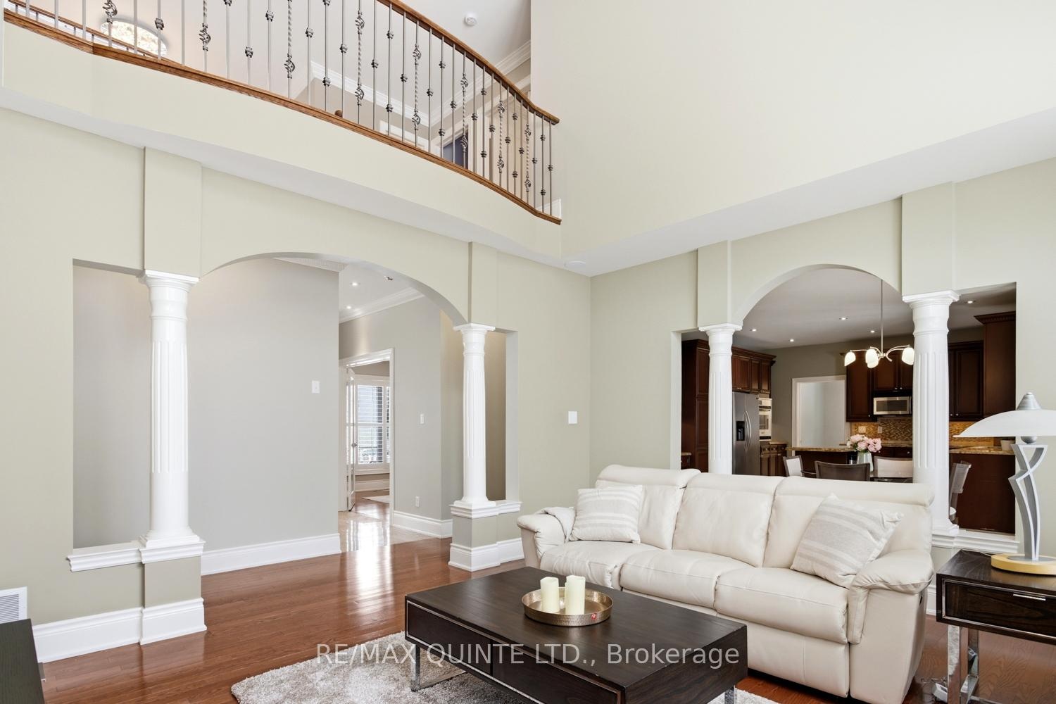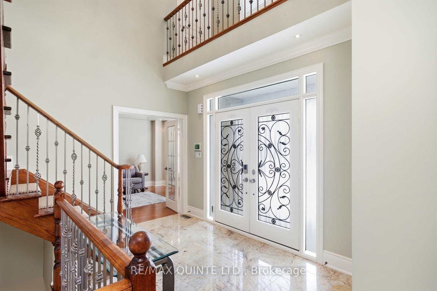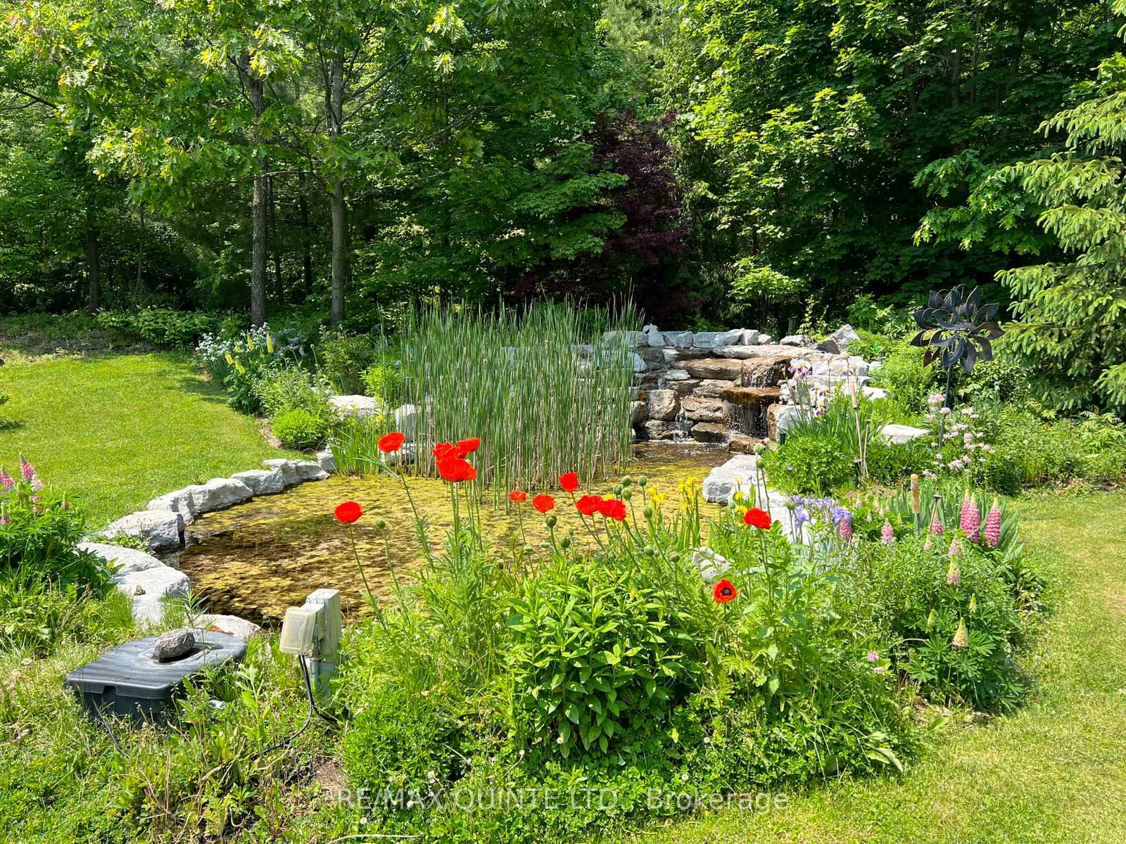 Nestled within the prestigious Ballantrae Woods community, this stunning 3,340 sq. ft. custom-built stone home with 4 bedrooms and 5 bathrooms, commands 1.356 private acres of breathtaking park-like grounds. Two beautifully landscaped ponds surrounded by exceptional perennial gardens, mature woodland, and extensive stone walkways and patios; all wrapped in elegant wrought iron fencing, create an outdoor sanctuary that must be seen to be believed. Meticulously maintained, the landscaping alone sets this property apart. Separate fenced areas for kids and pets, plus a well-built play structure, make this backyard as functional as it is breathtaking.Inside, you are welcomed with an elegant foyer, boasting 18' ceilings, marble floors and spectacular chandelier. A gracious upper gallery hall flows between the sleeping quarters, flanked by wrought iron railings that frame sweeping views of the soaring 18-foot ceilings in the foyer and family room below; a dramatic architectural statement that commands attention from the moment you enter the home and create an impressive sense of grandeur. The chef's kitchen features granite countertops, a centre island, chef's desk, pantry cupboards, and limestone floors, flowing seamlessly into a large 3-season sunroom with cathedral ceiling and two walkouts to the stone patios. A coffered ceiling in the grand dining room, main floor office, laundry, and direct access to the 3-car garage complete the main level.The primary bedroom offers a walk-in closet and 5-piece ensuite with jetted soaker tub, glass shower, and marble floors. The finished basement adds a 4-piece bath and an oak and marble fireplace.Key updates and extras include: a brand new roof, Generac whole-home generator, sprinkler system, central air, central vac, owned hot water tank, alarm system, paved driveway, large deck, and play structure. Great country feel - in town. This is Whitchurch-Stouffville living at its finest. (Some photos with vitually enhanced lighting.)