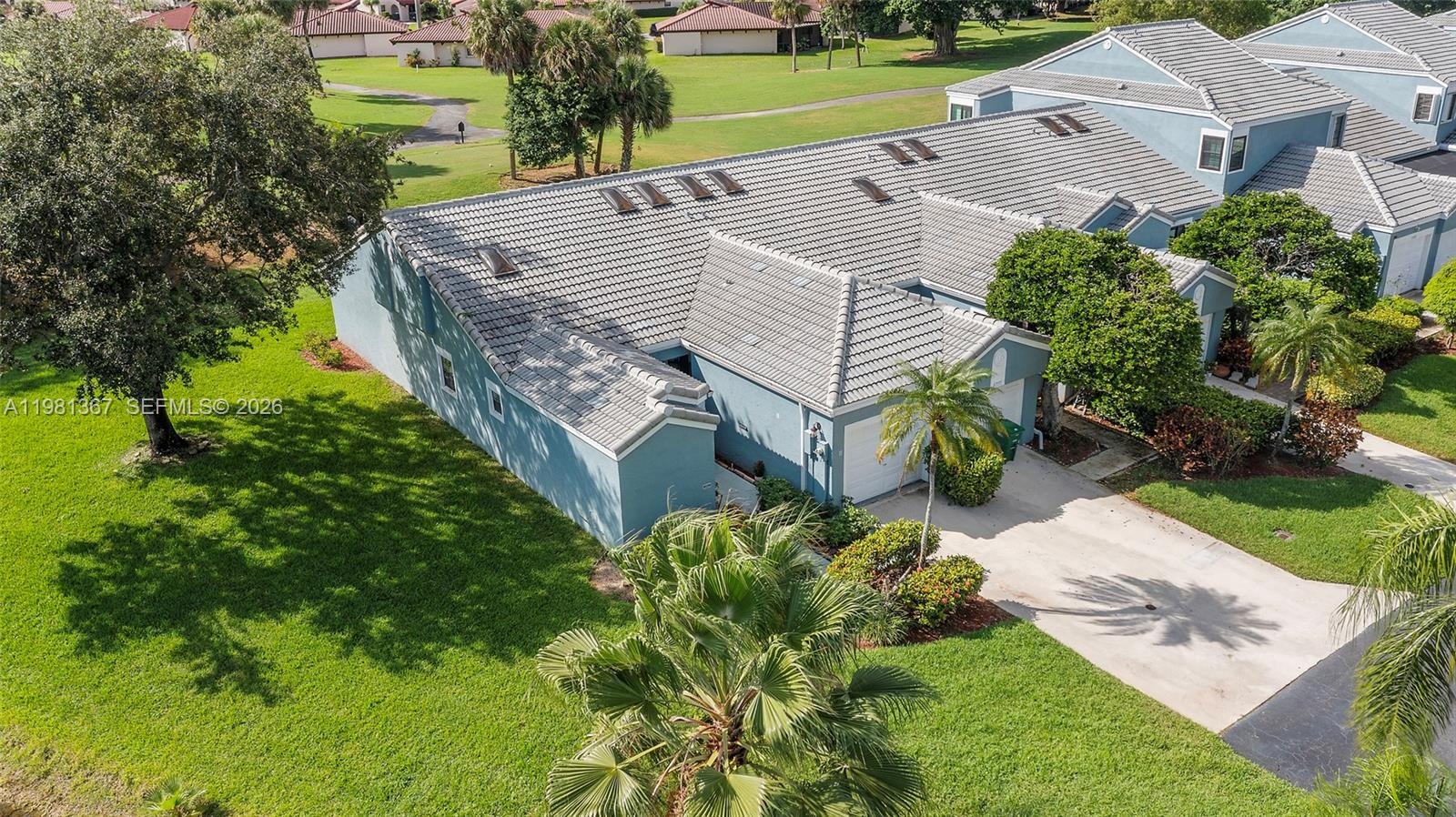 This beautiful 2-bedroom, 2-bathroom townhome features vaulted ceilings, tile flooring, and an ample open floor plan. The kitchen features ample cabinetry, a pantry, and modern appliances. The owner's suite features a dual sink, a tub, and a separate shower. The home has easy access to the community pool and golf course. Enjoy a serene waterfront from the screened porch. New roof. This home is perfect for a starter home or if you are an empty nester looking to downsize