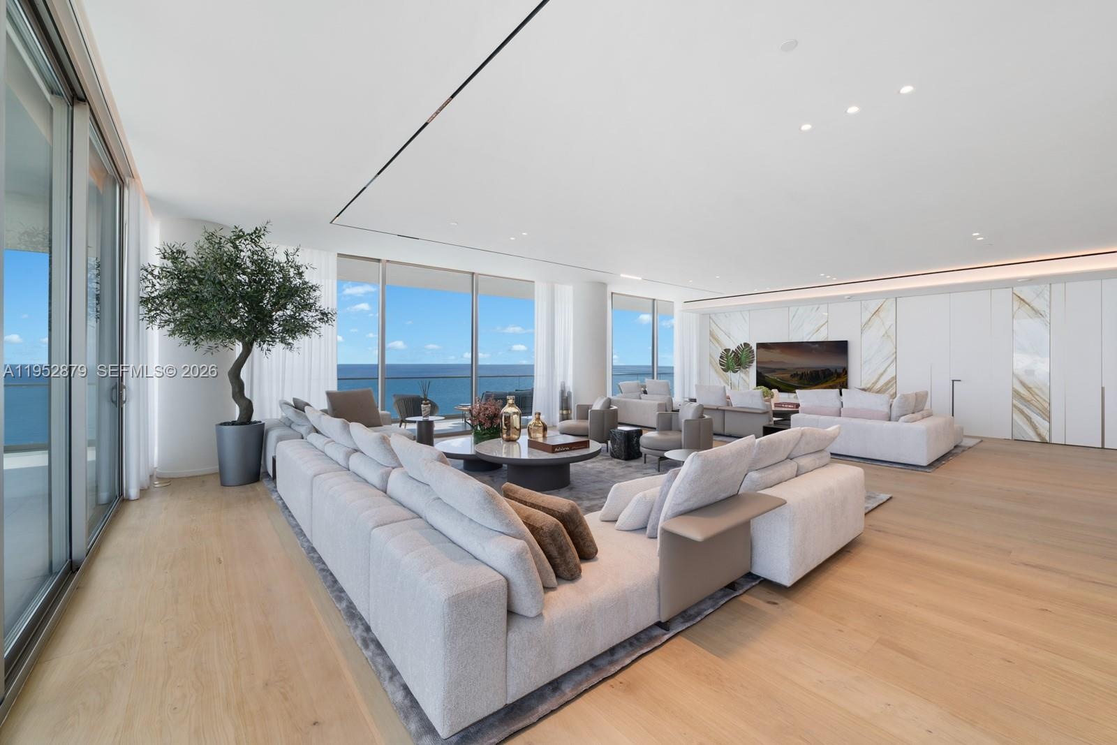 Perched atop Oceana Bal Harbour, this fully renovated and never-lived-in penthouse offers unobstructed panoramic views of the Atlantic Ocean and Biscayne Bay. Spanning approximately 8,000 SF of interiors and 2,300 SF of wraparound terraces, the residence features 4 bedrooms plus staff quarters, 5 full baths, 2 powder rooms, an office, and children’s study within a unique, expansive layout. The grand primary suite includes oversized his and her dual dressing rooms and a spa-inspired bath. Finishes include custom PEDINI Italy millwork, Opustone natural stone, and curated furnishings by Minotti and other premier Italian brands, complemented by state-of-the-art smart home technology. A turnkey sky residence in one of Bal Harbour’s most prestigious oceanfront towers.