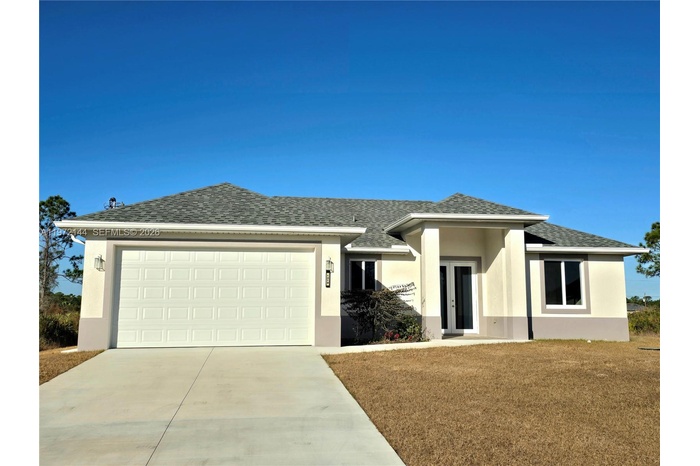 This beautiful new construction 3-bedroom, 2-bath home offers a spacious and airy interior paired with the freedom of a generous half-acre lot. Designed with high ceilings and an open layout, the home feels bright and welcoming from the moment you step inside. The spacious kitchen provides plenty of room for cooking, gathering, and entertaining. Enjoy the tiled open lanai, perfect for relaxing outdoors or hosting guests. With ample space to add a pool or create your ideal outdoor oasis, the possibilities are endless. Centrally located and just minutes from grocery stores, shopping, and everyday conveniences, this home combines comfort, space, and location in one exceptional opportunity.