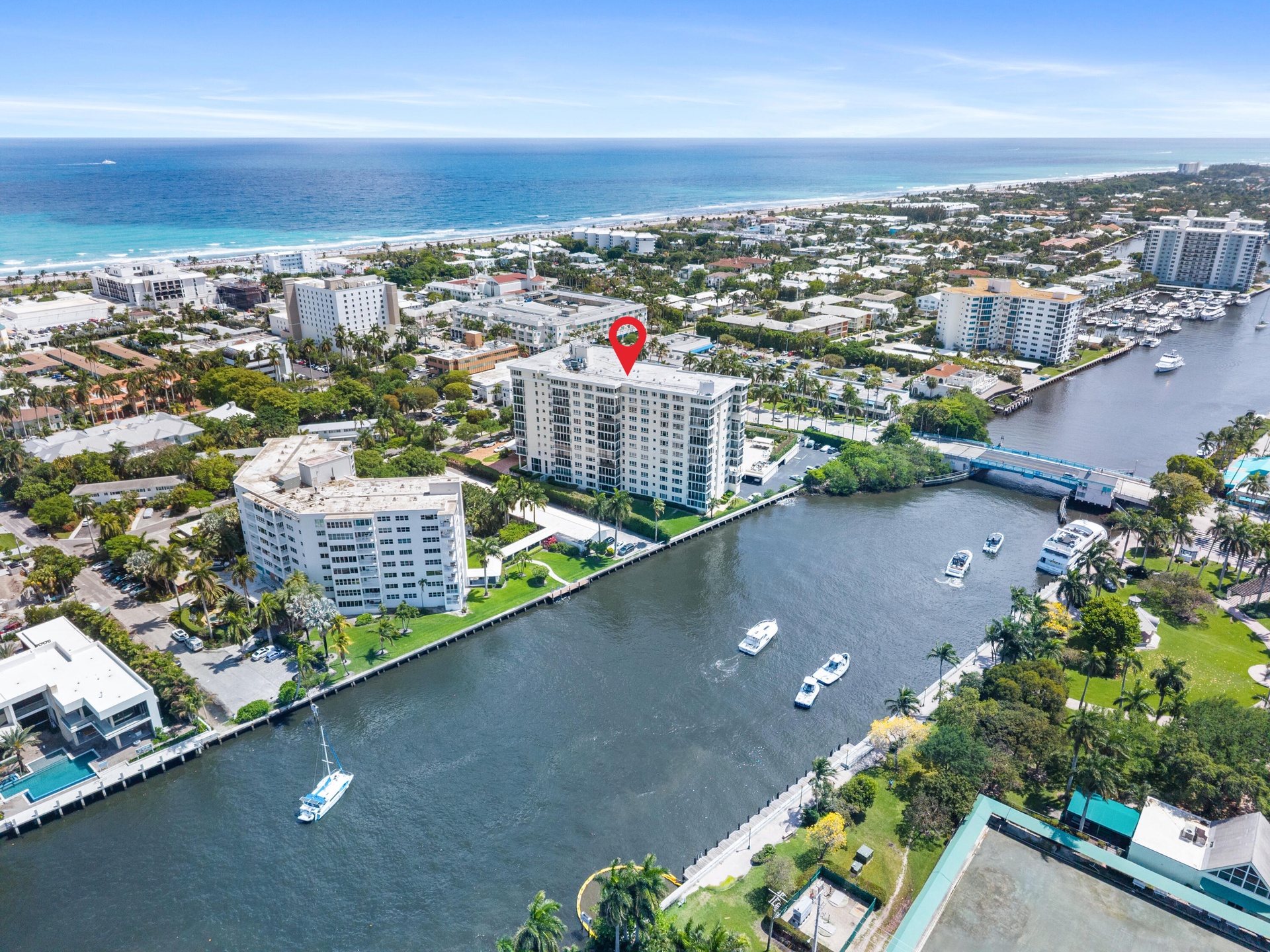 Welcome to 50 East Road Unit 12A, Delray Beach! For the first time in decades, unit 12-A in Barr Terrace is available! This end unit 3 bedroom and 3 bathroom penthouse condo has views you can only dream of. Located directly on the intracoastal and famed Atlantic Avenue, this 2,083 sq ft penthouse has sweeping views of the glistening Atlantic Ocean, long views of the intracoastal and dramatic views of the vibrant Downton Delray Beach. Enjoy cool seasonal breezes from the balcony by pocketing the impact sliding windows granting panoramic water and city views. Barr Terrace has undergone all requirements imposed by the state for condominium buildings and is exceptionally well managed with a front desk, property managers and security located within the newly designed lobby. Originally a 3 bedroom layout, you can easily reimagine the den area to be a designated 3rd bedroom with an already present en-suite. With tall ceilings throughout the unit, your living area and dining space flow directly into the penthouse's kitchen with an abundance of natural light and stunning views. The primary bedroom along with the 2nd guest bedroom are expansive spaces, a rarity for condominiums on the barrier island. A unique attribute to this unit is its private utility closet where you will find a washer and dryer and newer HVAC unit, common laundry is also located on each floor. Barr Terrace issues each condo unit a designated temperature controlled storage locker perfect for housing beach chairs and umbrellas. With the recent renovation to Barr Terrace, the pool area, common room, fitness facility and lobby were all exquisitely renovated. The pool is positioned directly along the intracoastal providing intimate views of the passing boats and waterfront activity. The gym area is equipped with free weights, cardio equipment and plenty of machines, a major differentiator from neighboring condo buildings. Barr Terrace has passed all state imposed regulations for condominiums and is exceptionally well managed and funded. Condo docs available upon request. Barr Terrace does not permit leasing nor do they allow pets other than service animals or emotional support animals. One parking space conveys with the sale of this unit.