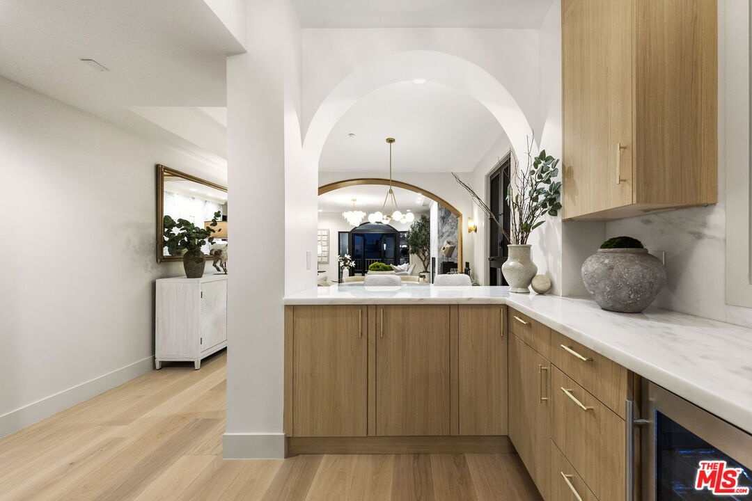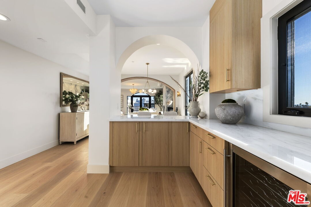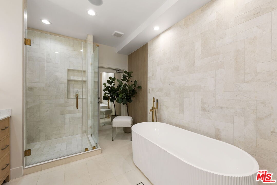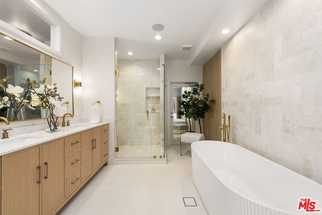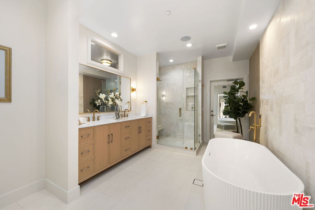 This prime Brentwood residence is the ultimate in luxury condominium living. The south/west exposure allows natural light to flood in throughout the day. Halston House is a bespoke collection of eight condominium residences right in the heart of Brentwood. All of the residences comprise three bedrooms, a family room and 2.5 bathrooms. Elegantly appointed living spaces include gracious living rooms with wide-plank oak wood flooring, fireplaces, large windows and French doors that allow natural light to pour in. The family rooms offer built-in cabinetry, creating an ideal setting for a media room or office. Gourmet kitchens feature Italian Dolomite countertops with full-height backsplash, custom oak cabinetry, stainless steel appliances, glass-front refrigerators and wine refrigerators. The serene primary bedrooms are complemented by spa-like bathrooms with hand laid herringbone limestone, dual sinks, a separate soaking tub, a walk-in shower, and expansive custom-designed walk-in closets. Additional features include built-in speakers, dedicated power for EV chargers, private package delivery lockers in the lobby and additional large private storage in a locked storage room. Halston House was thoughtfully designed with elegance and privacy as a guiding principle.