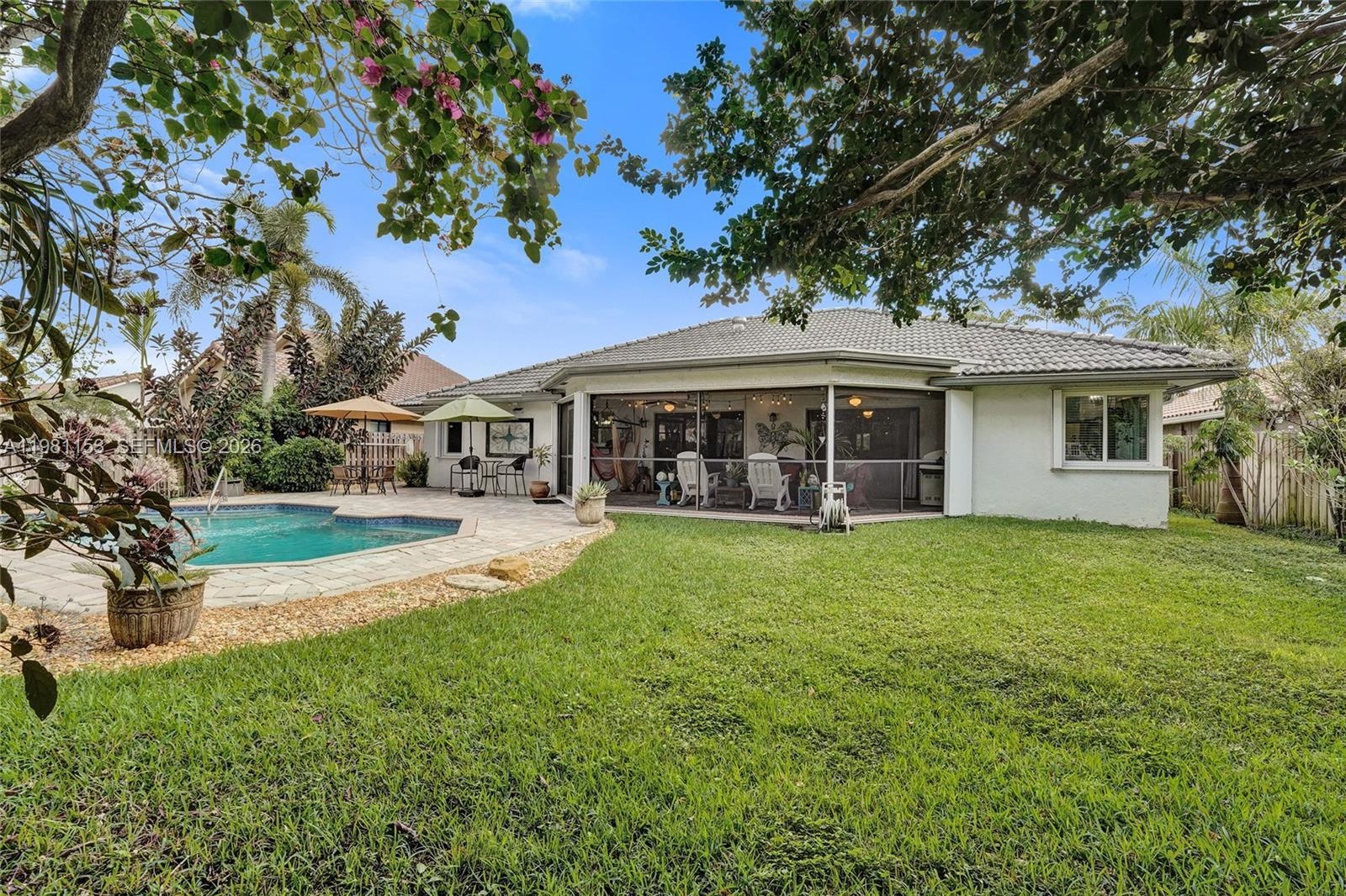 Located in the quiet 132-home neighborhood of Oak Knoll Estates, within desirable Pine Island Ridge, this well-maintained 3 bedroom/2 bathroom home offers space, comfort, and the South Florida lifestyle buyers love. Inside, you'll find tile and laminate wood flooring throughout, a spacious living room perfect for a game room, media room, or home office, and an inviting breakfast nook for casual dining. The kitchen and bathrooms have been tastefully updated with cosmetic improvements while maintaining a warm, move-in ready feel. The backyard is built for entertaining, featuring a saltwater pool, covered patio, and ample green space—perfect for weekend gatherings, pool days, and outdoor living. Major improvements include an impact front door and garage door, double-pane windows with accordion shutters, saltwater pool with pump replaced in 2022, and a hot water heater replaced in 2025. Residents enjoy access to the private Pine Island Ridge Country Club, offering golf, tennis, pickleball, basketball, dining, and pool amenities, while being just minutes from Tree Tops Park, local shopping, dining, and top-rated schools.