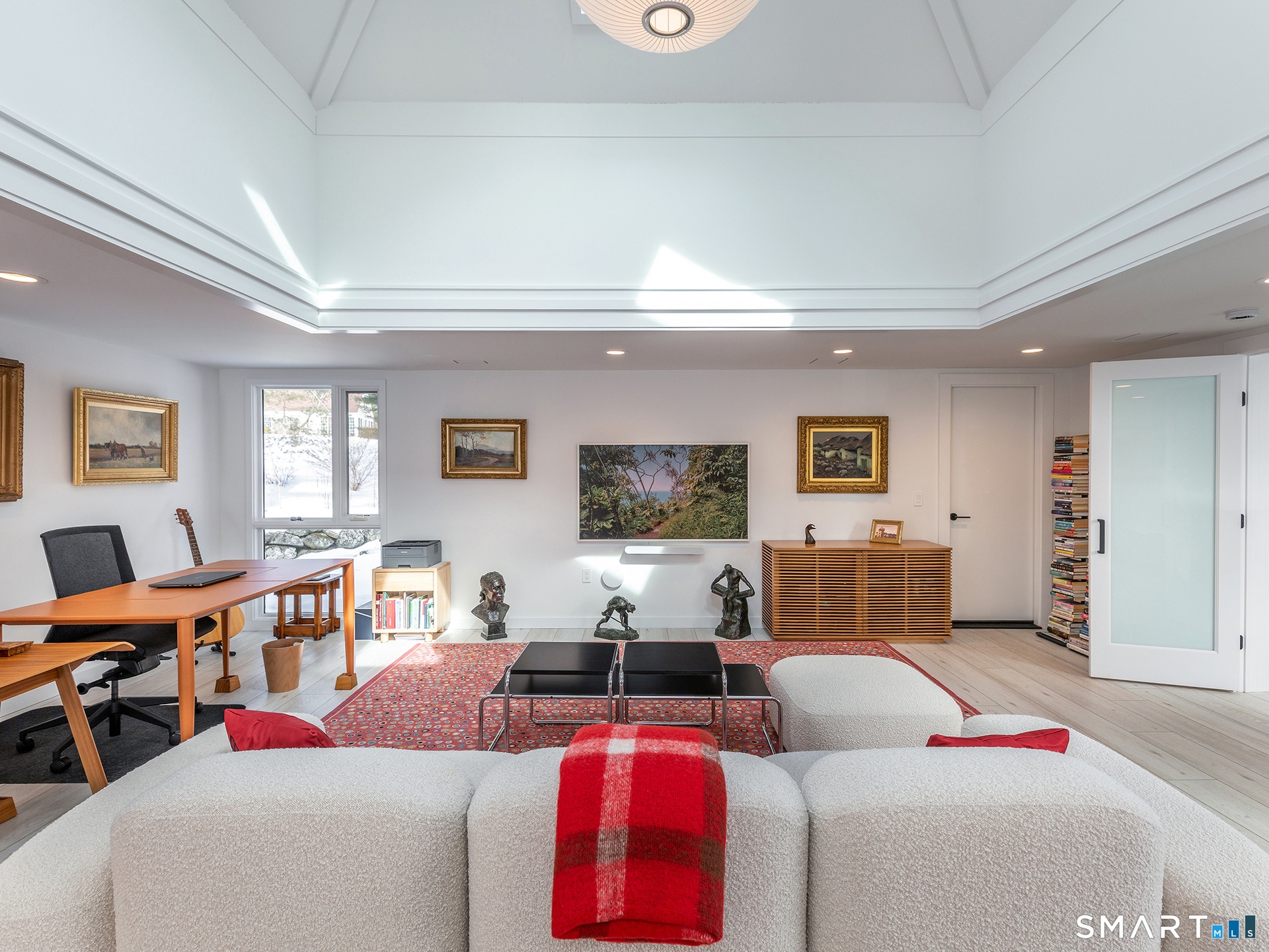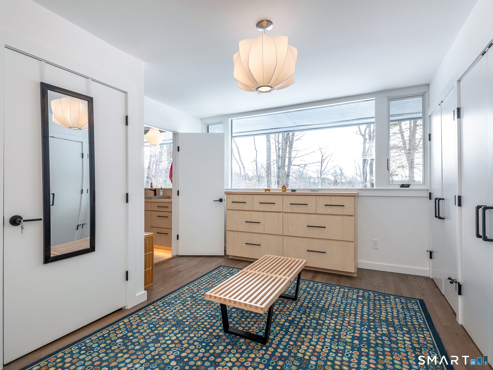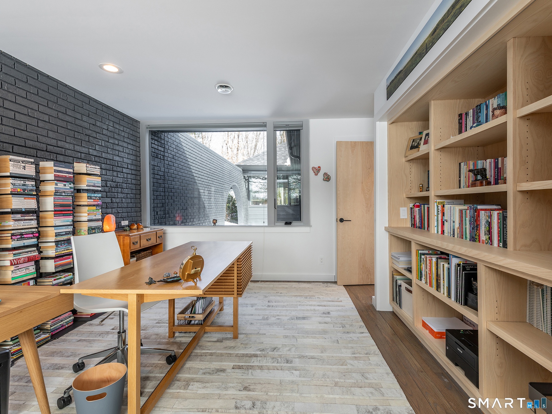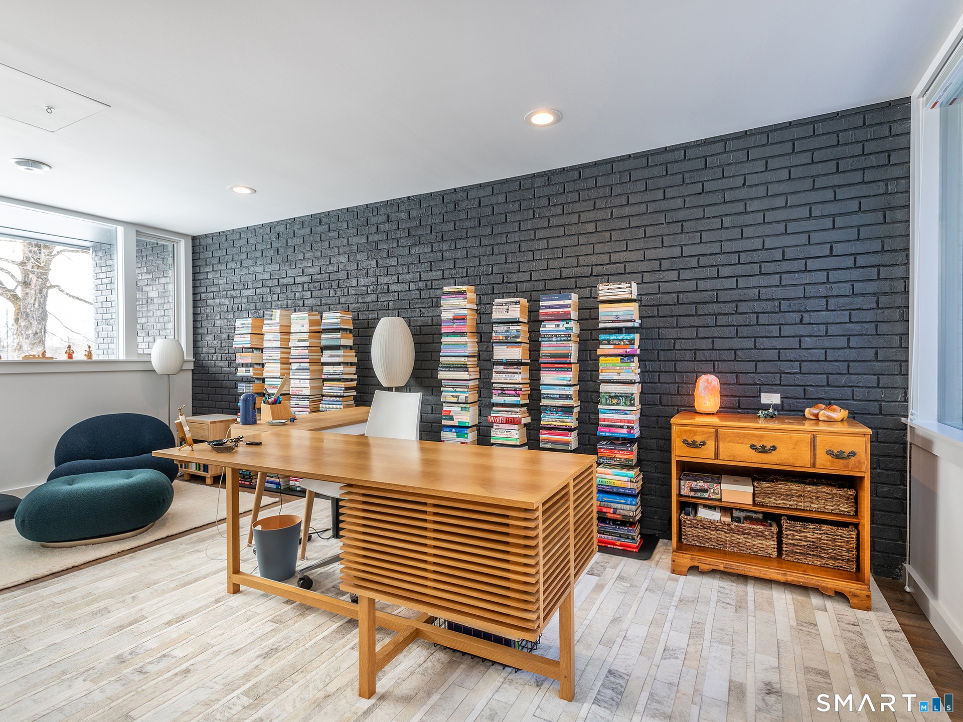 This beautifully reimagined Mid Century home sits on a picturesque stretch of the Bantam River.