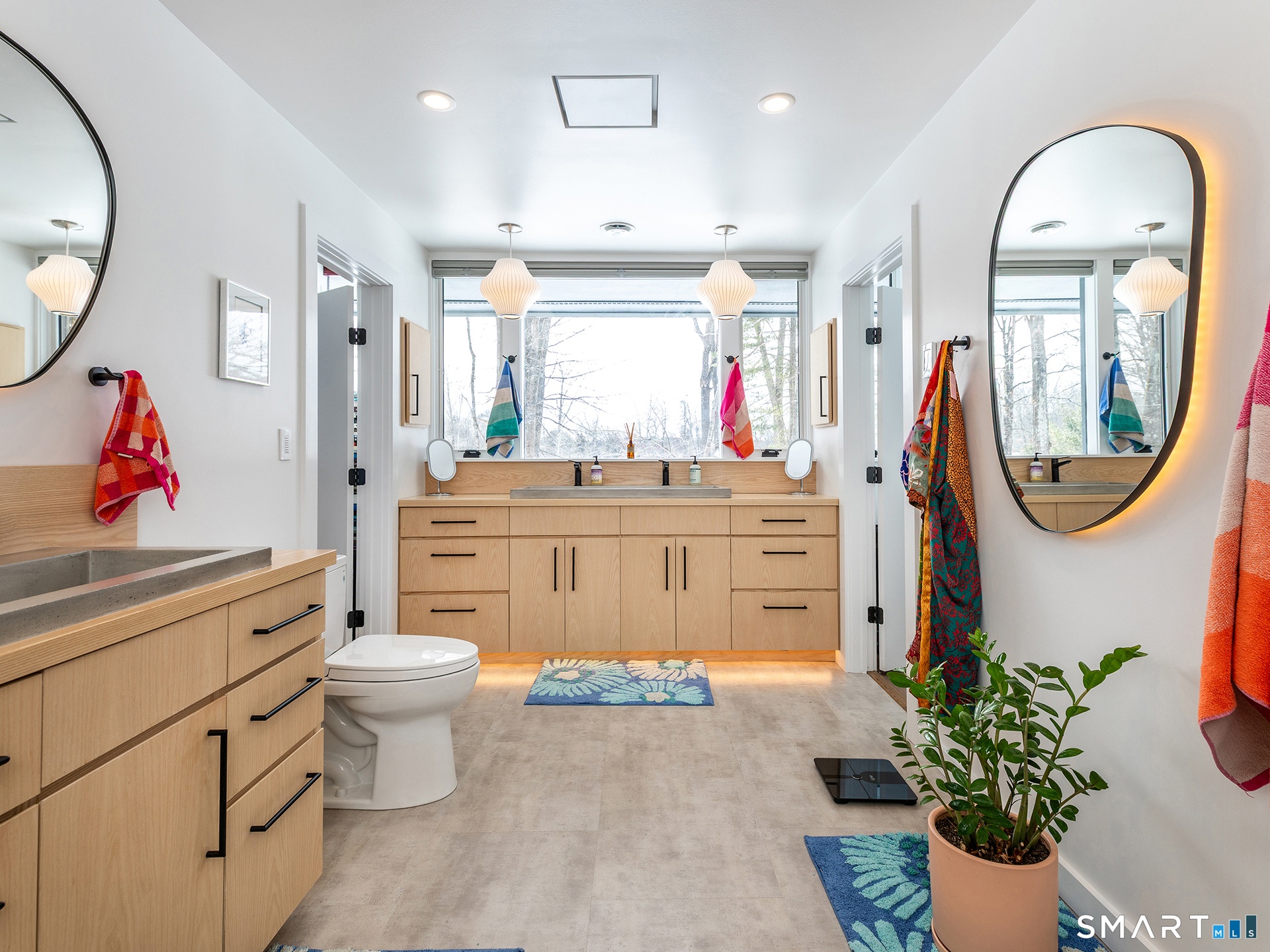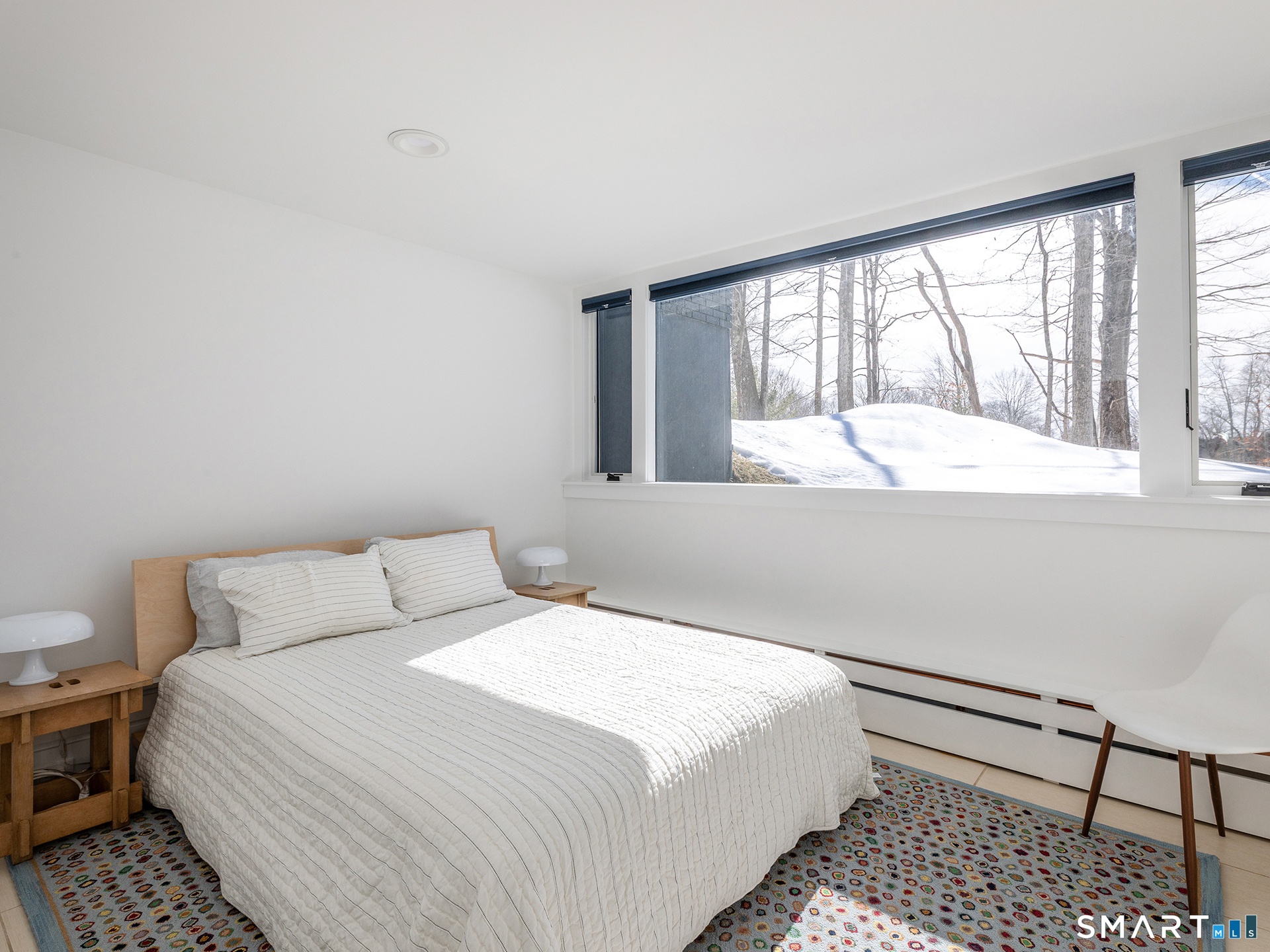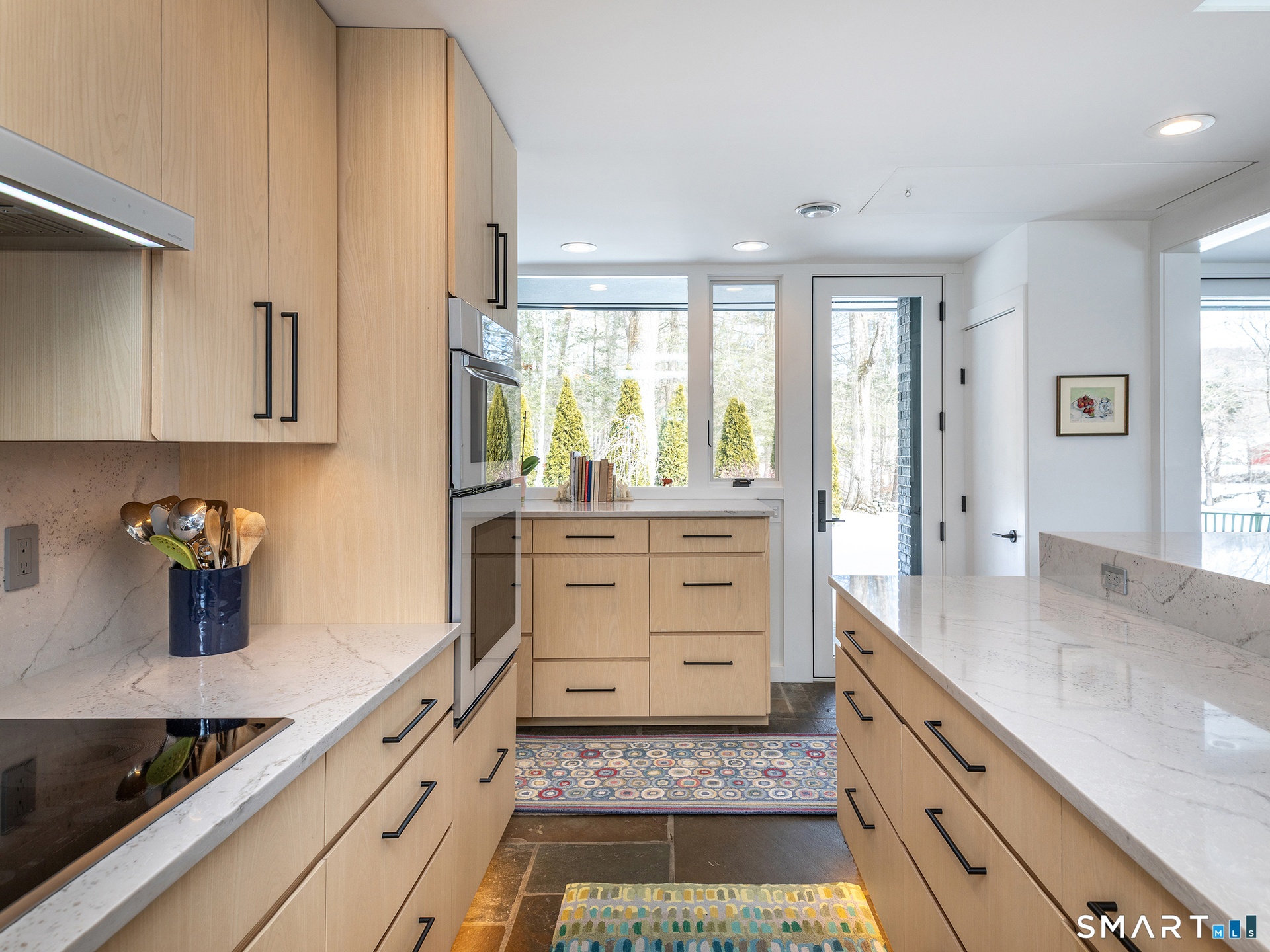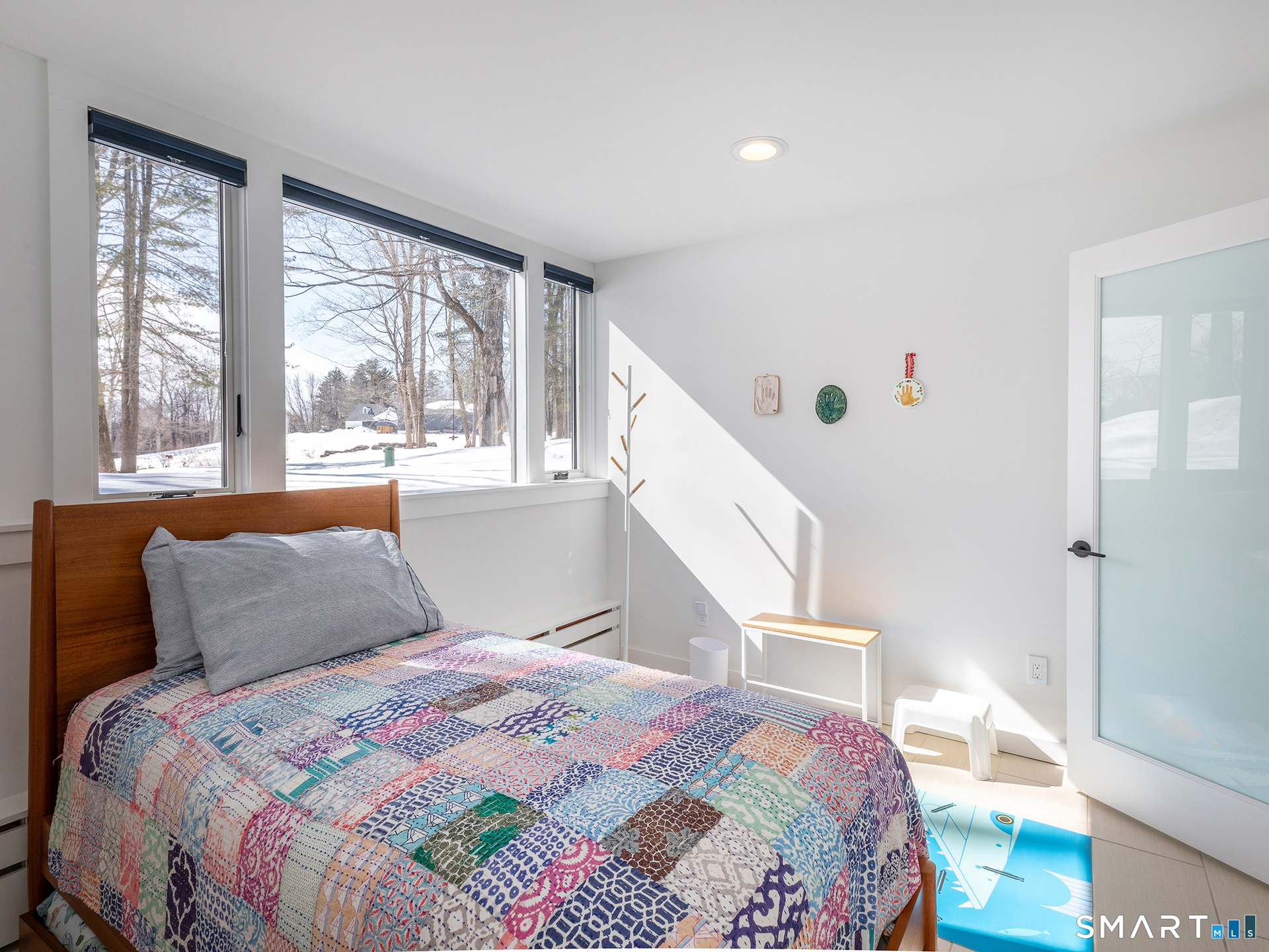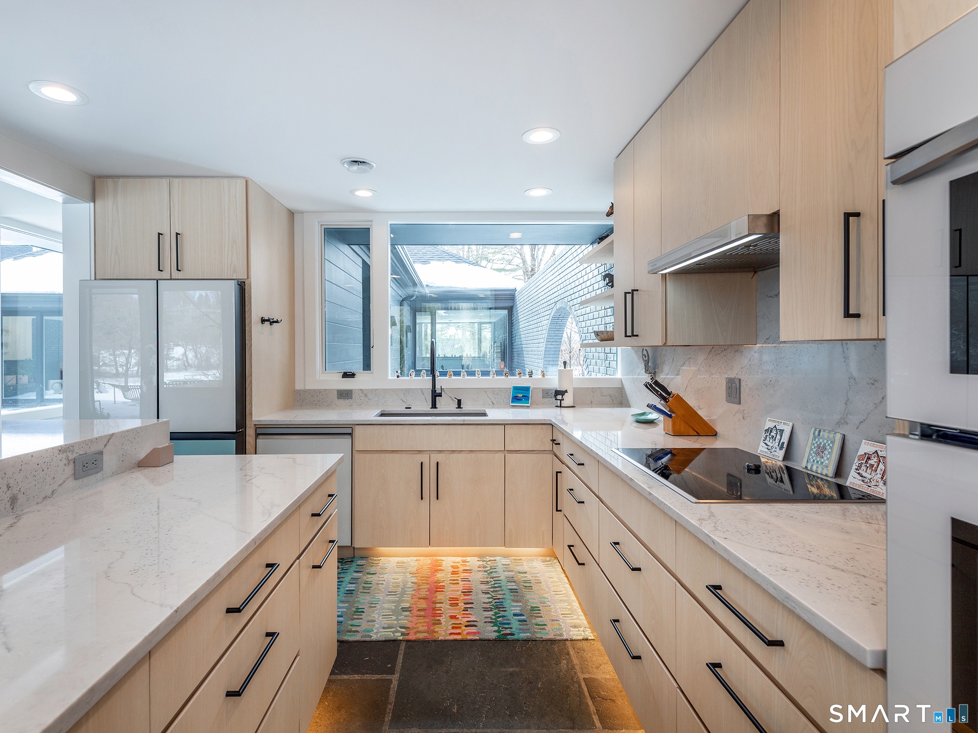 This beautifully reimagined Mid Century home sits on a picturesque stretch of the Bantam River.