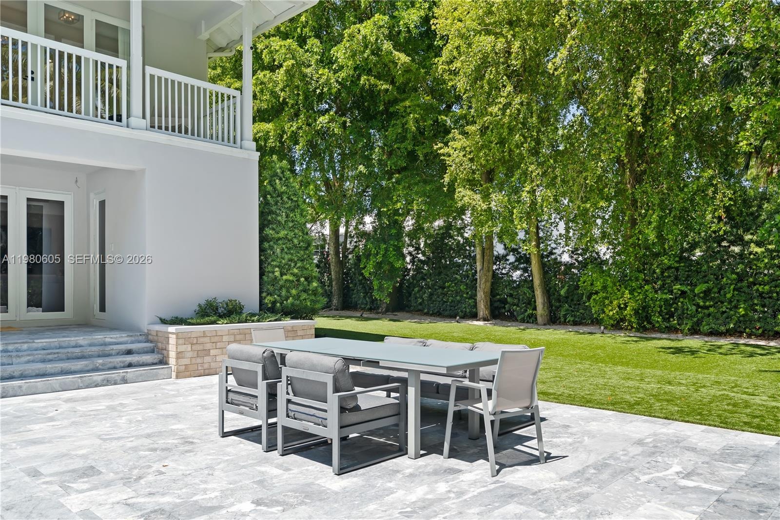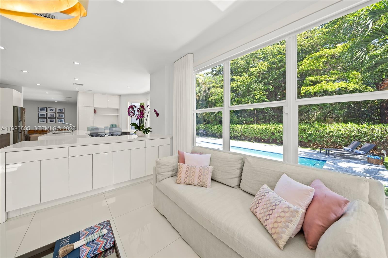 The home enjoys abundant natural light throughout, with windows in every room—including the laundry and garage—and multiple balconies that enhance the bright and airy feel of the upper level. Impact windows and doors, an updated kitchen with premium appliances including a Sub-Zero wine cooler, and elegant modern finishes complete the interiors.