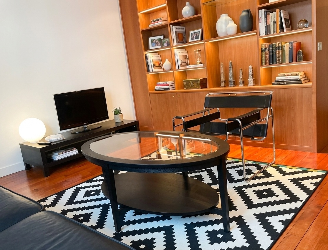 La cuisine est conçue de manière efficace avec des rangements épurés, des appareils intégrés et un agencement fonctionnel qui facilite la cuisine et les réceptions. L’espace de vie s’enchaîne naturellement depuis la cuisine, créant un lieu polyvalent pour se détendre ou recevoir des invités.