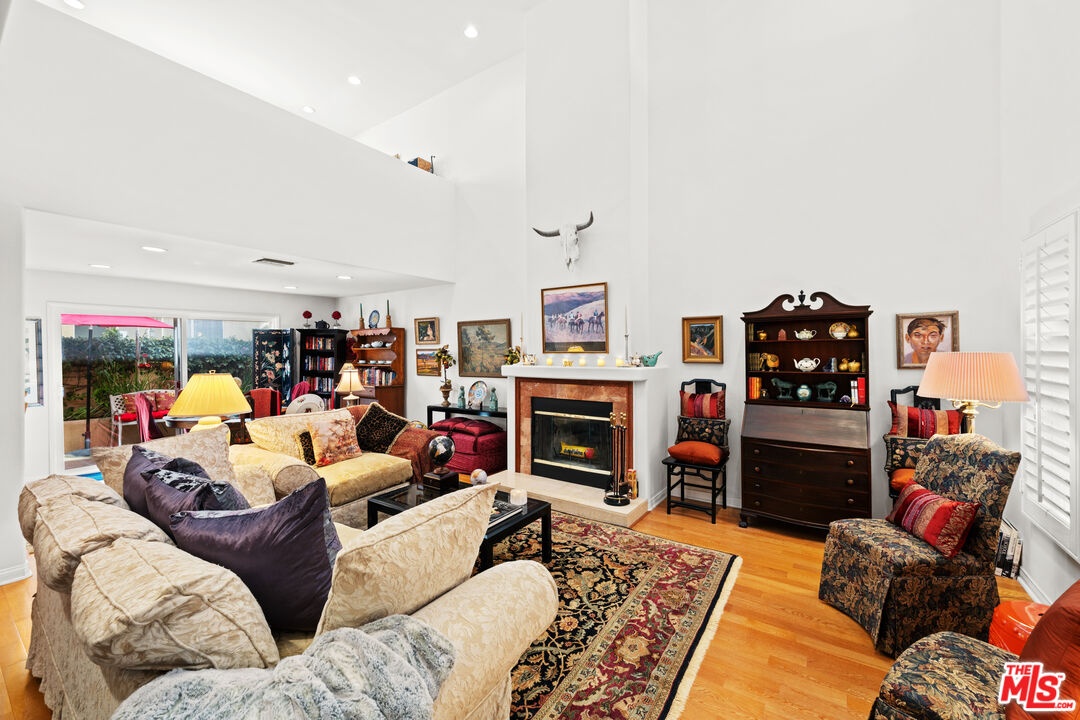 Ideally located Northern Santa Monica near the vibrant Montana Avenue retail district, the Third Street Promenade, and the Pacific Ocean, this light-filled three-level townhome blends tranquility with urban convenience. Enjoy morning coffee on your private garden patio and unwind at sunset on the exclusive rooftop deck with stunning near-360 views of the Santa Monica Mountains. This thoughtfully designed home features two spacious bedrooms one with its own balcony and mountain views plus flexible living space throughout. Highlights include a rooftop deck with panoramic views, serene ground-level patio with gas BBQ hookup, entertainment/library loft with dedicated office space, and a cozy wood-burning fireplace with gas starter. Additional features include two side-by-side parking spaces in a private garage within a gated parking area. Located in a well-maintained five-unit building, this home offers a peaceful retreat just moments from world-class dining, shopping, and the beach.