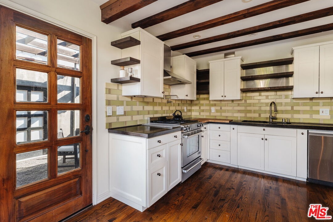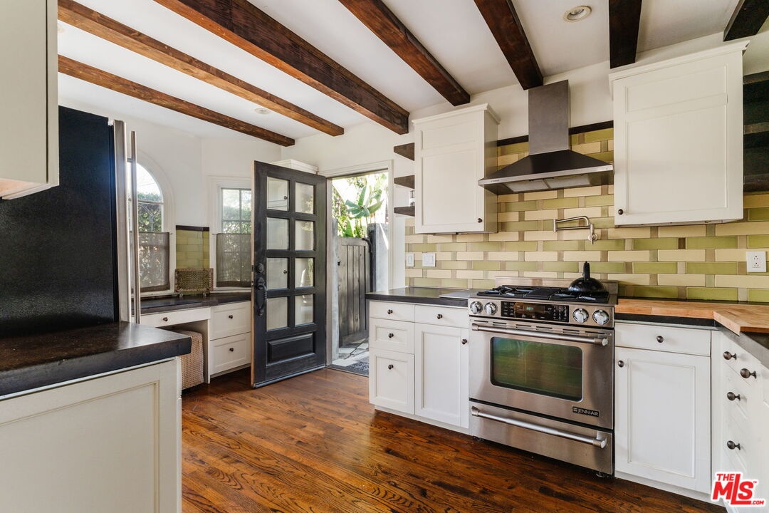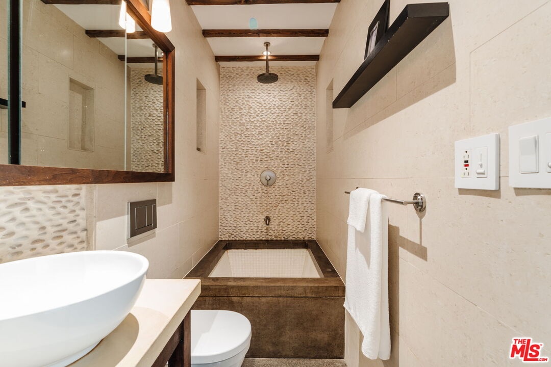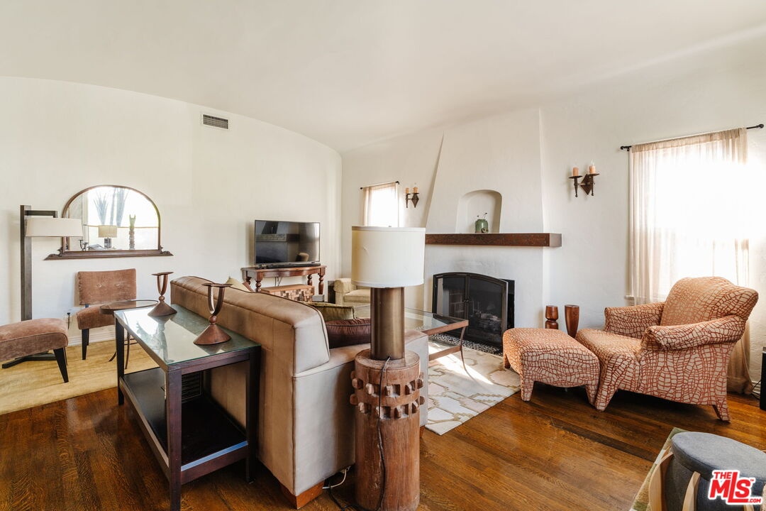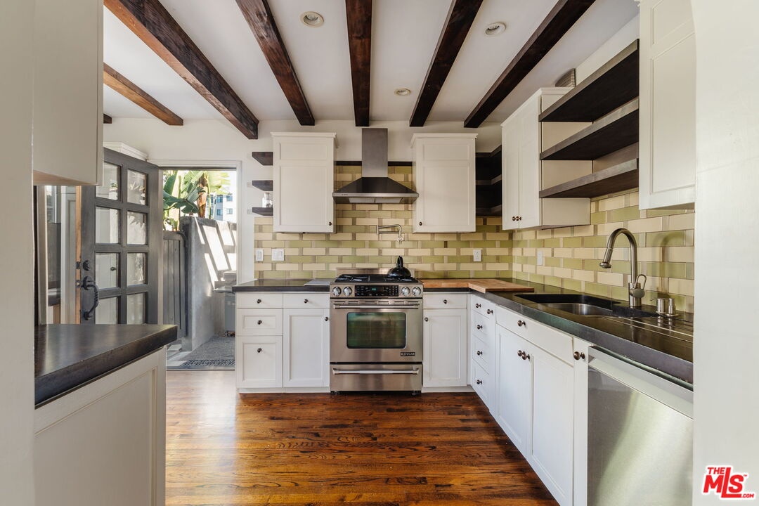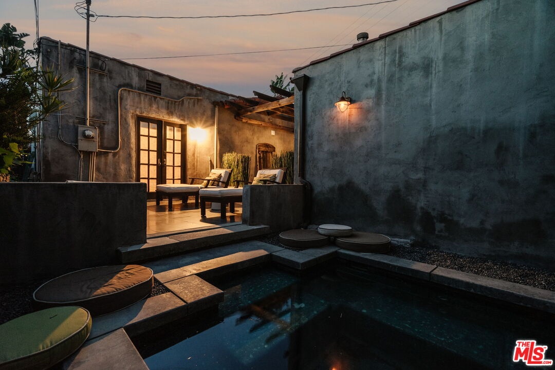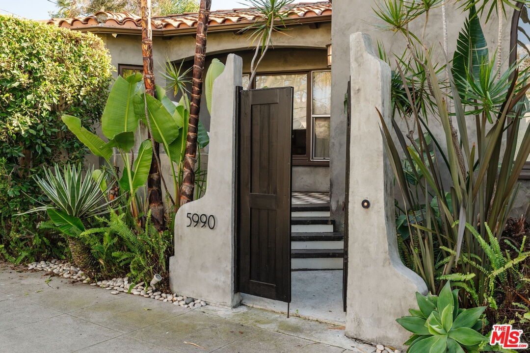 The love story will be yours from the moment you enter the gated courtyard beckoning you to stay! Prepare to be enchanted by this Incredible renovated 1930's Spanish Bungalow masterfully crafted and perfectly positioned in the heart of Faircrest Heights. Upon entering you're welcomed into the living room the heart of home with a large picture window, curved ceilings and fireplace which effortlessly transitions into the dining area, ideal for everyday living and entertaining, including pocket doors that allow it to be opened or closed off from the paneled hallway as desired. The updated kitchen feels fresh and functional with a wood-beamed ceiling, stained concrete counters, stainless steel appliances, built-in desk and patterned tile backsplash, a space where cooking feels effortless and enjoyable! Both bedrooms have their own bathrooms, which are amazing, one with the deep soaking tub, and the primary with heated floors and a curbless shower with three fixtures and rainfall. The primary bedroom has a custom walk-thru closet with ample built-in storage and shelving. The 2nd bedroom has French doors that open to the backyard. Get ready to enjoy warm nights beneath the stars, the backyard patio is an entertainer's haven with its tiled lounge area, fireplace plus an outdoor dining area and private in ground spa with waterfall. Providing a welcome respite from the hustle and bustle of city life to enjoy with family and friends. A detached garage currently with washer and dryer but offers endless possibilities as a home office, gym, studio, or future ADU. Nestled in the heart of the city and just blocks to cafes, shops and restaurants - this home is minutes from anywhere you wish to be. With its proximity to so much, you're bound to embrace this as your new home, where every day feels like a new adventure! A rare offering that blends character, privacy and creative lifestyle! Welcome Home!