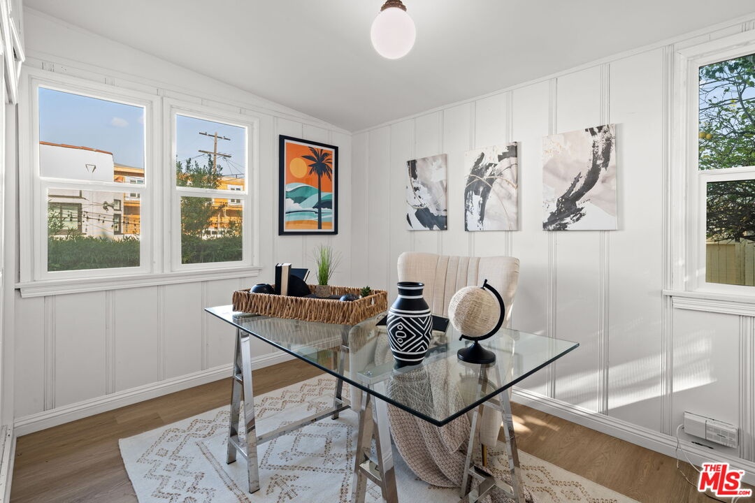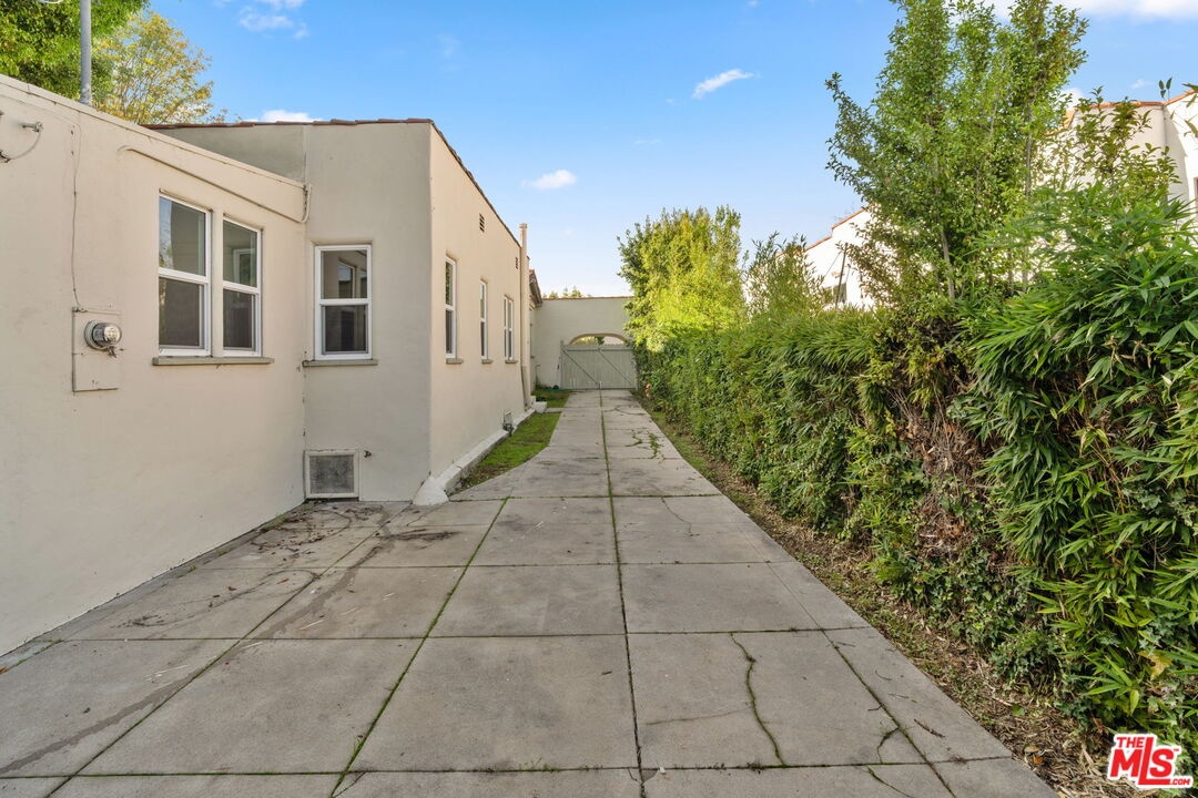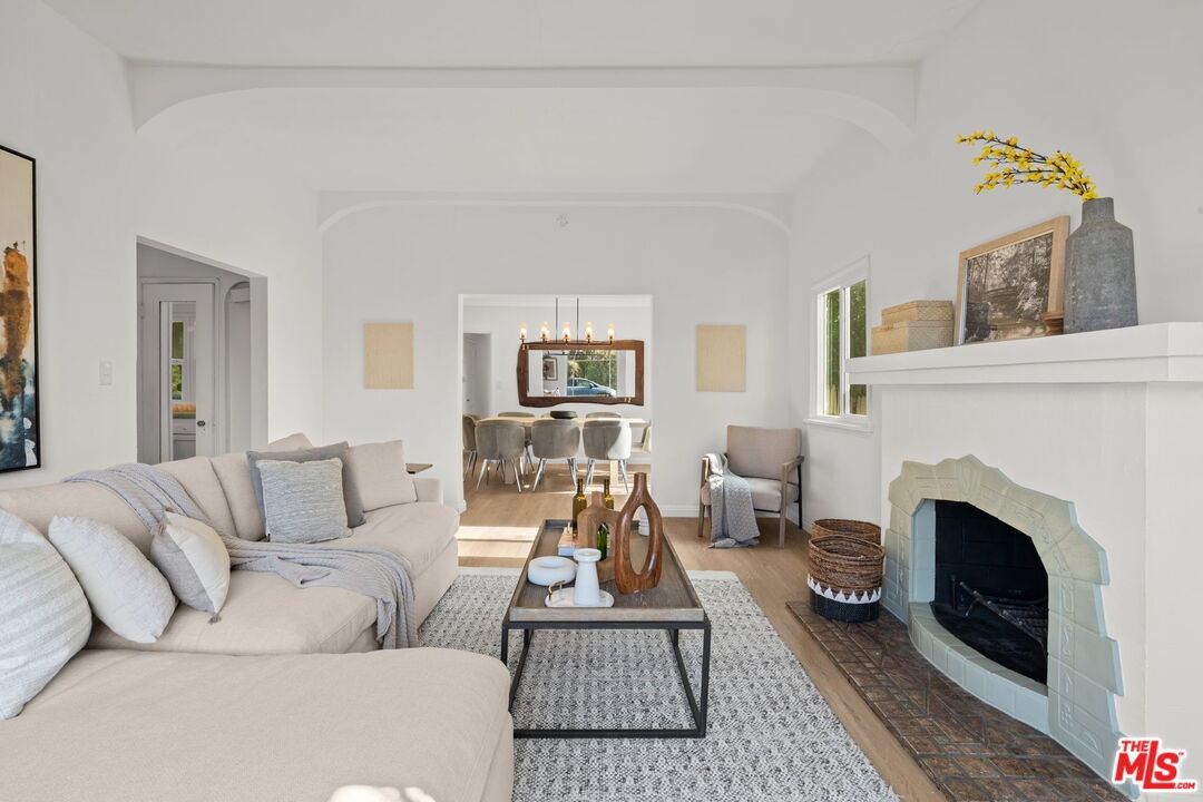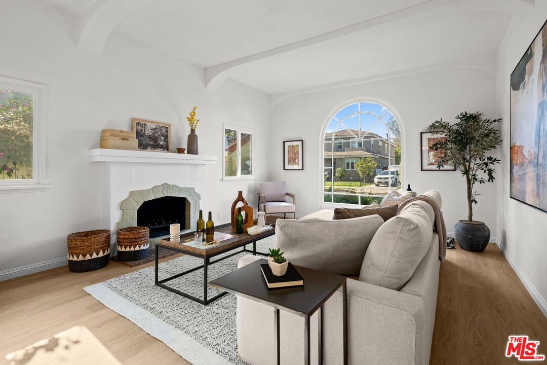 Set in a prime central location just outside Beverlywood and in the heart of the Pico-Robertson neighborhood, this exceptional single-story Spanish style home presents a rare opportunity to own a true architectural gem in one of the area's most desirable pockets. A recently constructed front porch creates a warm and inviting introduction to the property, leading into a light-filled living room distinguished by soaring, angled beamed ceilings and a beautifully preserved original fireplace. The impressive volume of the space, paired with abundant natural light, creates an atmosphere that feels both grand and welcoming. The living room flows effortlessly into a sun-drenched dining area framed by expansive windows, establishing a seamless connection between the home's primary living spaces. Beyond, the thoughtfully designed kitchen features classic Spanish tile detailing and opens to a charming breakfast nook, along with a separate laundry room that enhances everyday functionality. A central hallway leads to three well-proportioned bedrooms, including a spacious primary suite with direct access to a private office - ideal for remote work or a quiet retreat, as well as its own entrance to the backyard for added privacy and convenience. Outside, the expansive backyard offers endless possibilities for entertaining, play, or future customization. The detached garage presents an exciting opportunity for conversion into an ADU, guest house, or creative studio, adding meaningful flexibility and long-term value. Blending timeless architectural character with versatile living spaces, this distinguished Spanish style home offers comfort, charm, and exceptional potential in a highly sought-after central neighborhood.