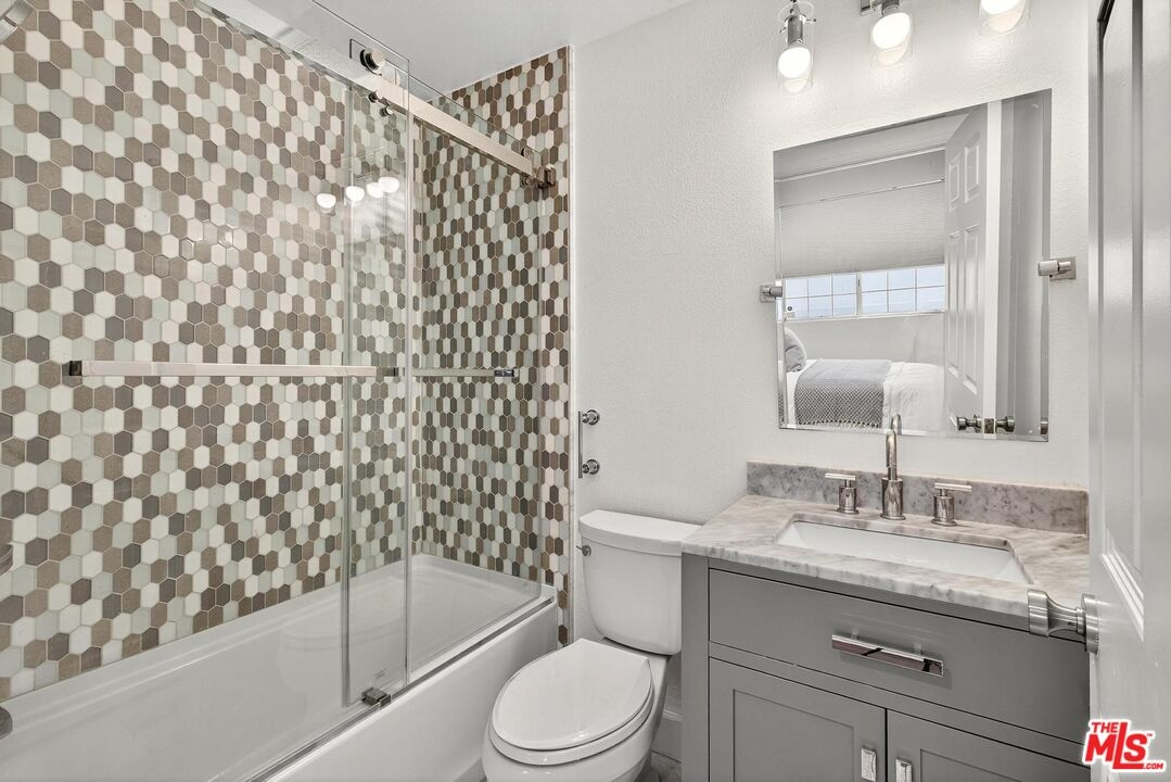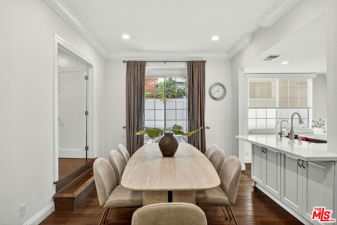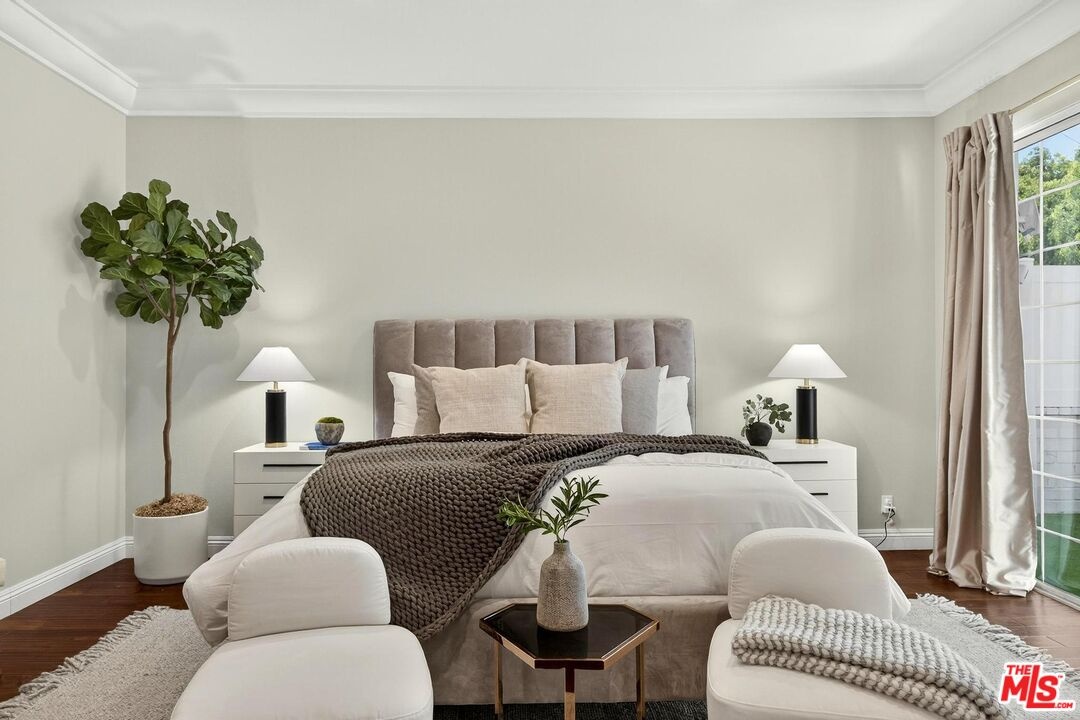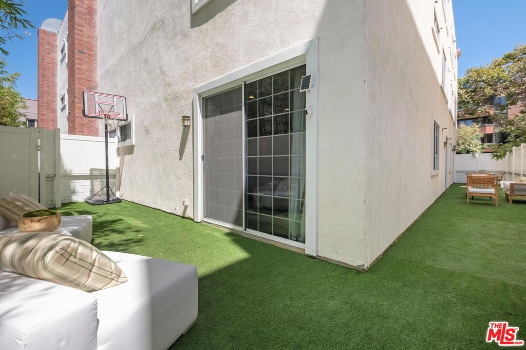 On a peaceful, tree-lined street in prime Beverly Hills, this stylish residence offers the scale and presence of a private home. With an expansive wrap around yard and several sliding doors, enjoy seamless indoor-outdoor living in the heart of the City. The three bedroom unit boasts soaring ceilings, abundant natural light, and a spacious, thoughtfully designed floor plan, offering both grandeur and everyday livability with several luxurious upgrades. Upon entry, a large foyer opens up to a wonderful living, dining room, and office den. Enjoy breakfast on the front balcony or at the charming breakfast nook adjacent to a chef's kitchen that dazzles with sleek quartz finishes and premium stainless steel appliances. The formal dining area sets the stage for memorable family gatherings where you can step outside for some outdoor entertaining. The oversized primary suite with fireplace provides a private sanctuary, featuring a hotel-inspired bath with a Japanese soaking tub, luxurious marble details, and two walk-in closets. Down the hall, a dedicated laundry room and elegantly upgraded powder room are across the hall from two large bedrooms, one ensuite. This spectacular unit comes with dedicated side-by-side gated parking and extra storage space in a subterranean garage for added ease and convenience. Located in a desirable pocket of Beverly Hills, this residence is moments away from world-renowned restaurants, vibrant nightlife, and couture shopping along Rodeo Drive, Robertson Boulevard, and Melrose Avenue. With access to top-rated Beverly Hills Unified schools, this home offers elegance, convenience, and a lifestyle of true prestige.