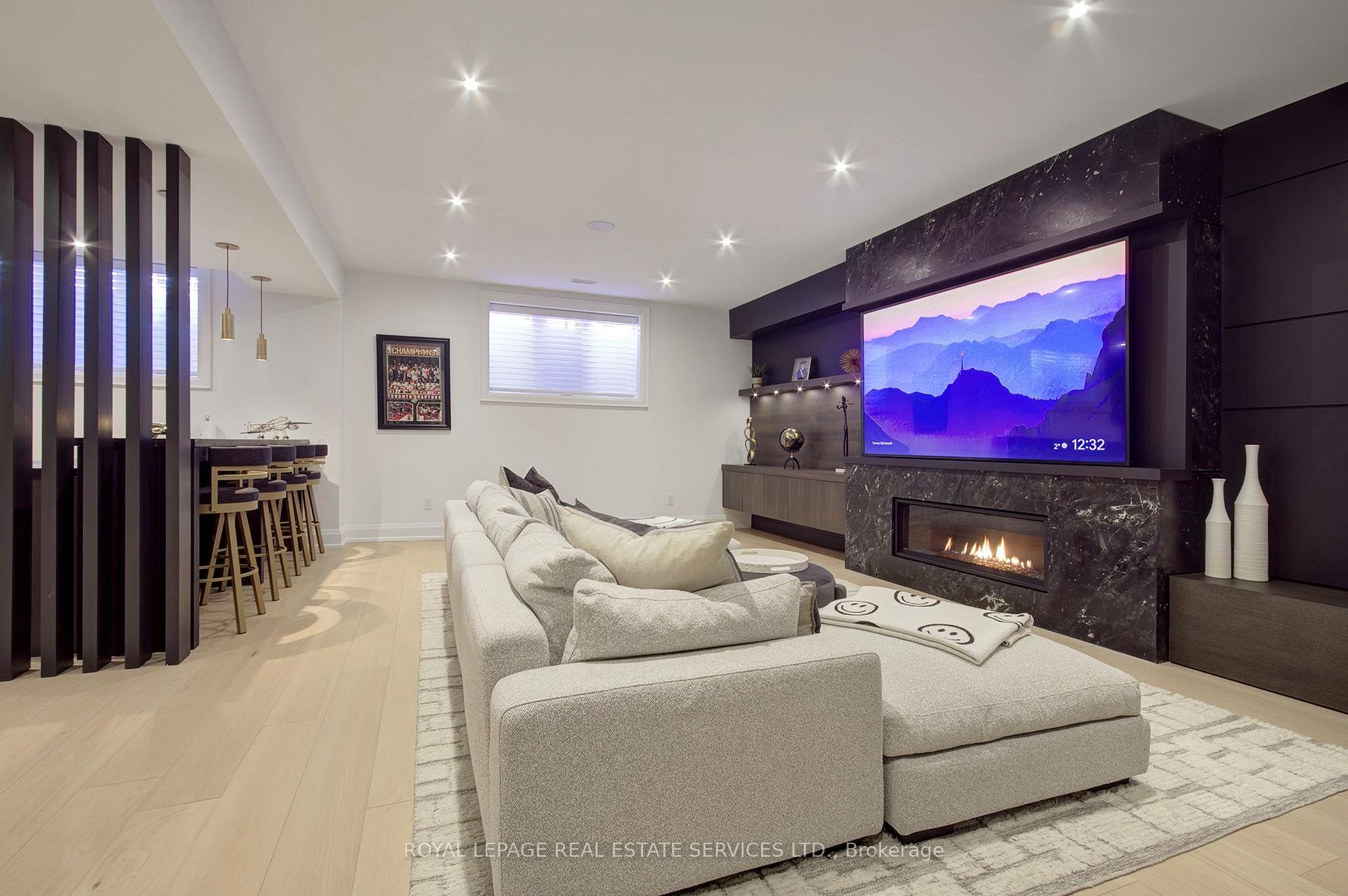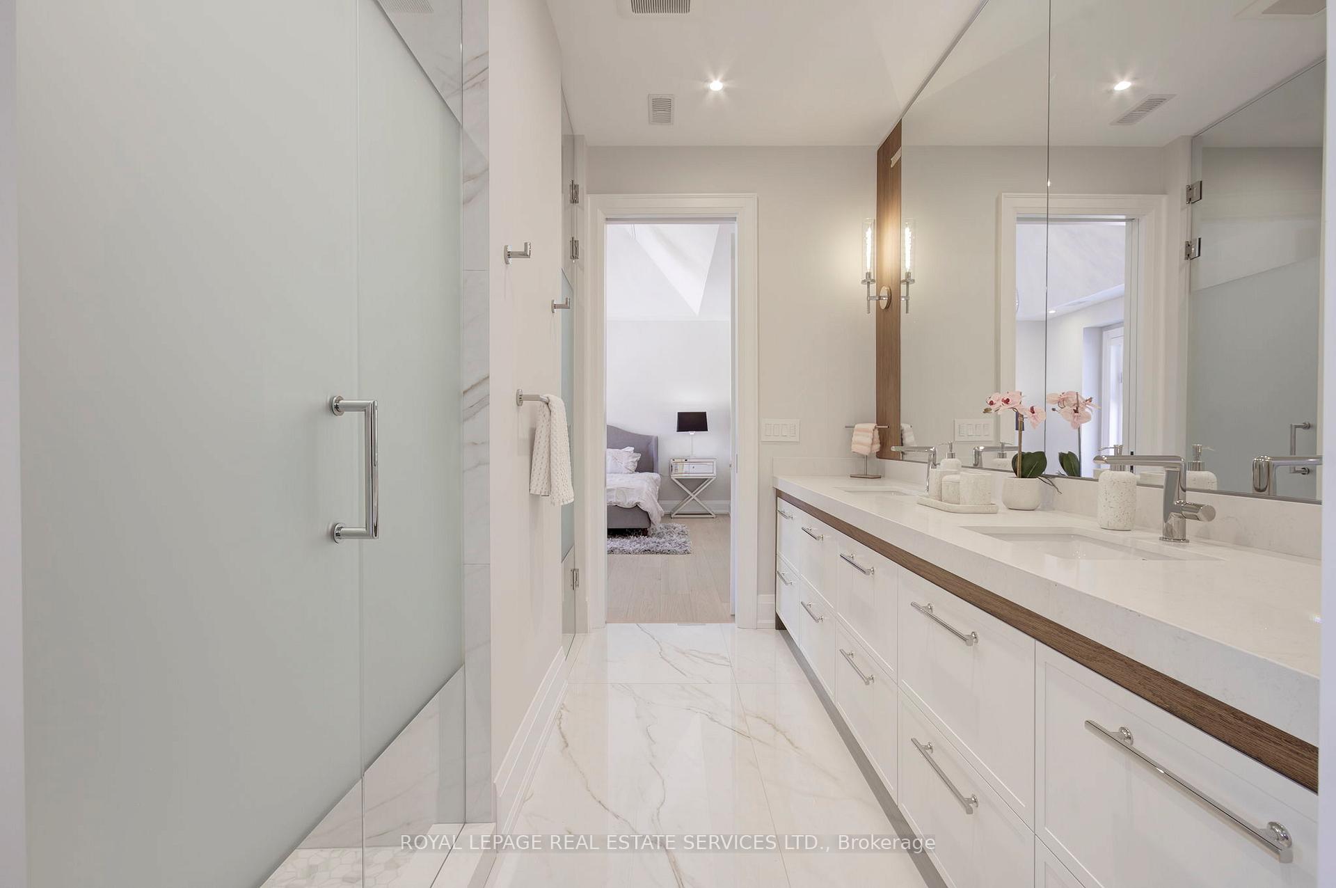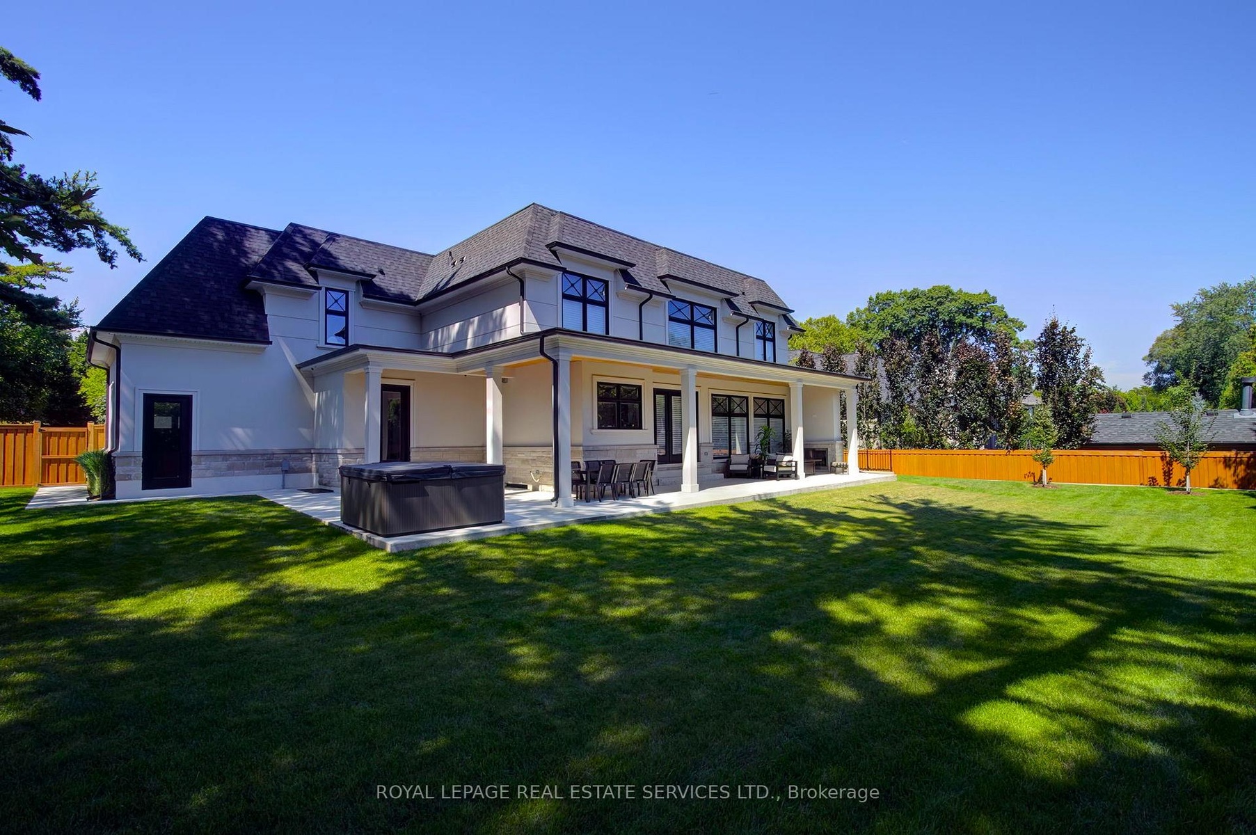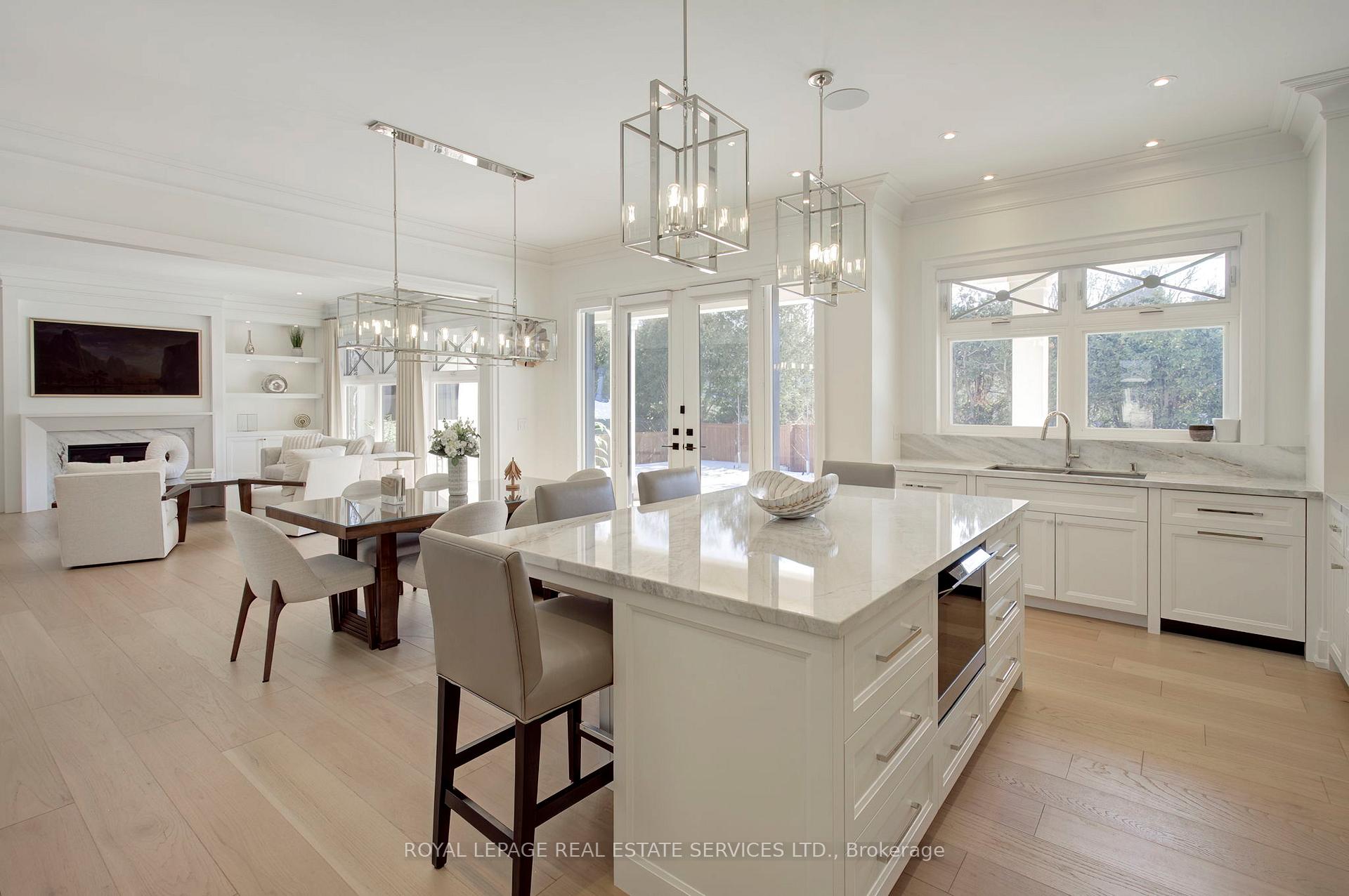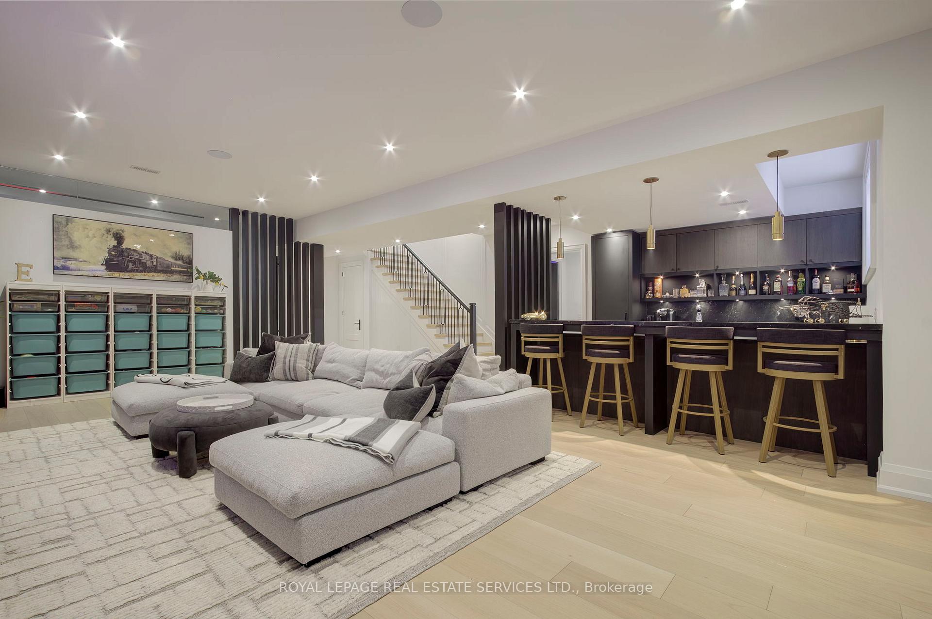 Welcome to 1504 Warren Dr., a spectacular custom-built residence in the heart of Oakville offering approximately 6,300 sq.ft. of luxurious living across three beautifully finished levels. Perfectly positioned on a premium 100 x 150 ft lot, this exceptional home blends timeless elegance, master craftsmanship, and sophisticated smart-home technology. The professionally landscaped grounds create a private outdoor oasis featuring LED nightscape lighting, Wi-Fi controlled irrigation, and a fully fenced backyard retreat. Enjoy effortless entertaining beneath the expansive covered porch with a gas fireplace, natural gas BBQ line, and a Beachcomber hot tub complete with waterfalls, jets, speakers and ambient lighting. The triple car garage features epoxy flooring, LiftMaster openers, Gladiator storage systems, and EV-ready electrical. Inside, a 9-ft mahogany entry door opens to soaring 10-ft ceilings, elegant wall paneling, crown mouldings, and wide plank engineered oak floors. The chef's kitchen is a true showpiece with a 48" Wolf 8-burner dual fuel range, Sub-Zero fridge and freezer columns, Sub-Zero wine column, built-in Sharp microwave/convection oven, Miele dishwasher, and a separate servery with beverage centre. Upstairs, four spacious bedrooms showcase custom vaulted ceilings and built-in closets, complemented by a sky-lit hallway and a convenient laundry room with LG front-load washer and dryer. The fully finished lower level is designed for ultimate entertainment, offering radiant heated floors, a custom home theatre, wet bar ice maker, home gym, additional bedroom, and a spa-inspired bathroom with steam shower, rain head, body jets, LCD integrated panel and speakers. Complete with Control4 8 zone smart sound automation, security film on all windows, multiple gas fireplaces, marble surfaces with protective scratch-proof film and Lennox climate systems, this remarkable residence delivers refined luxury living in one of Oakville's most prestigious neighbourhoods.