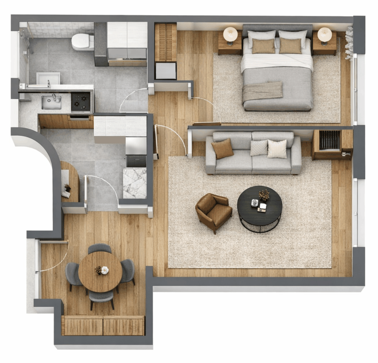 • Kitchen integrated into the main living space