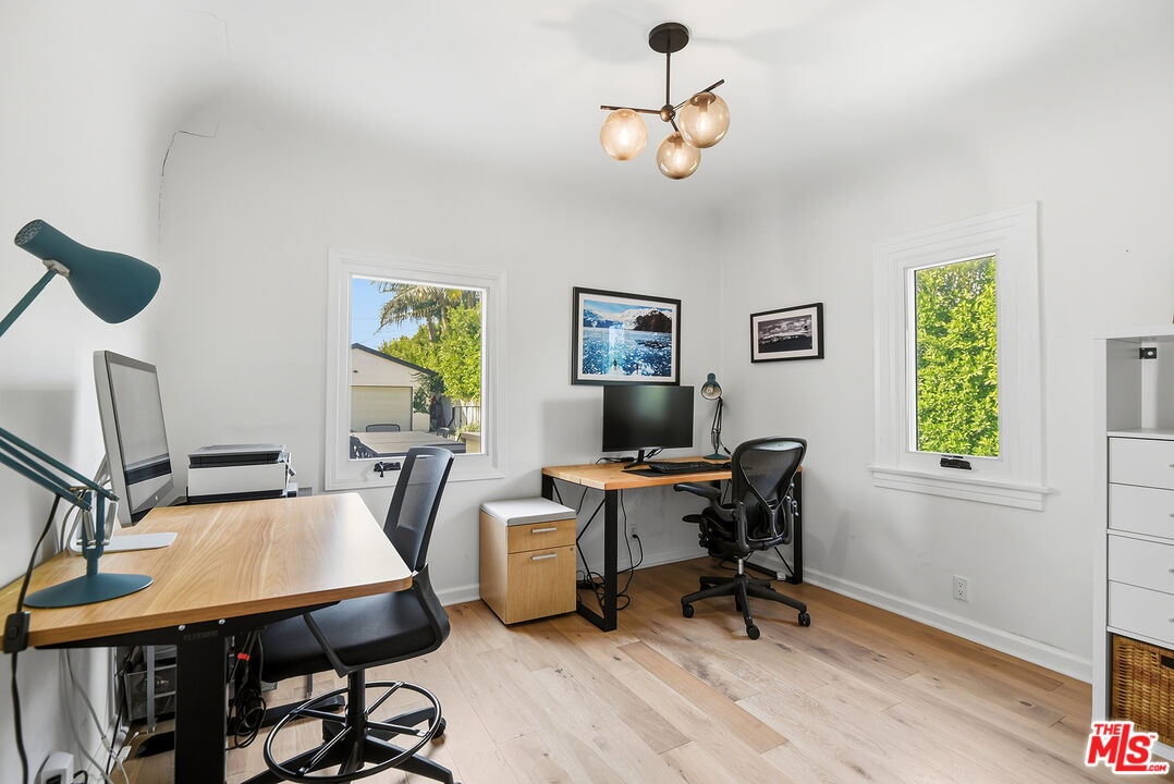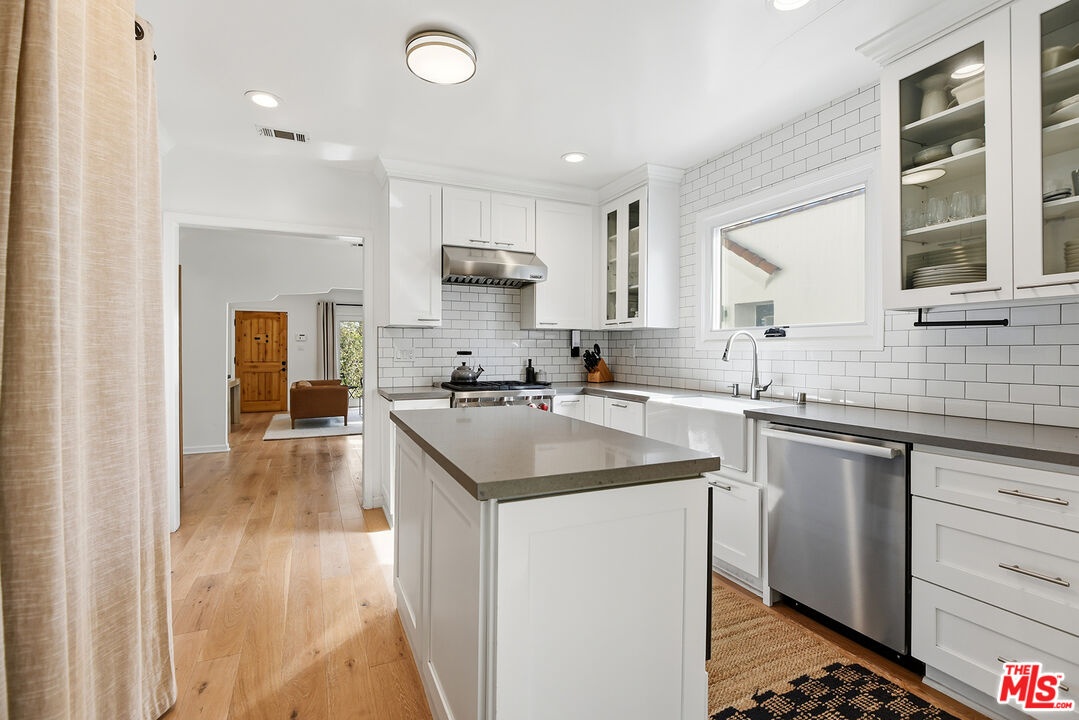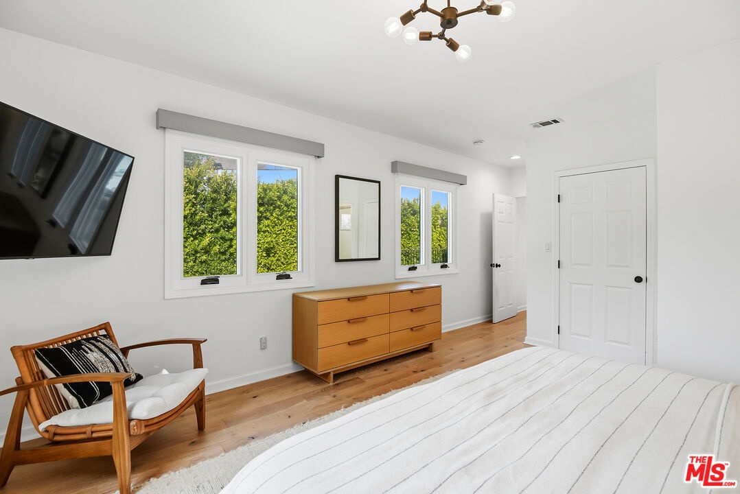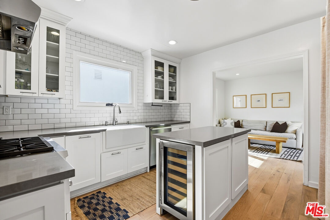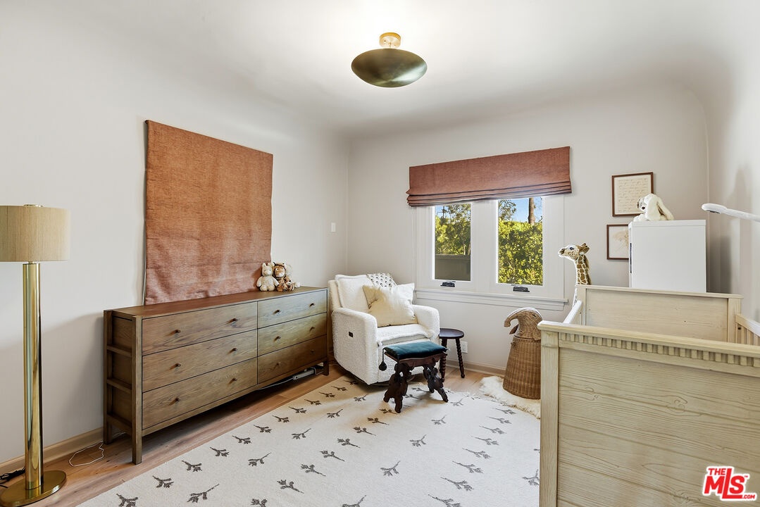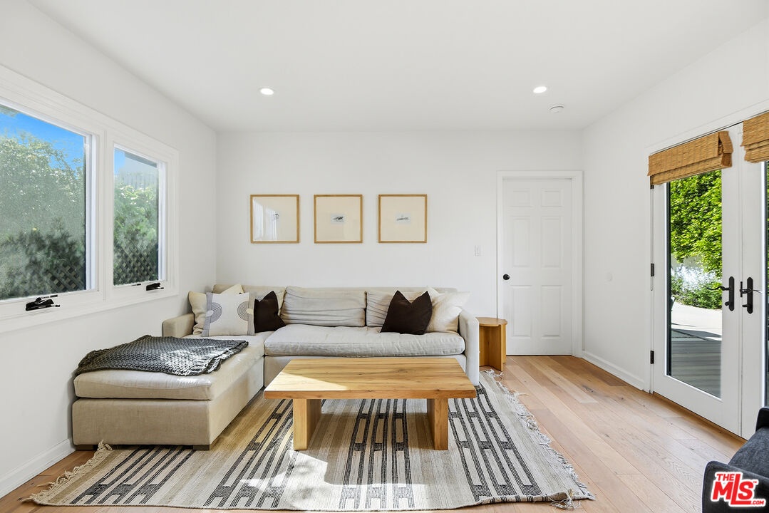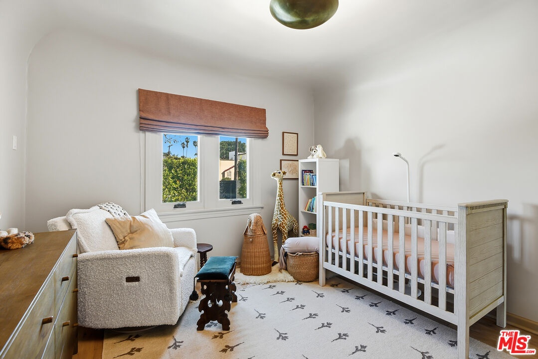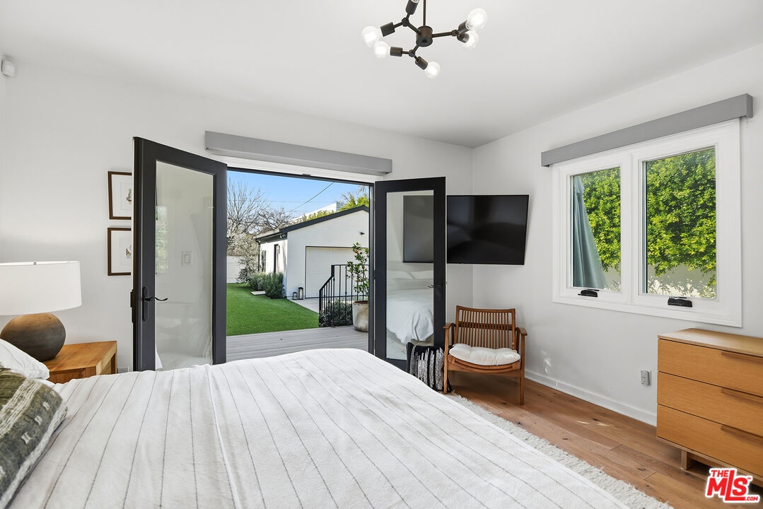 Charming, gated 3BR+2BA Spanish-style home, in the heart of Melrose Village. Filled with natural light and classic architectural character, the home features hardwood floors, recessed lighting throughout and a spacious living room that flows seamlessly into the dining area. The updated kitchen features stainless steel appliances including a Wolf oven, Subzero refrigerator, a wine fridge and generous cabinet and pantry storage. Family room is located off kitchen. Two private decks extend the living space outdoors, one off the family room and another off the primary bedroom, offering inviting spots to relax, dine or entertain. The home offers spacious bedrooms with ample closet space, including a primary suite featuring a walk-in closet and en-suite bathroom. Thoughtfully landscaped front and backyard spaces provide privacy with mature hedges and lush greenery. The expansive lot offers multiple outdoor areas to enjoy, including a vegetable garden, built-in BBQ and fire pit, perfect for outdoor dining and relaxed evenings. A detached two-car garage offers excellent potential for an ADU, studio or creative workspace. The property is secured with a new sliding driveway gate and pedestrian entry gate. Ideally located just moments from The Grove, Larchmont Village, Melrose shopping and some of the best dining and entertainment in Los Angeles.