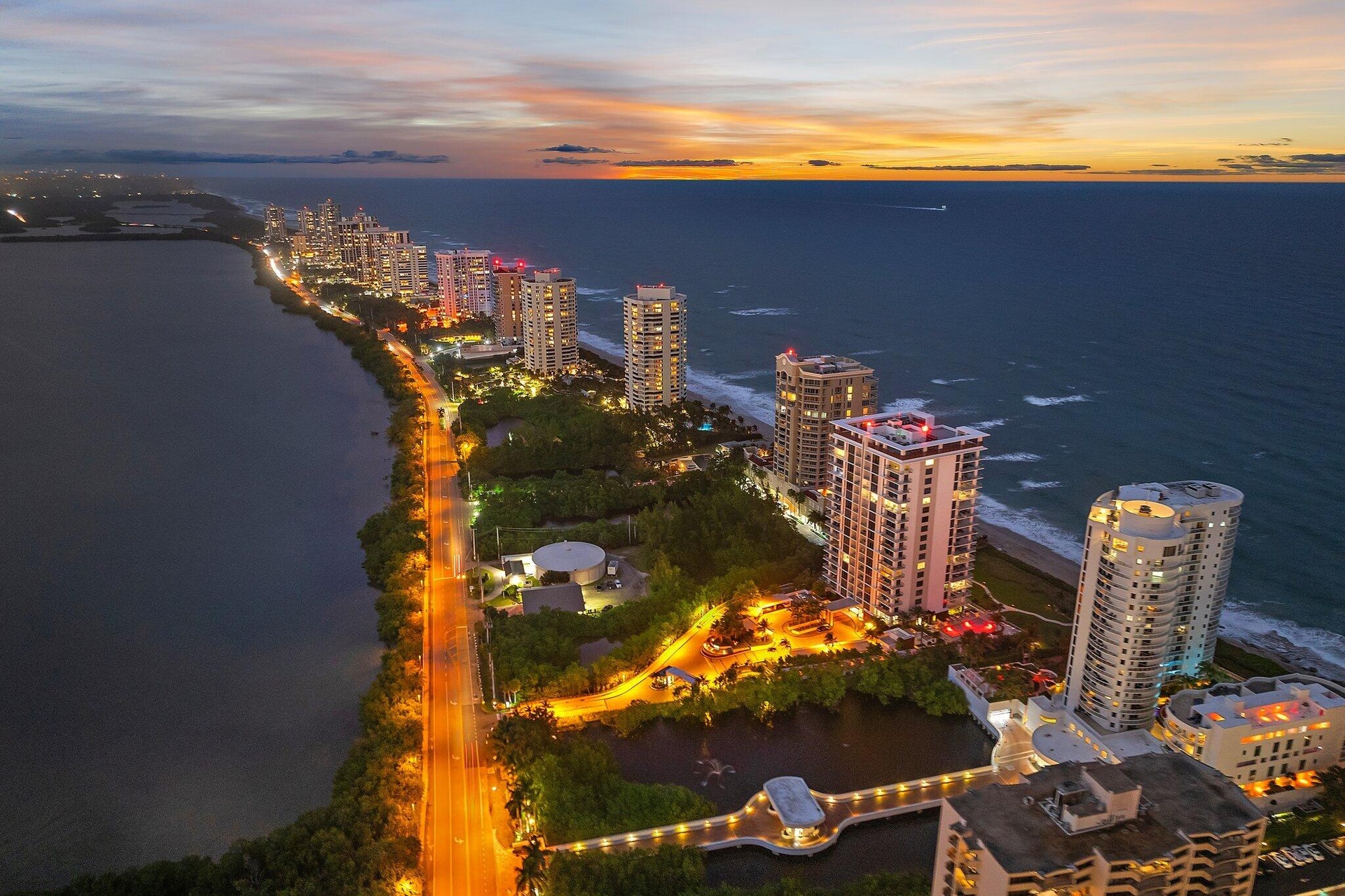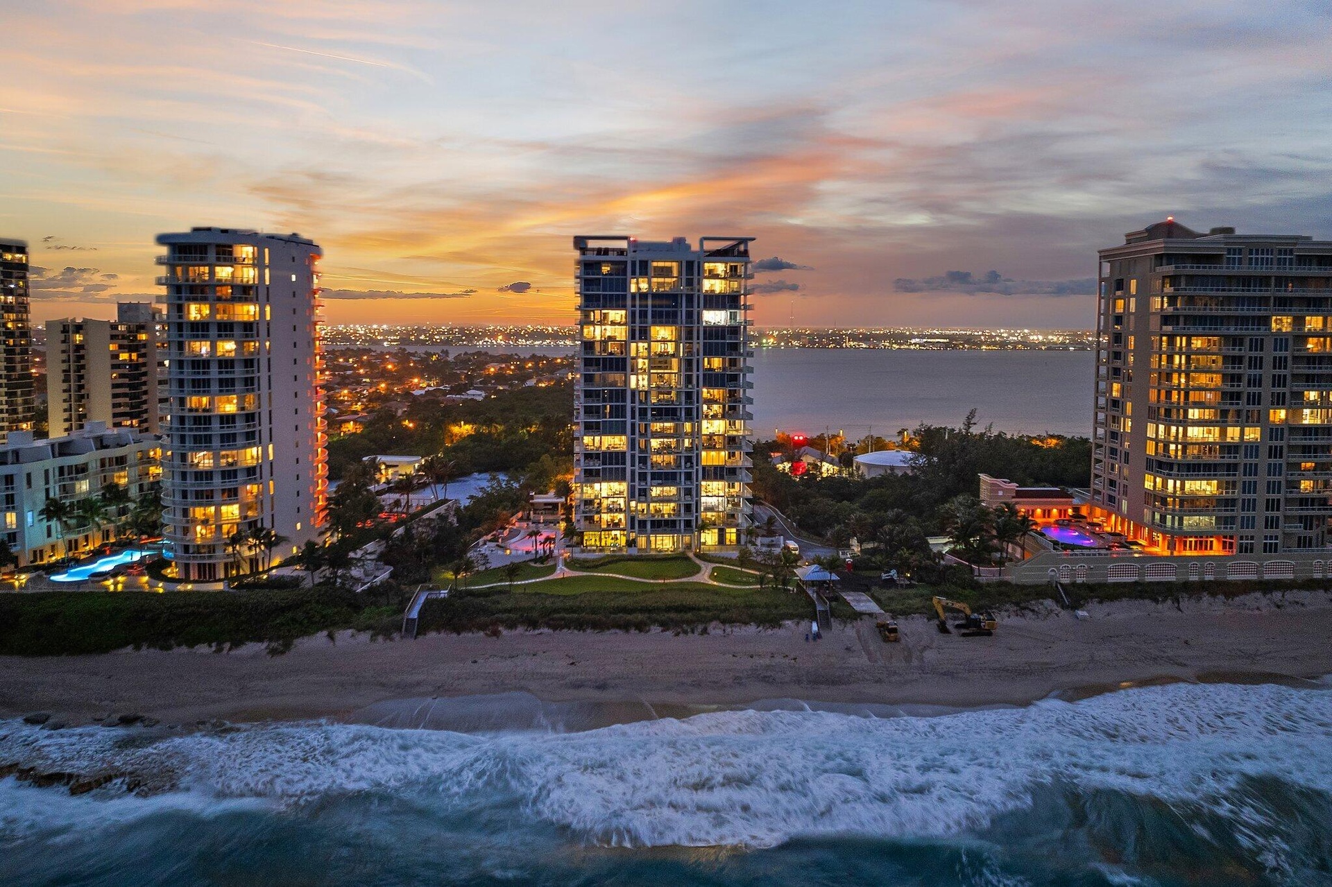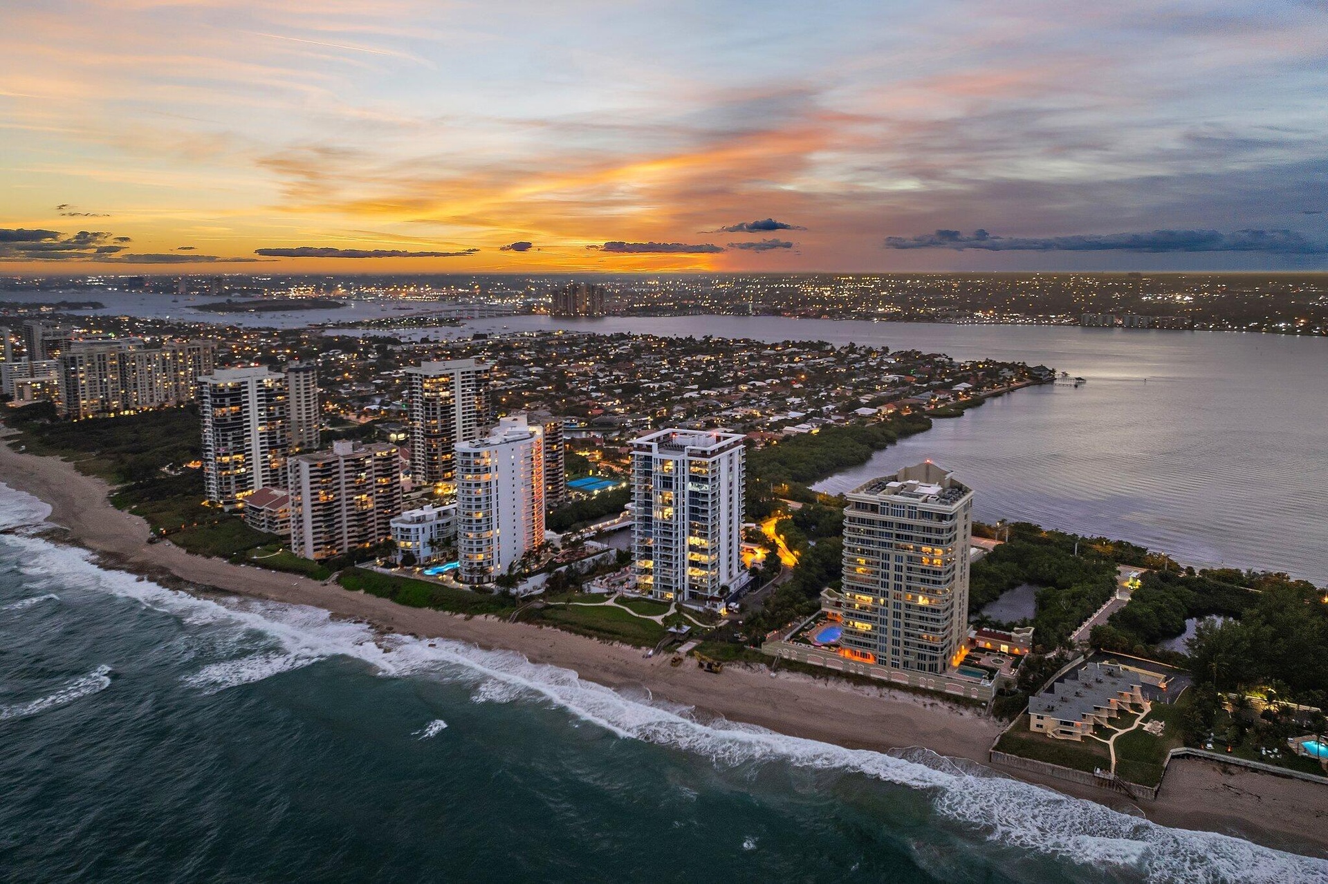 Experience the finest in Ocean to Intracoastal living in 5000 N. Ocean Drive, the newest building on Singer Island. Located directly on the sand, this boutique luxury building has only 48 units, and this particular suite enjoys preferred southern exposures which offer a ''light and bright'' atmosphere all year round. Your family will enjoy two large entertainment areas - one directly on the ocean near the kitchen and dining area in the ''Great Room'', and the other space, the ''Family Room'' facing the wide water of the Intracoastal Waterway. Enjoy morning coffee with the sunrise, and evening cocktails with the sunset - all in the same property. Best of all, 5000 N. Ocean boasts the most luxurious amenities imaginable: 24/7 manned security at the street; concierge lobby services; under building parking with two spaces for this suite; state-of-the-art fitness center; community lounge with bar; pool with patio and BBQ area; walking paths and gazebo with two sets of stairs to the beach, and more.