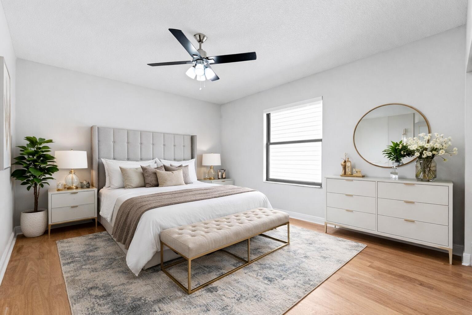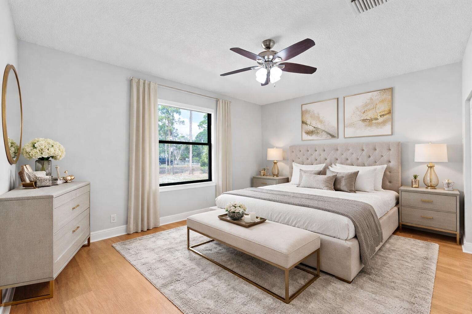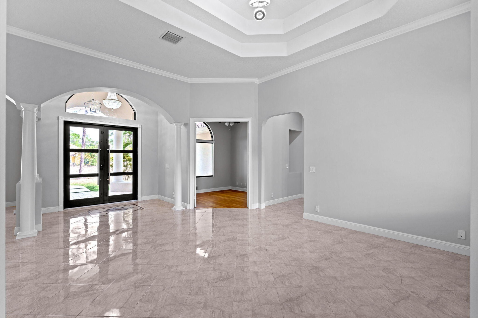 Welcome to this home in The Acreage, offering 4 bedrooms plus a den, 3 full bathrooms, and a half bath, all set on an expansive 1.14-acre lot with a 2-car attached garage and an impressive 1,800 sq ft detached steel shop. The home has been freshly painted and features hurricane impact windows and doors, a tankless hot water heater, reverse osmosis system, generator hookup, and newer water system. Enter through the double front doors into a bright and spacious interior with 12' ceilings, a welcoming foyer, vertically laid porcelain flooring, and abundant natural light throughout. The kitchen is designed for both everyday living and entertaining, featuring a large island with storage, granite countertops, stainless steel appliances, glass display cabinetry, a generous walk-in pantry, and a breakfast nook overlooking the surrounding property. The split floor plan provides privacy and comfort with real wood floors, detailed millwork, tray ceilings, French doors, and spacious living areas. The primary suite offers peaceful views and includes dual walk-in closets, granite vanities, a large walk-in shower, and a relaxing jacuzzi tub. Step outside to enjoy the 34' x 16' covered lanai, surrounded by mature pine trees and tropical palms that create a quiet and relaxing outdoor setting. The property also features a substantial 60' x 30' Eversafe steel building with a 21' ceiling, large roll-up doors, 200-amp service, and multiple 220 and 110 outlets, providing exceptional flexibility for storage, hobbies, or workspace. Located in the desirable Acreage area of Palm Beach County, this home offers peaceful country-style living while remaining just minutes from shopping, dining, parks, and equestrian facilities. Convenient access to Florida's Turnpike, I-95, Palm Beach International Airport, and the area's beautiful beaches makes commuting and travel simple while still enjoying the privacy and space this unique property provides. Make this luxurious retreat your own and experience refined living in this exceptional residence.