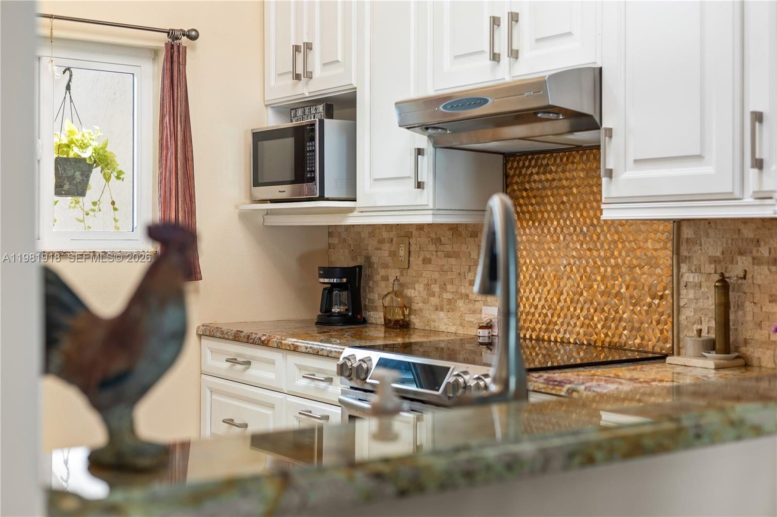 Location, location, location!!! Wonderful opportunity to live in this fantastic villa in gated community close to everything. No car needed here. This impressive, large 1,700 square feet 2 bedroom 2 bath with added office/hobby room, is an immaculately kept, single story villa with soaring ceilings. Lots of natural light from high impact glass windows throughout. Kitchen has been beautifully renovated. Lovely private patio. Must see this one to appreciate. Community pool with lake to enjoy the surrounding nature. 2 parking spaces outside your front door. New appliances including washer/dryer in separate laundry room. Walk to restaurants, shops, house of worship and so much more. Short drive to Beach, Banks, Aventura Mall,